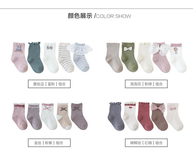 20 calcetines nuevos de otoño para niños, estilo coreano, con lazo de encaje, para niñas, calcetines de princesa para bebés, calcetines de algodón peinado para bebés.