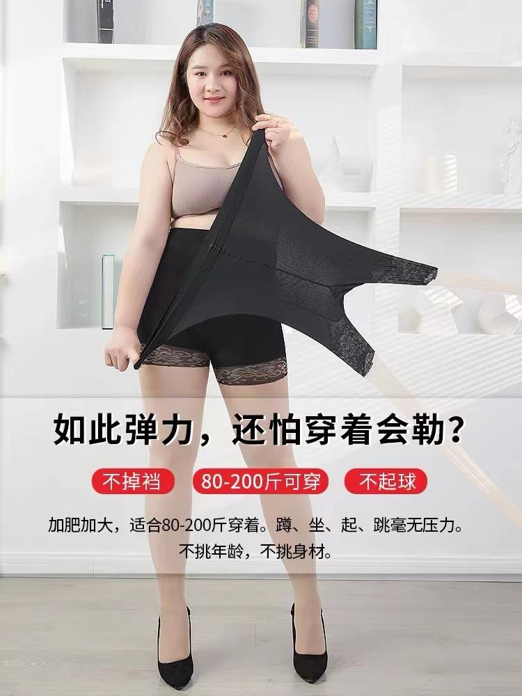 Pantalones de seguridad y medias para mujer ultradelgados talla grande 200 kg seda antienganche MM gorda más grasa anti-lobo pantimedias de piña verano