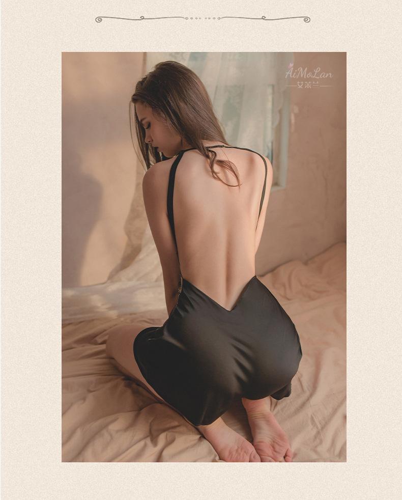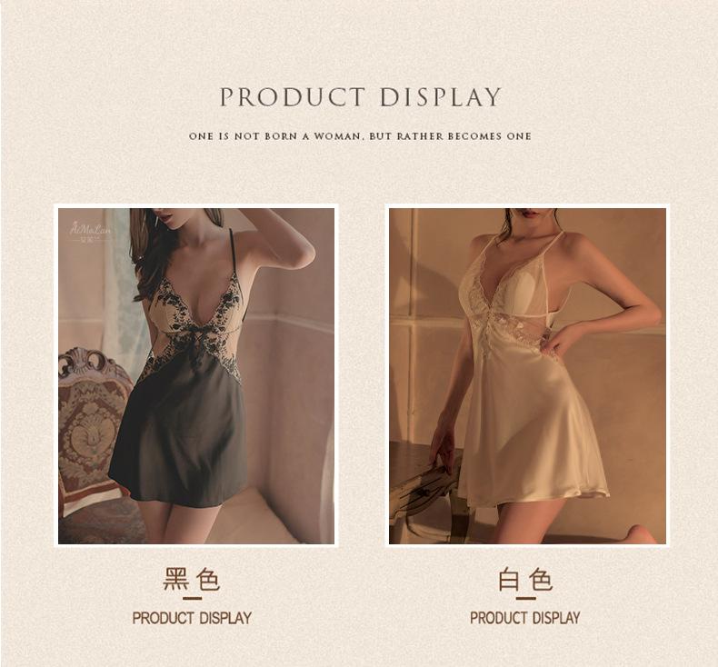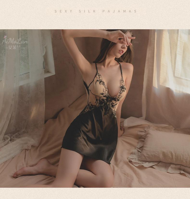 Pijama sexy Meishilan de verano para mujer, de seda fina con almohadilla para el pecho, de encaje, hueco, sin espalda, con tirantes, tentación 152