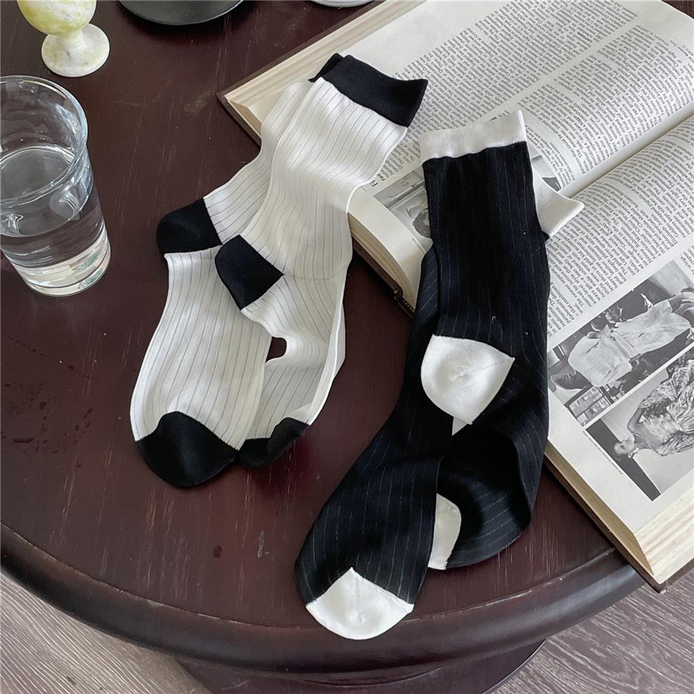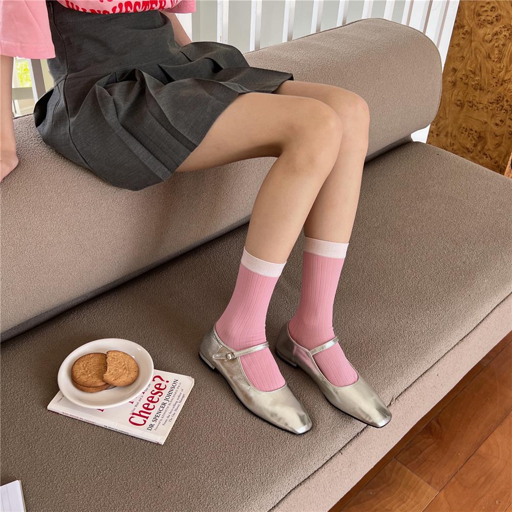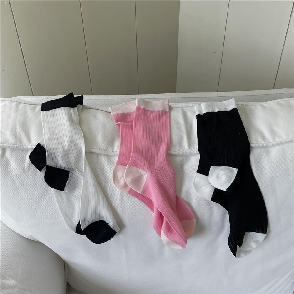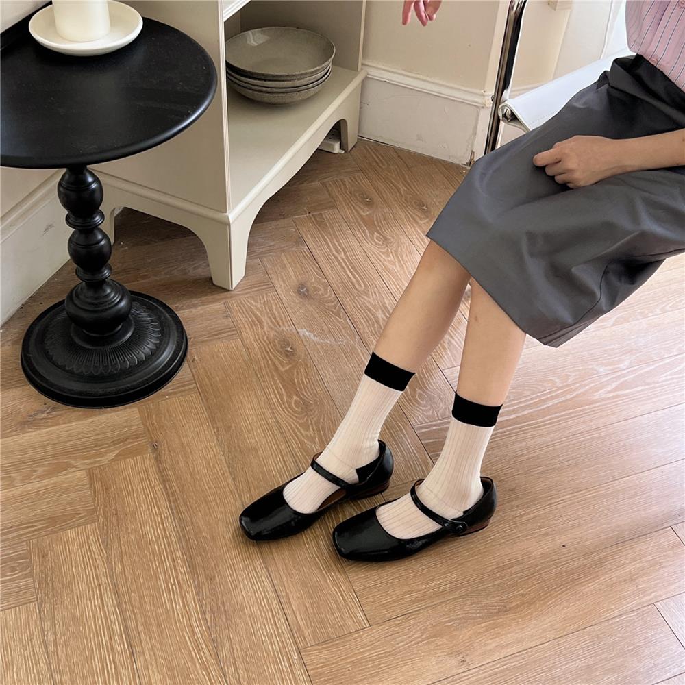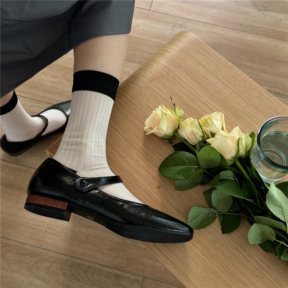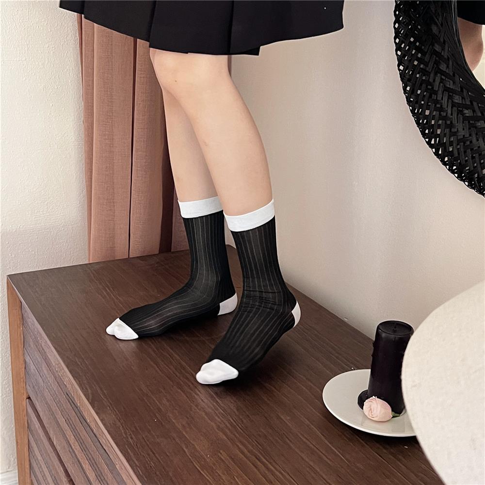 Compra Calcetines de Seda de Cristal Contrastantes con Rayas Verticales para Mujer en Verano Calcetines de Rizo Femeninos Estilo Fino con Zapatos de Cuero Pequeños Calcetines de Media Caña para Mujer al por mayor en Joom.pro