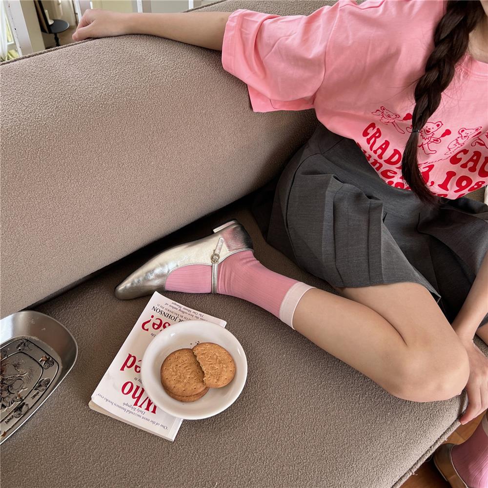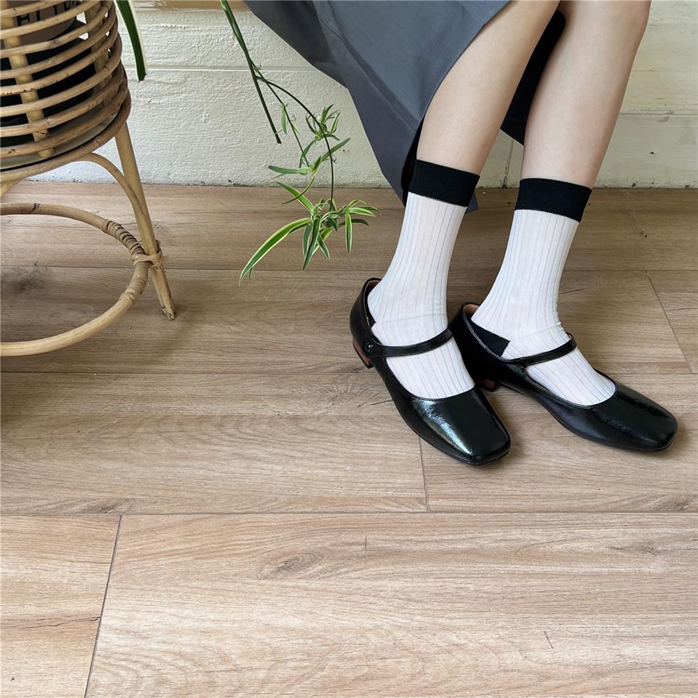 Calcetines de Seda de Cristal Contrastantes con Rayas Verticales para Mujer en Verano Calcetines de Rizo Femeninos Estilo Fino con Zapatos de Cuero Pequeños Calcetines de Media Caña para Mujer