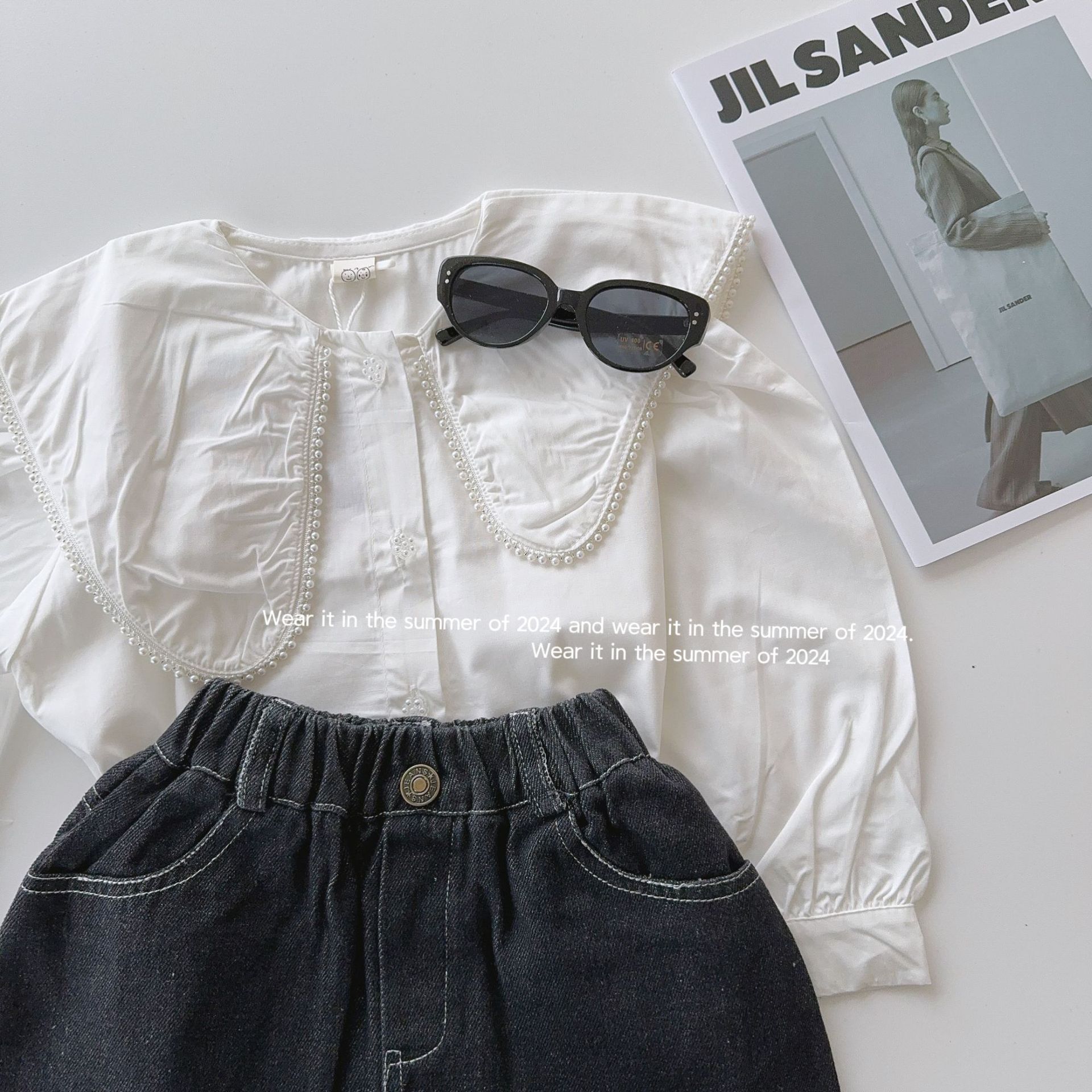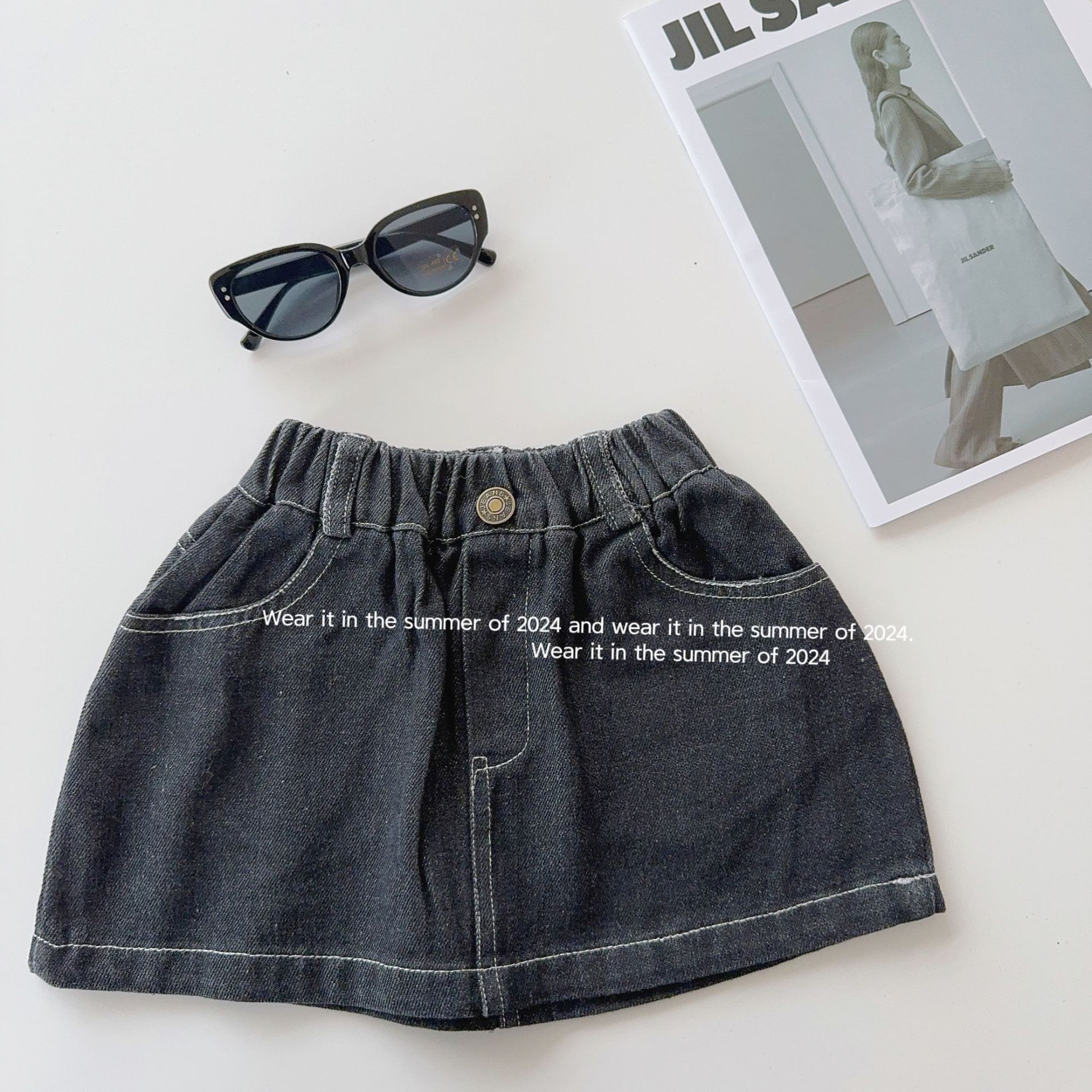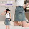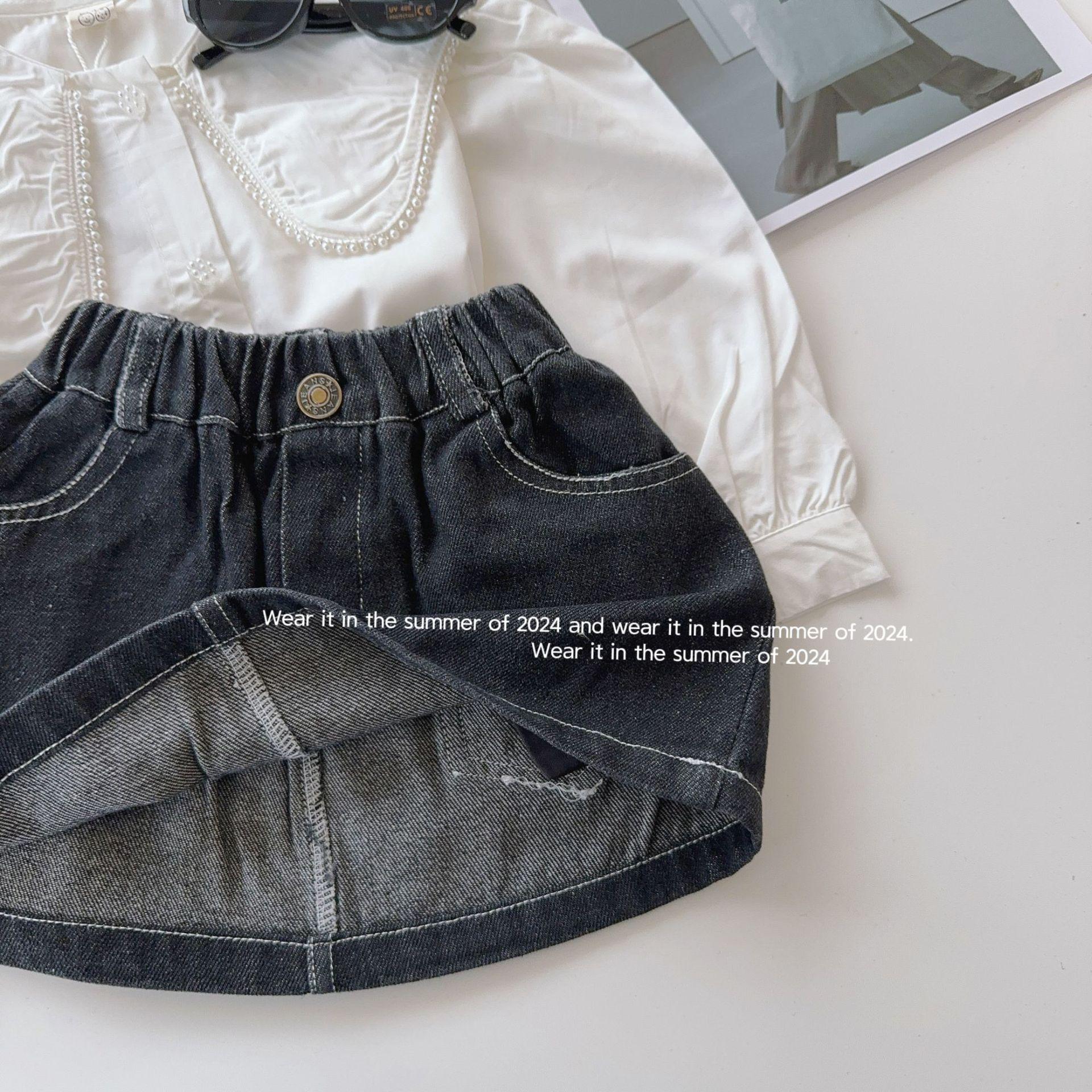 Falda para niña 2024 primavera y verano delgada para niños color sólido A falda de mezclilla falda de bebé ropa para niños al por mayor Corea del Sur