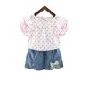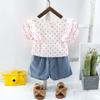 Verano nuevo traje de manga corta estilo Chanel para niñas estilo japonés cómodo transpirable camiseta de bebé + pantalones cortos traje de dos piezas