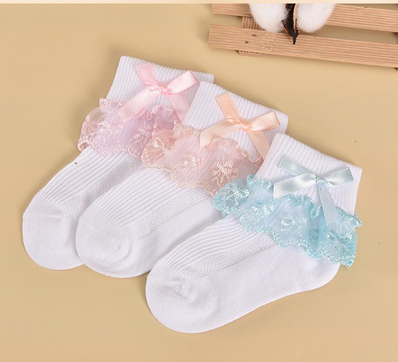 Calcetines nuevos de primavera y otoño para niños, calcetines finos transpirables que absorben el sudor, calcetines bonitos con lazo para niñas, venta al por mayor