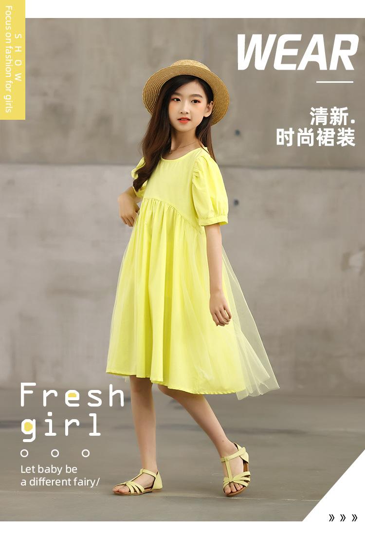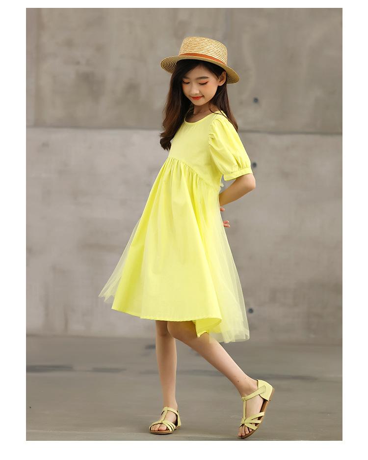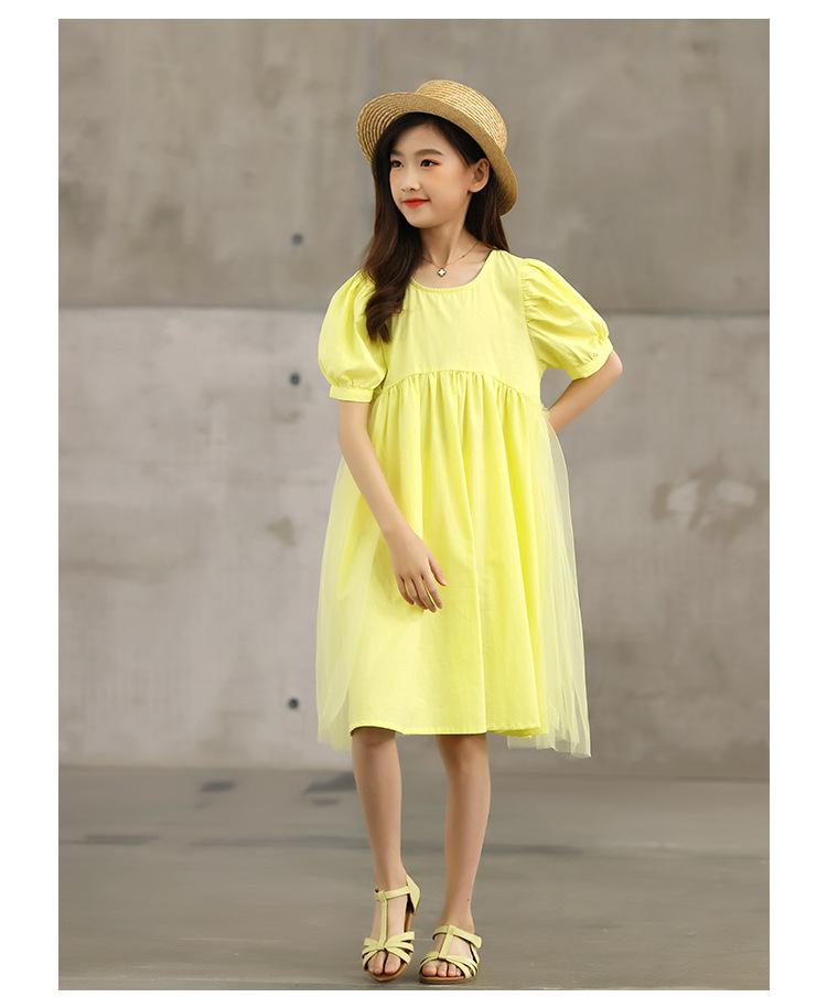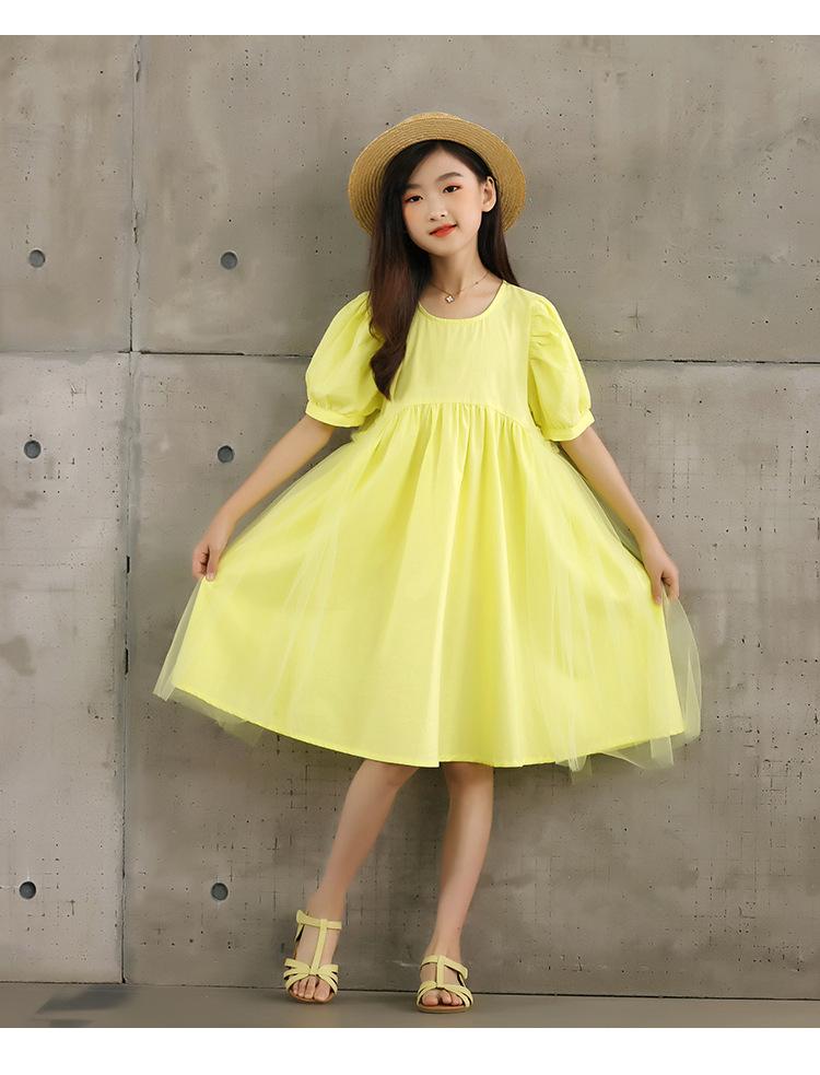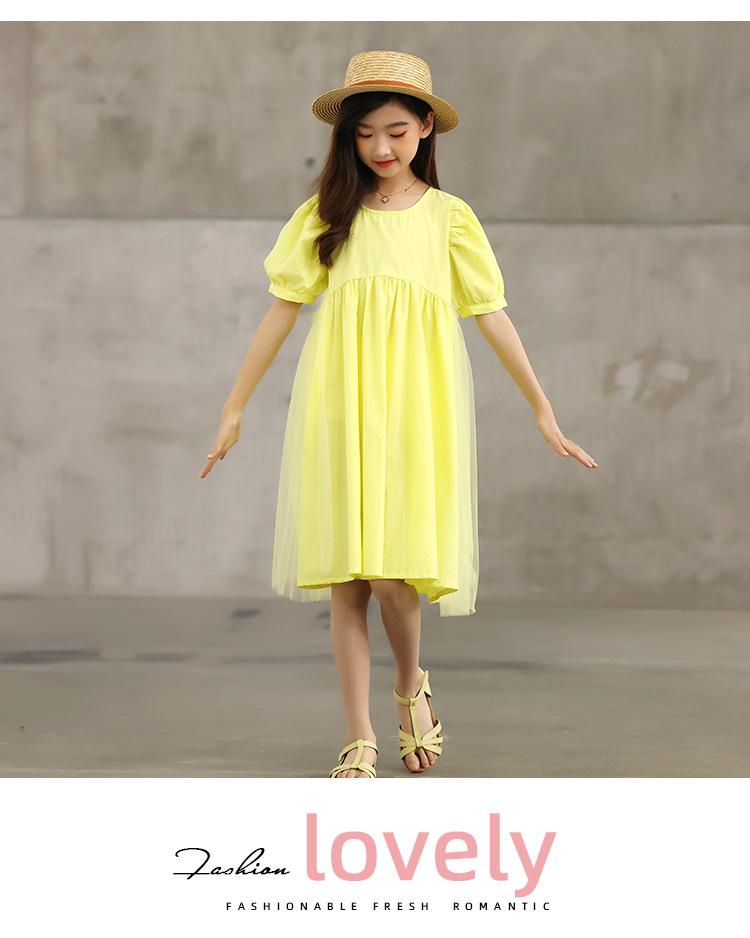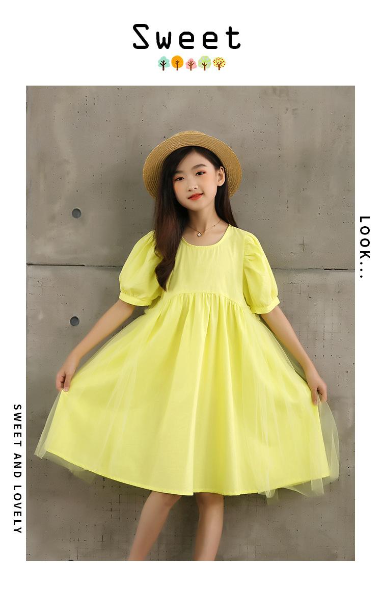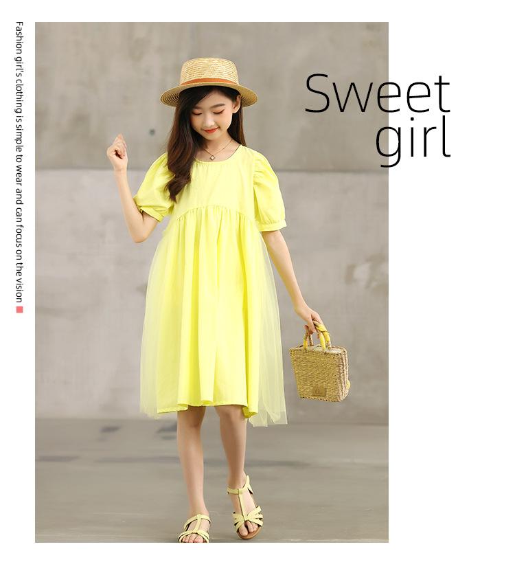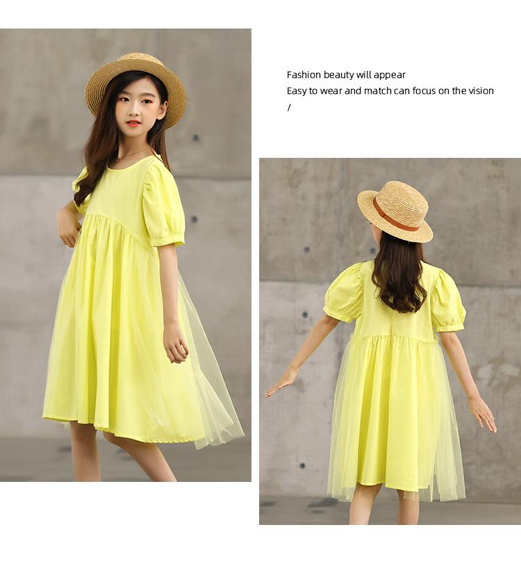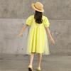 Vestido de verano para niñas, nuevo estilo 2025, estilo occidental, princesa, manga abullonada, con borde cruzado