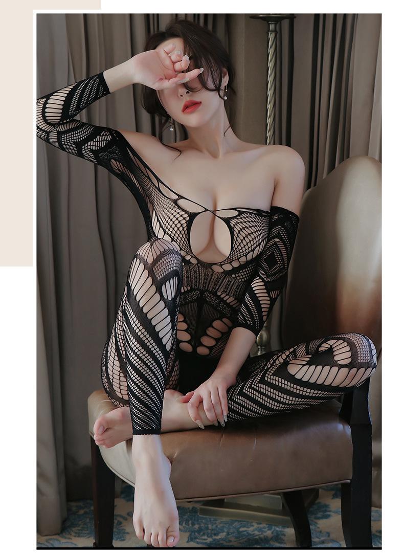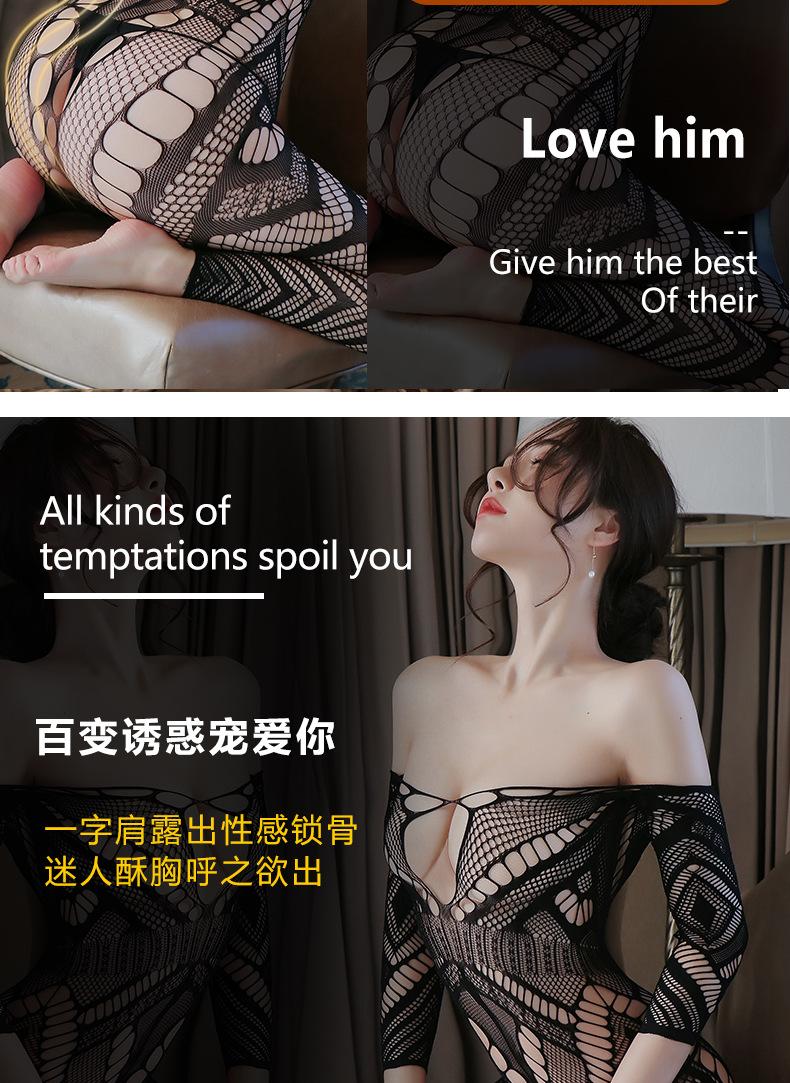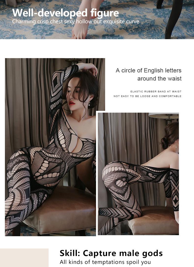 Noche Larga Ropa Interior Sexy Malla Perspectiva Sexy Espalda Descubierta Archivo Abierto Tentación Libre Malla Mono 6010