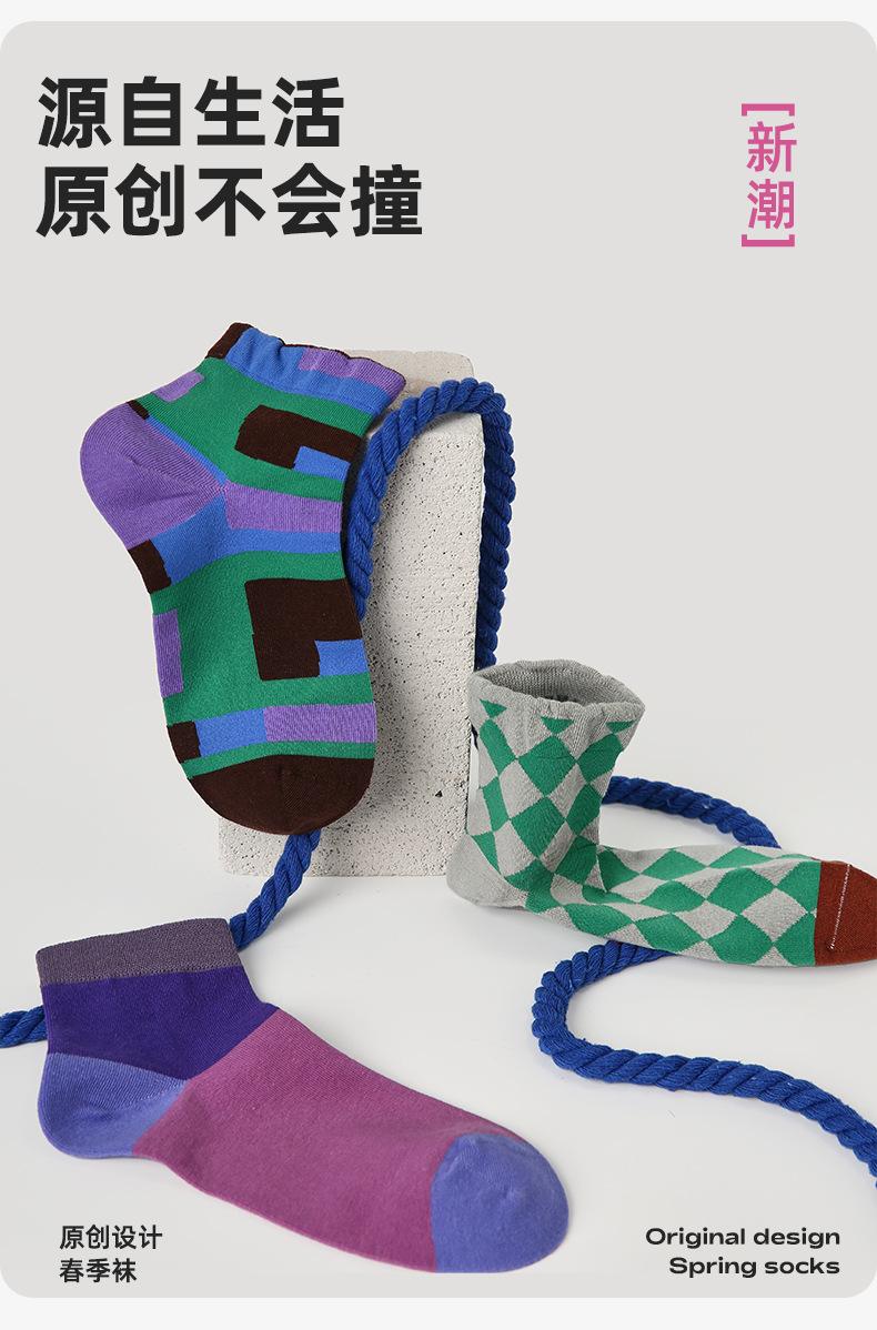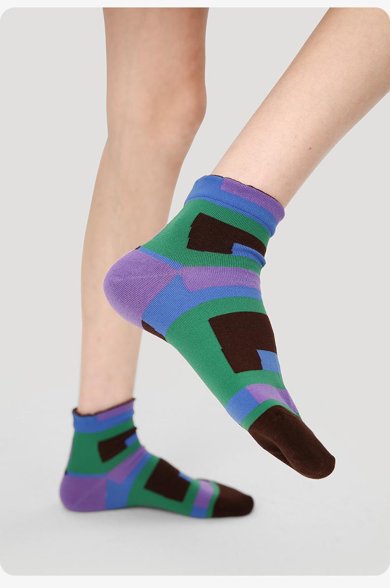 Calcetines de bote modernos renacentistas de boca fina de burbuja, calcetines de primavera y verano, figura geométrica, calcetines de estilo chino nuevo para mujer
