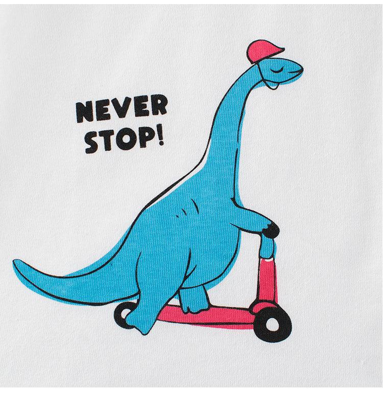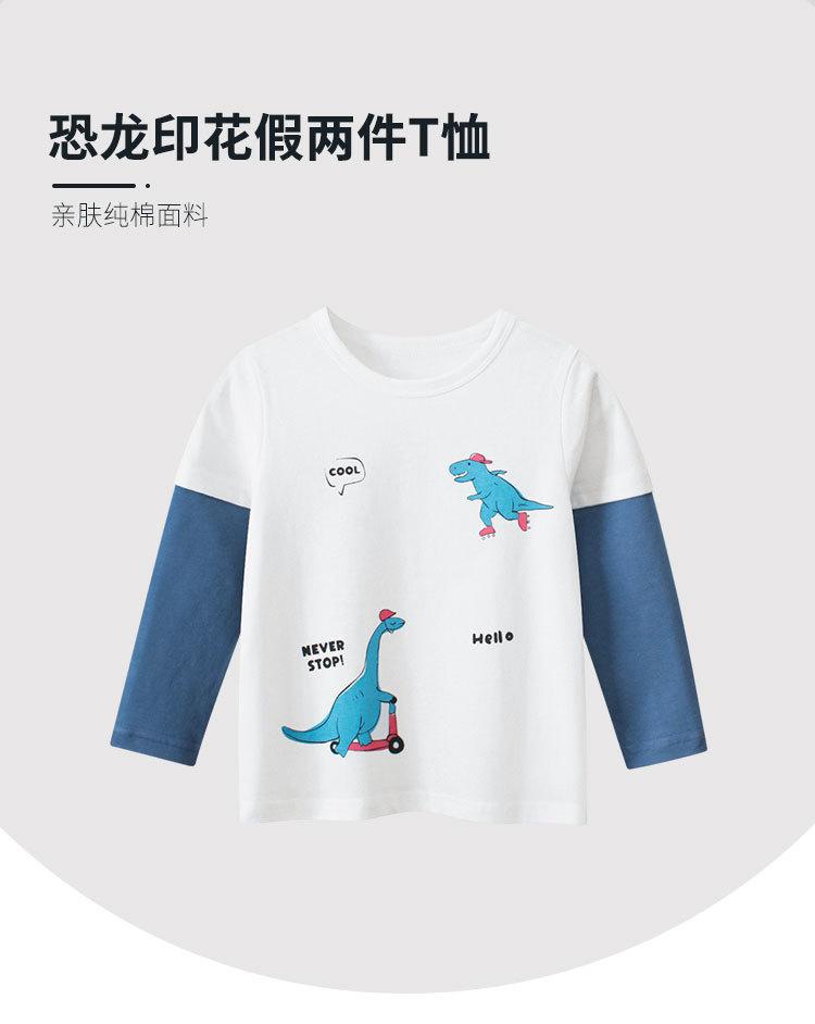 27Kids ropa infantil transfronteriza ropa de bebé falso de dos piezas camiseta de manga larga para hombre dinosaurio de dibujos animados camisa básica entrega de una pieza