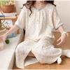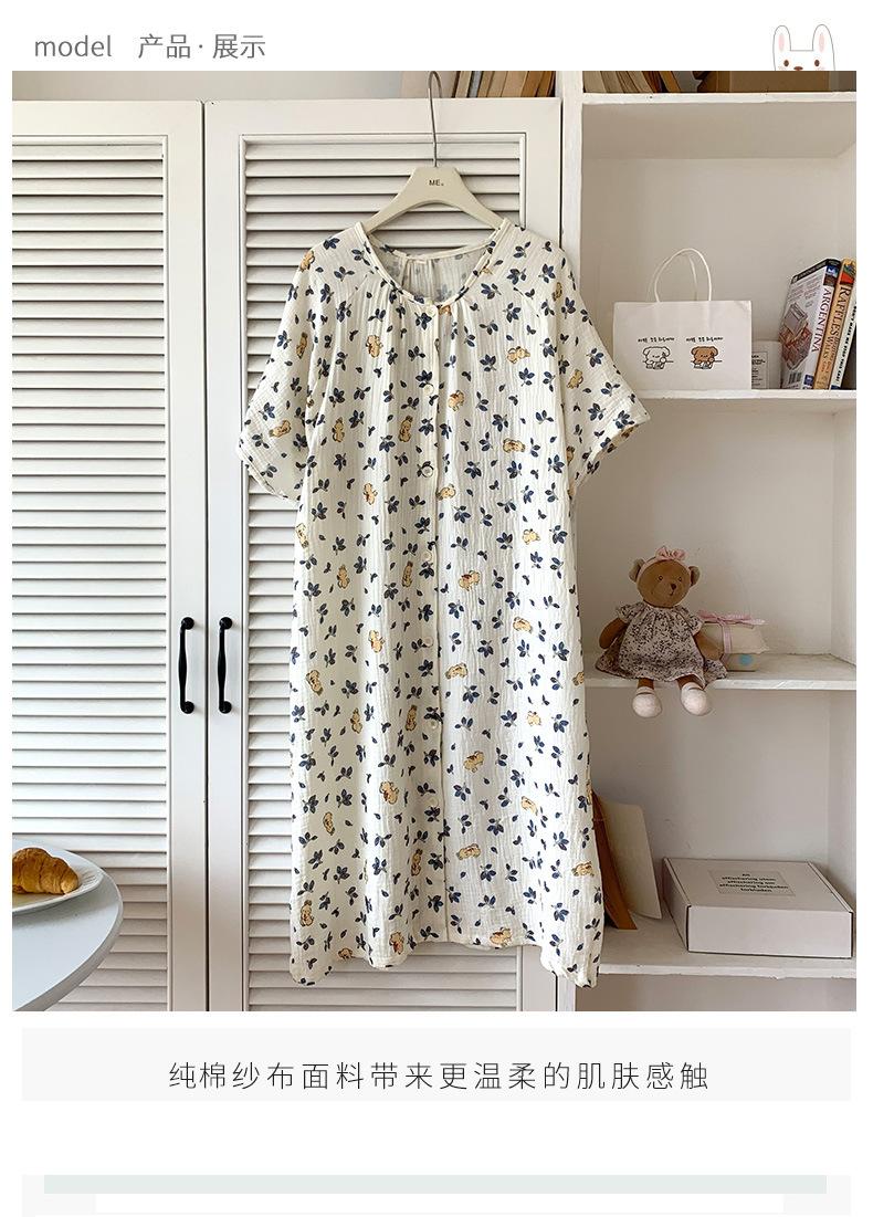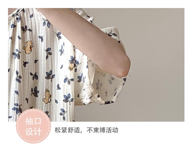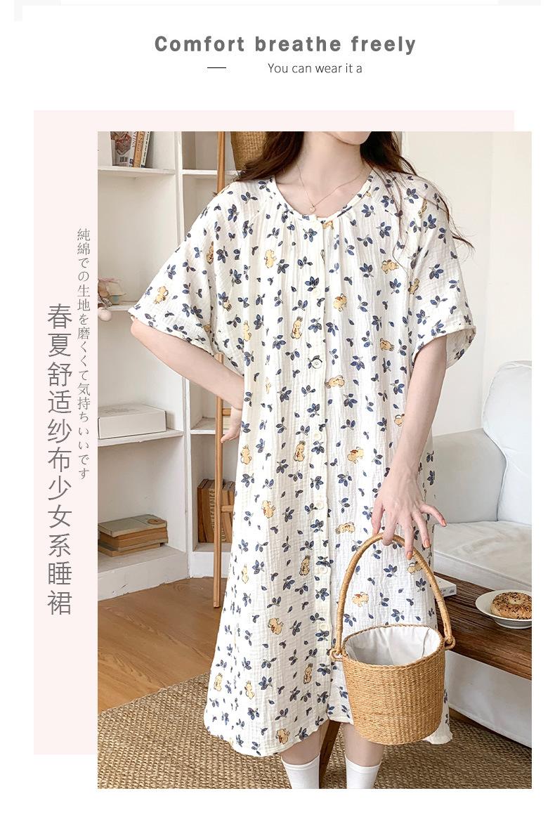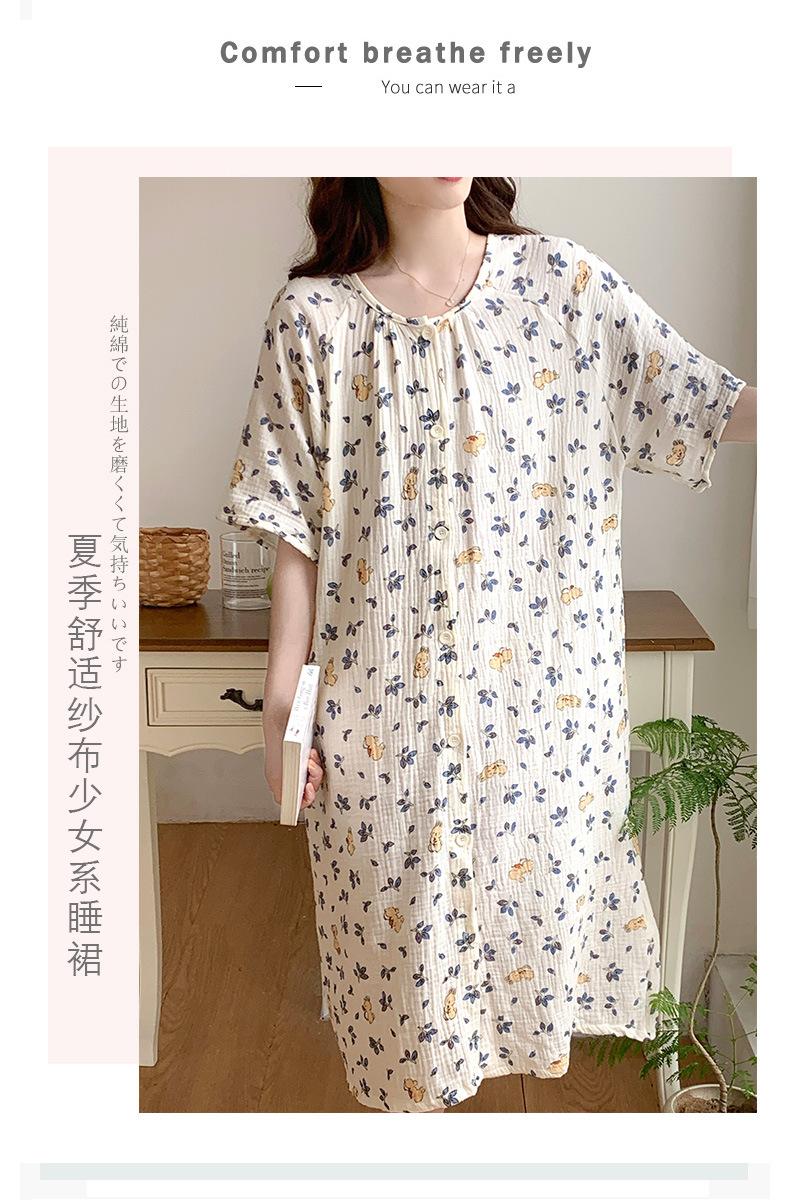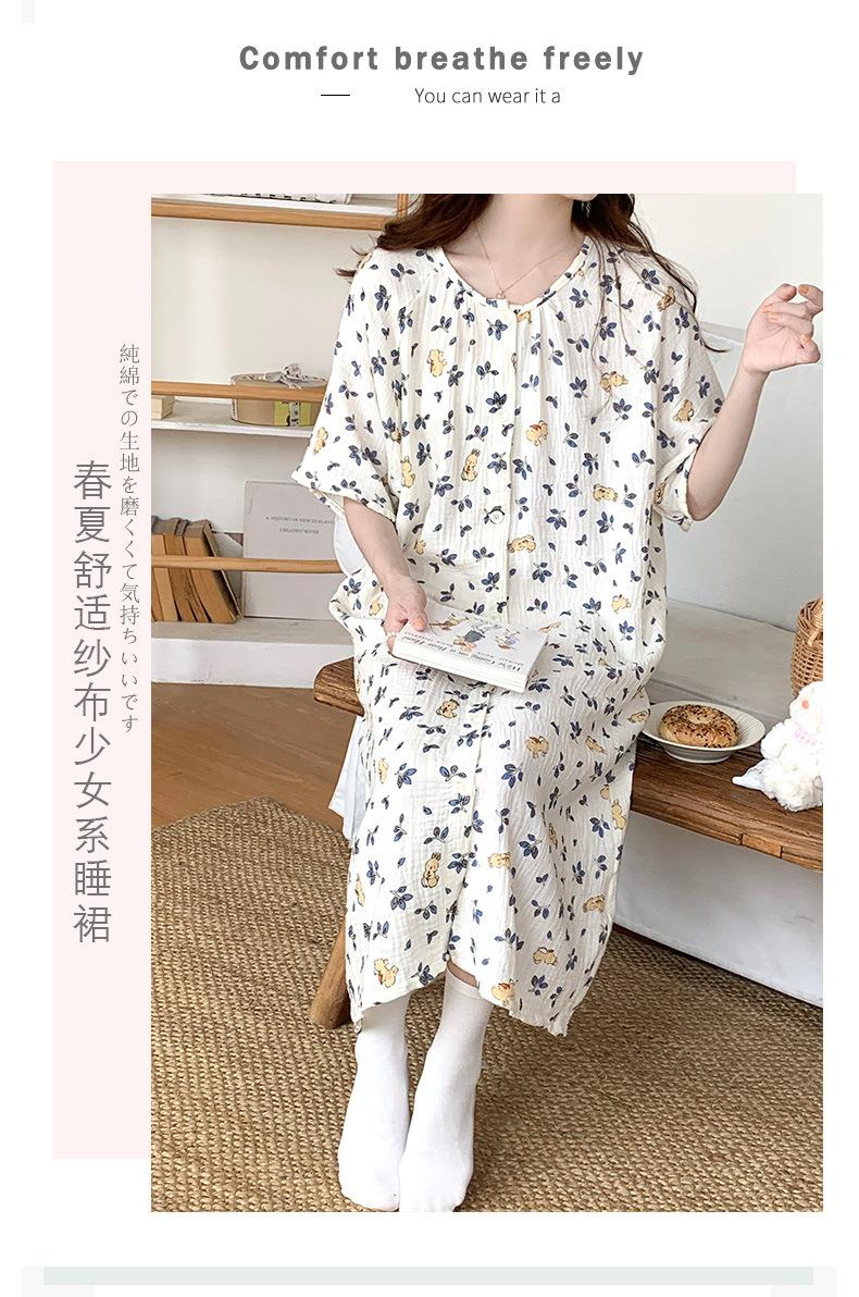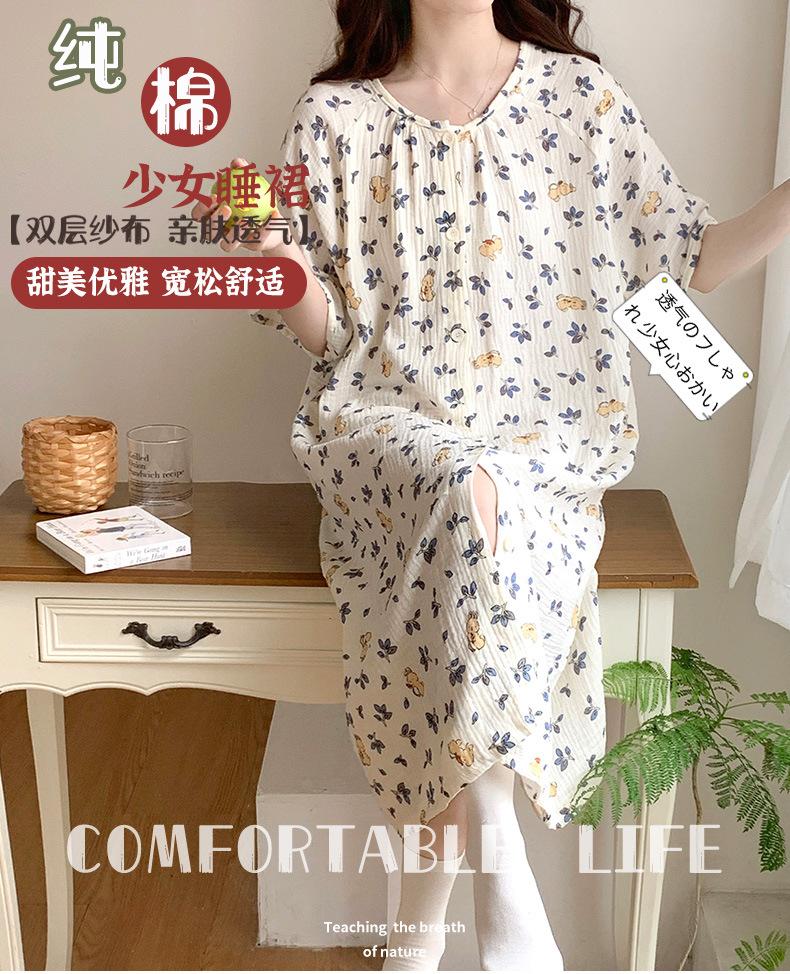 Pijama de Gasa de Algodón Puro para Niñas 2025 Verano Dulce Camisón de Manga Corta Largo Medio Holgado Fino Ropa para el Hogar