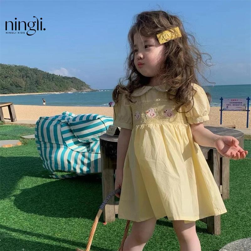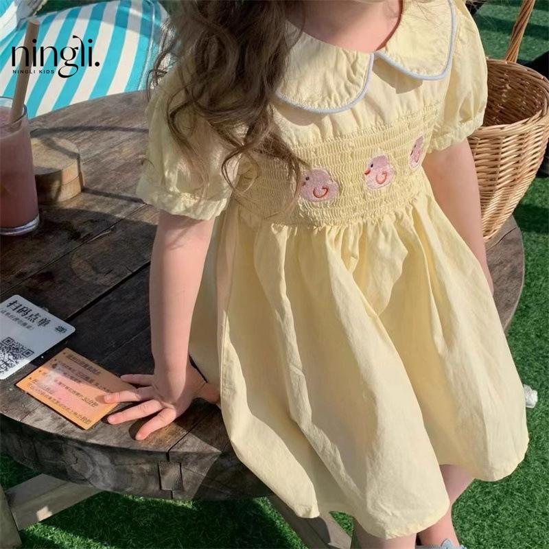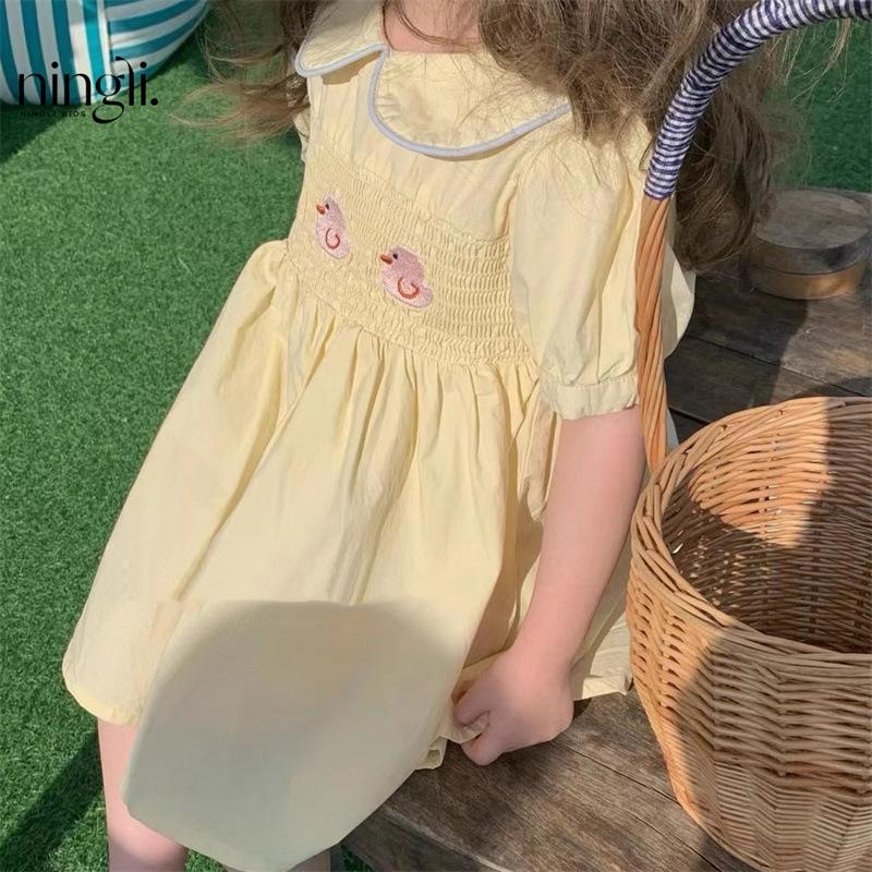 Vestido de Verano para Niñas Ningli 25 Vestido de Algodón Bordado con Patito Lindo Vestido de Princesa Lindo Falda de Muñeca