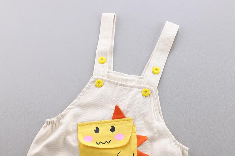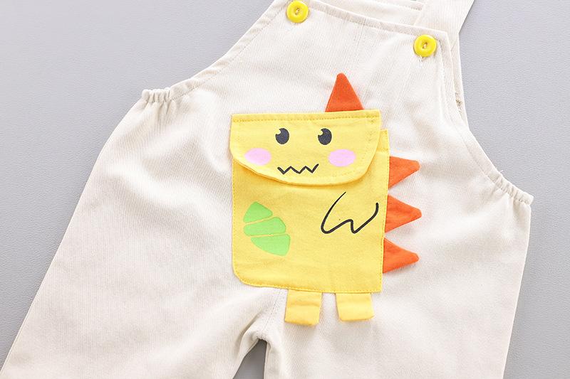 Off-white MXB long sleeve striped dinosaur suspenders set, Yellow MXB long sleeve striped dinosaur suspenders ...