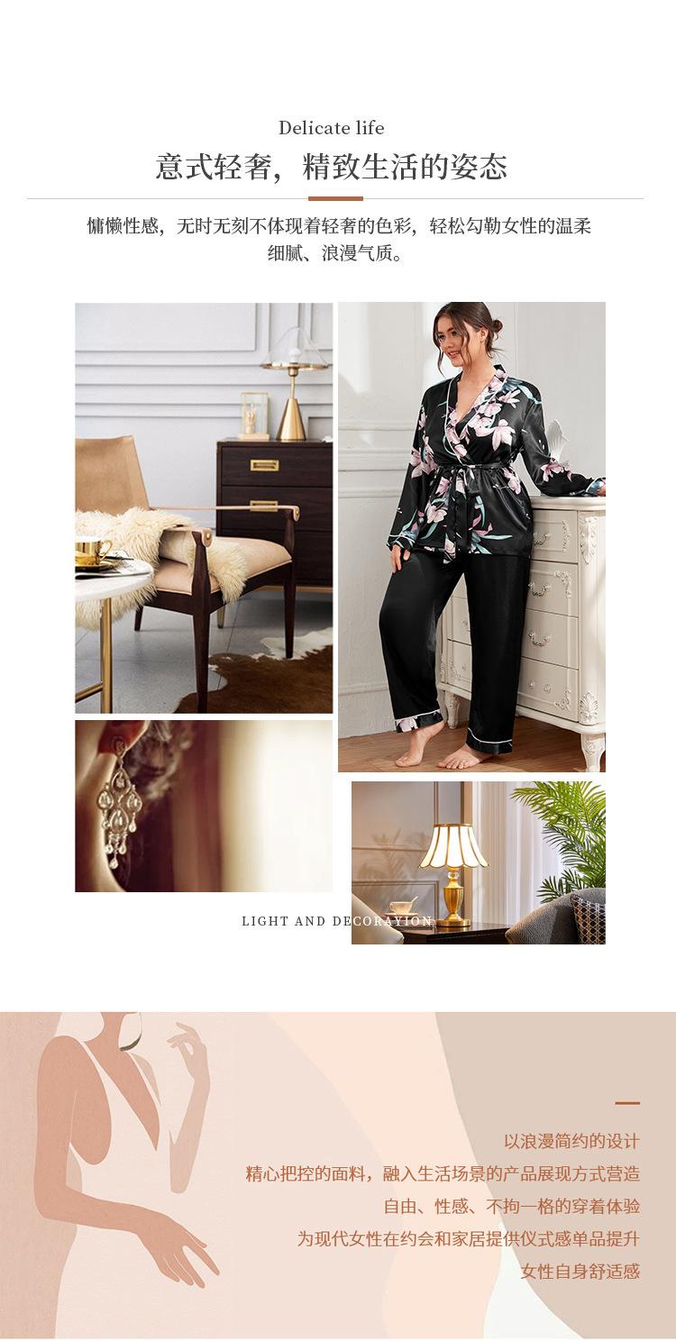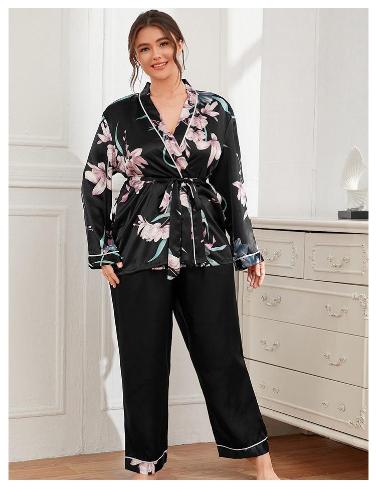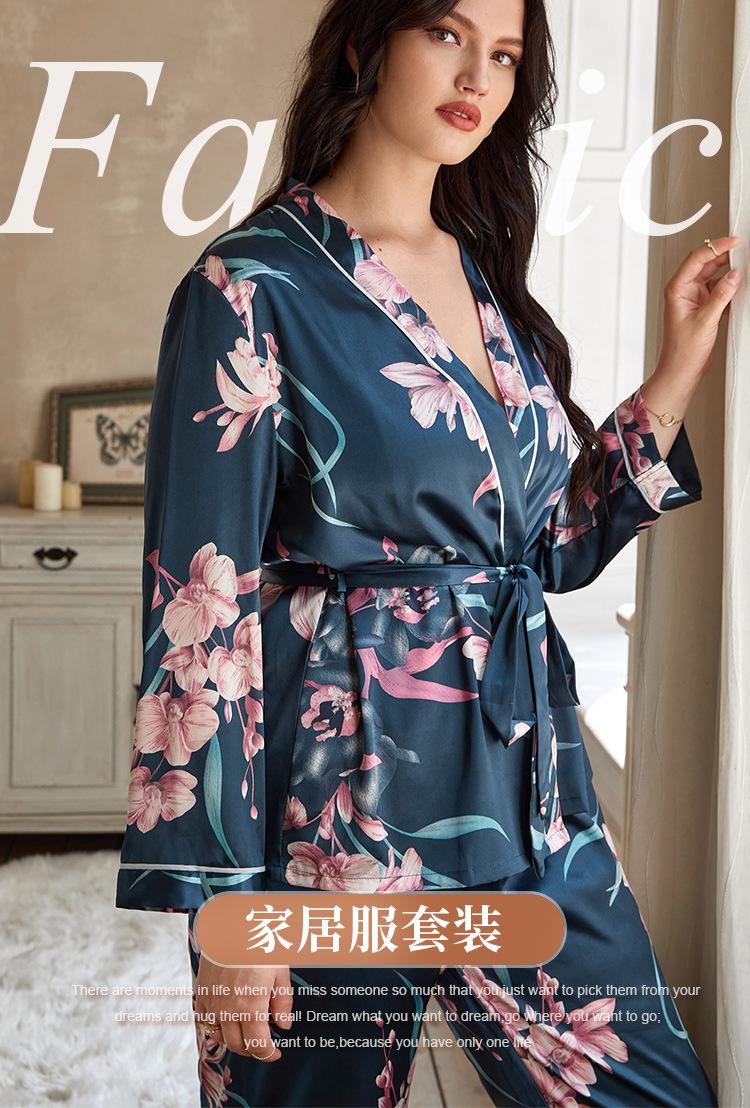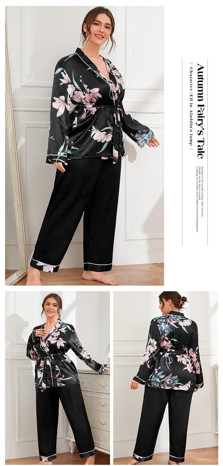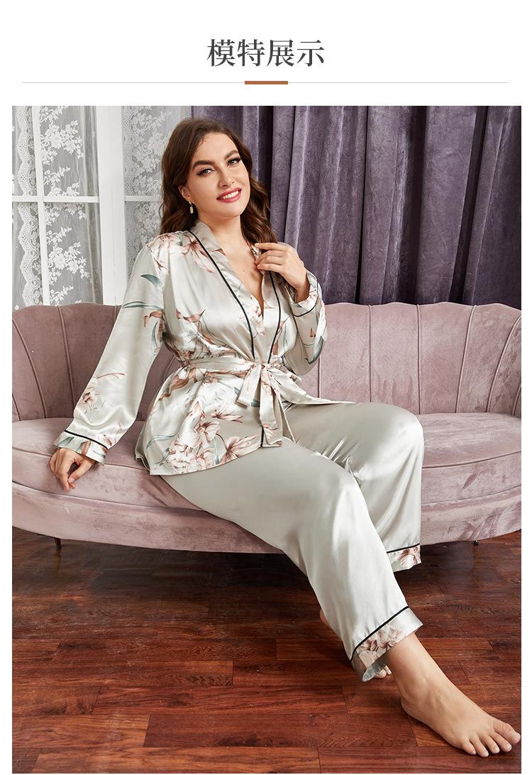 Pijama de talla grande transfronterizo europeo y americano para mujer, cárdigan con cordones, camisón, pijama informal holgado, traje de casa para mujer