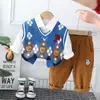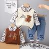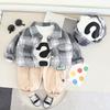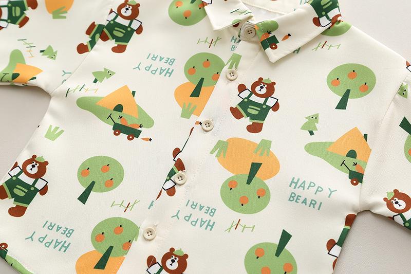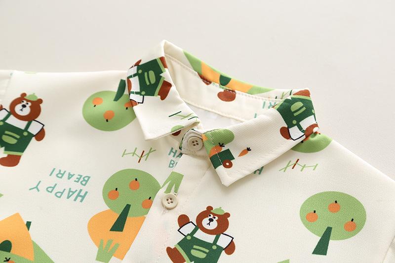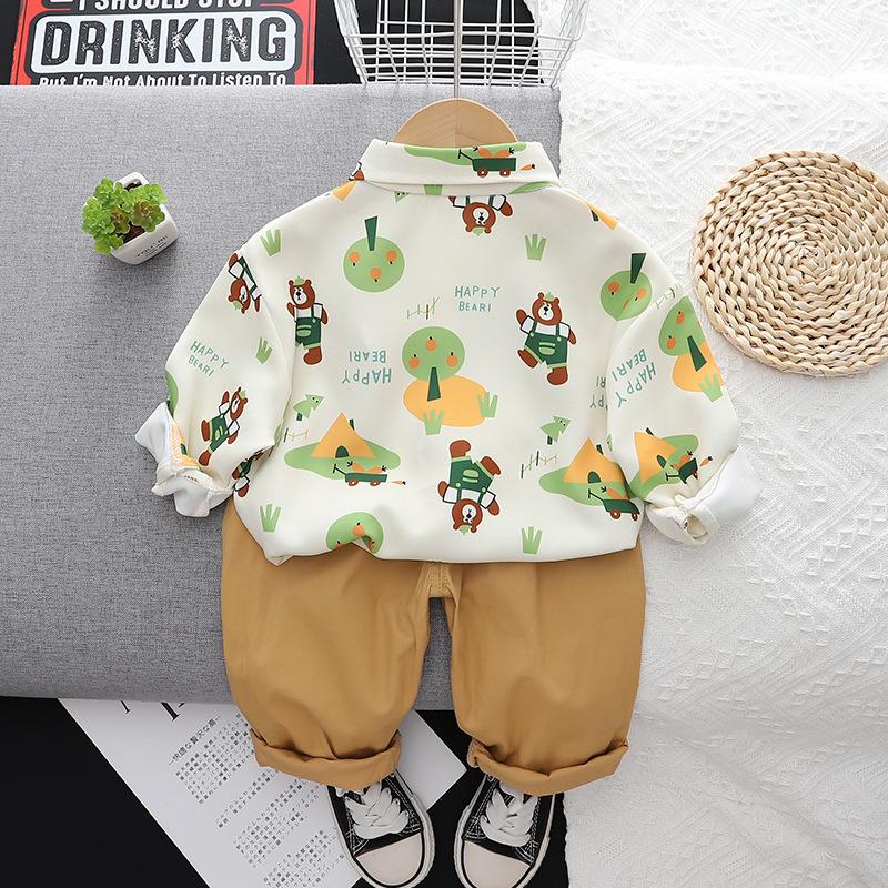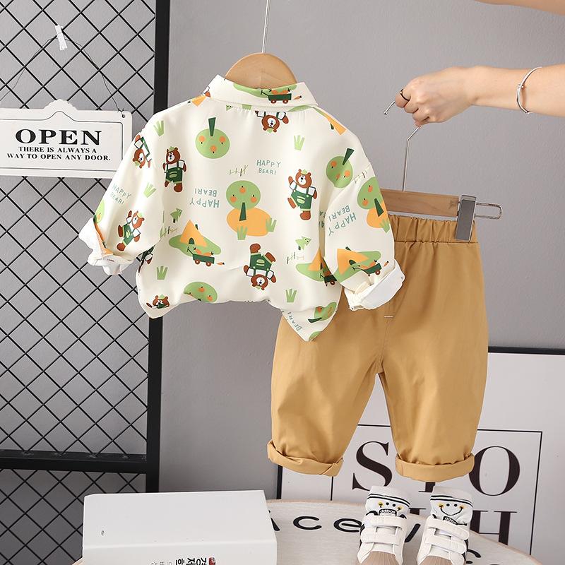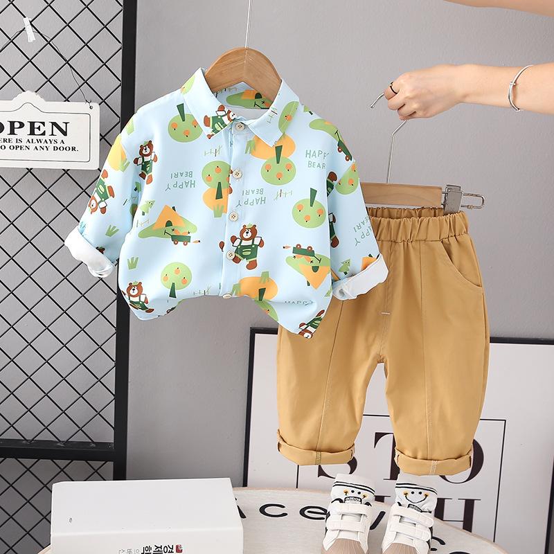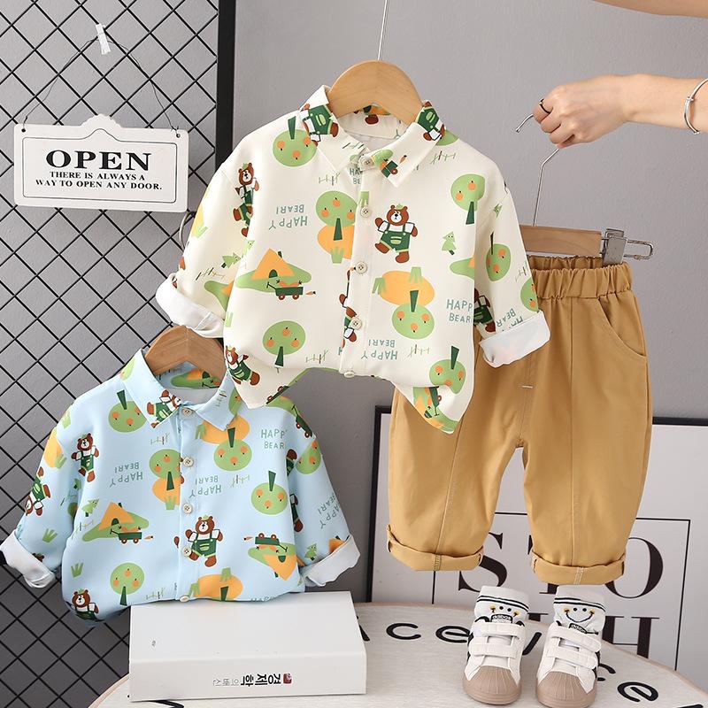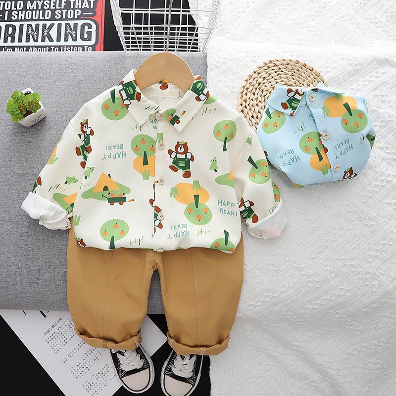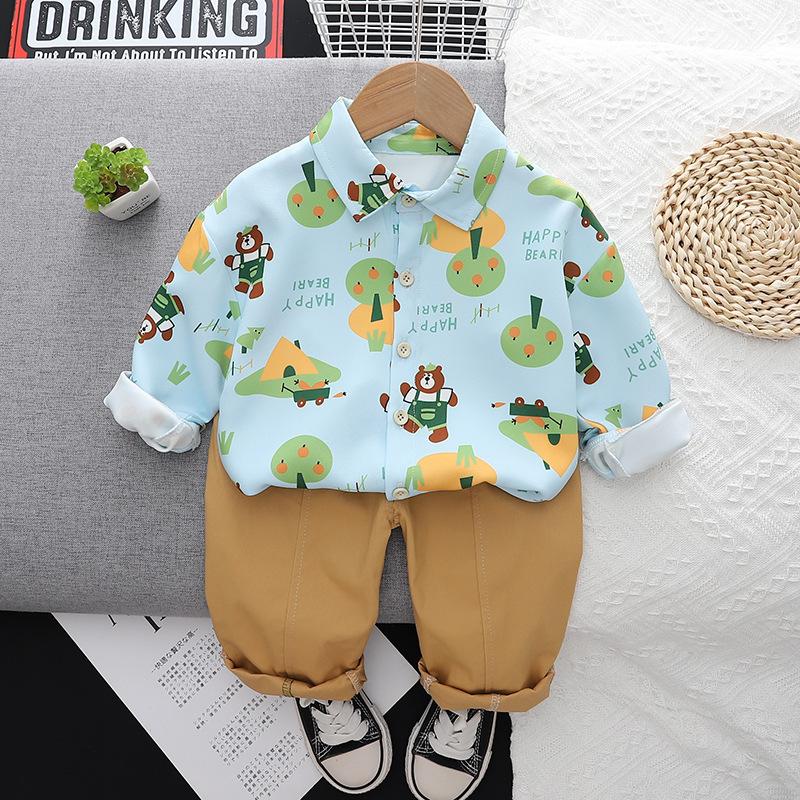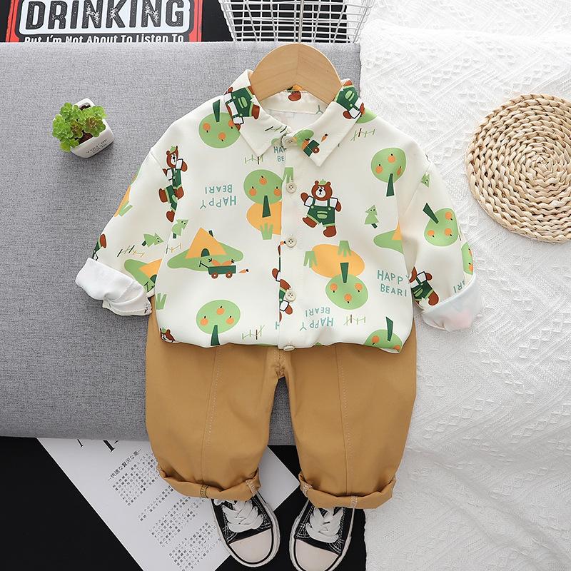 Traje de camisa estampada elegante para niños, primavera y otoño 2023, nueva ropa de otoño de moda para niños, traje de dos piezas de estilo coreano para bebés