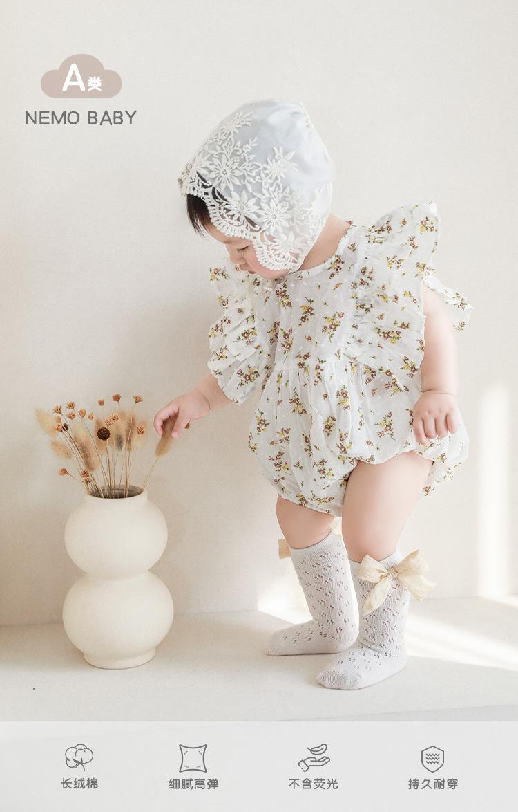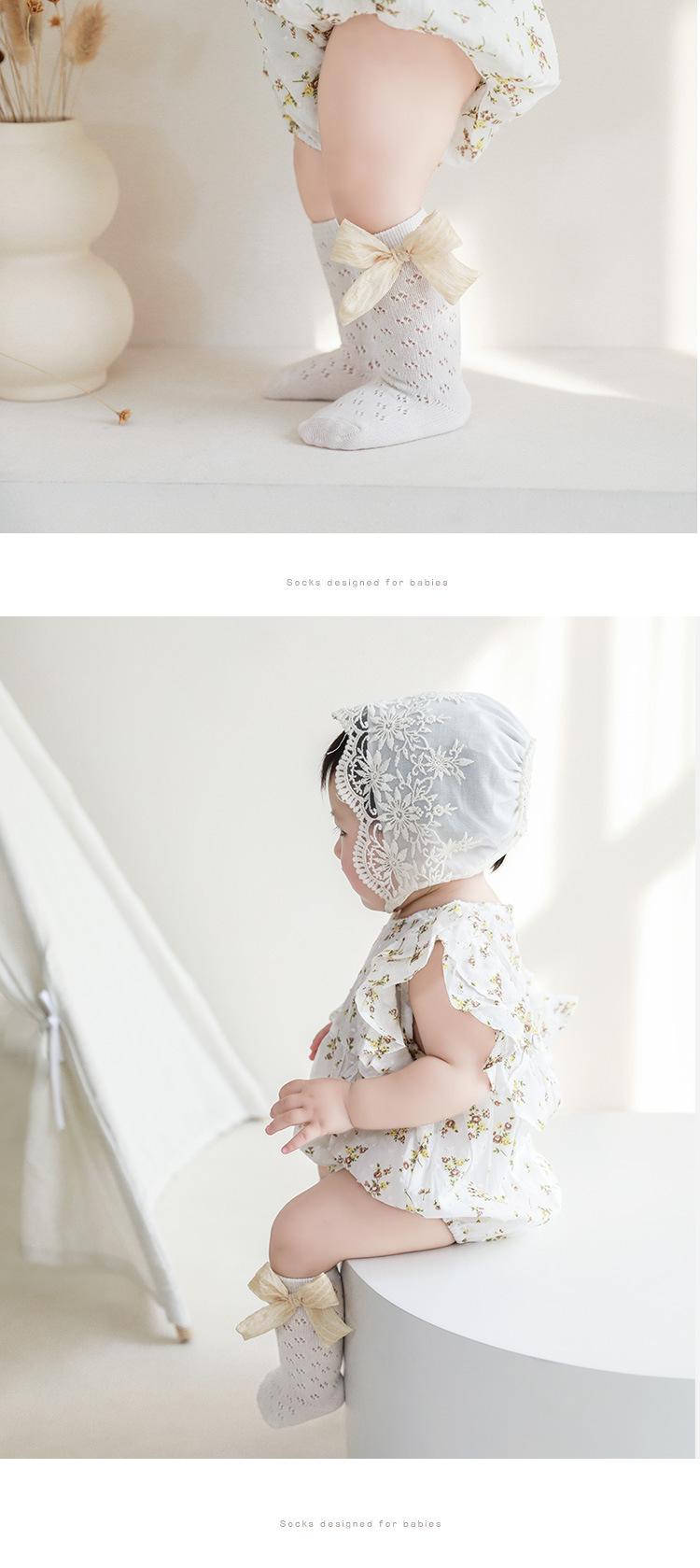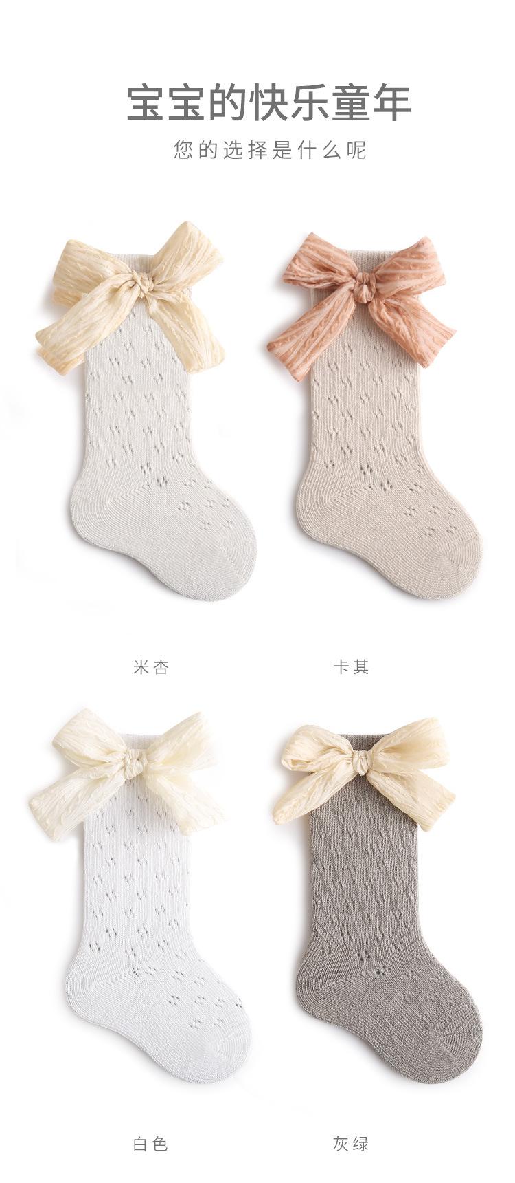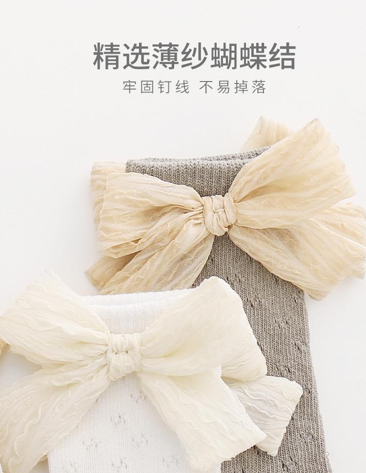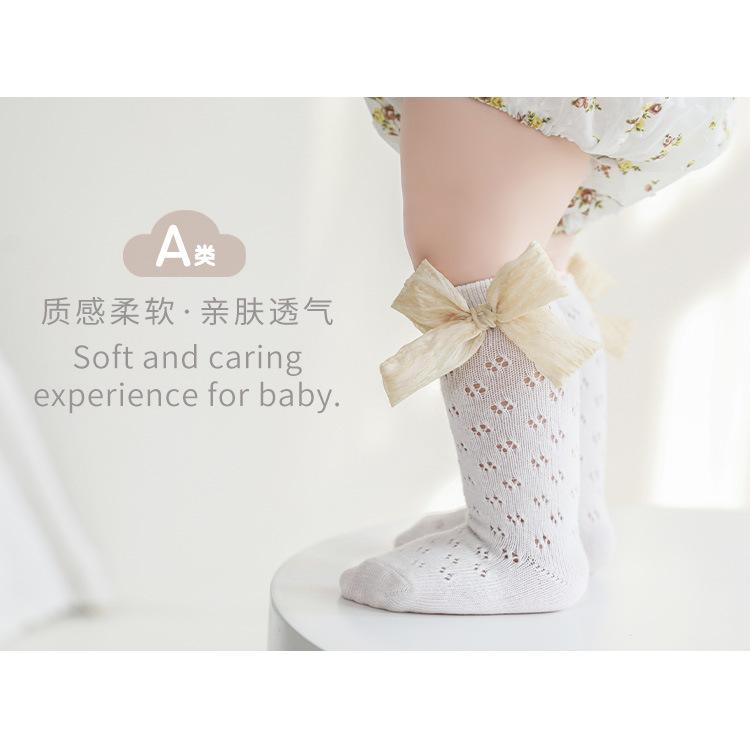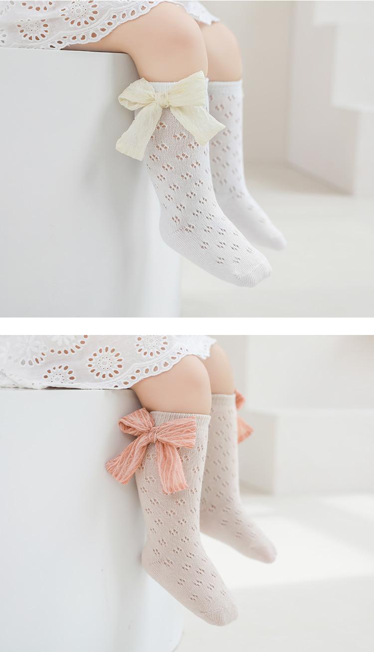 Calcetines de verano para niñas, finos, de malla hueca con lazo, de princesa, de tubo medio