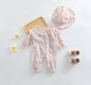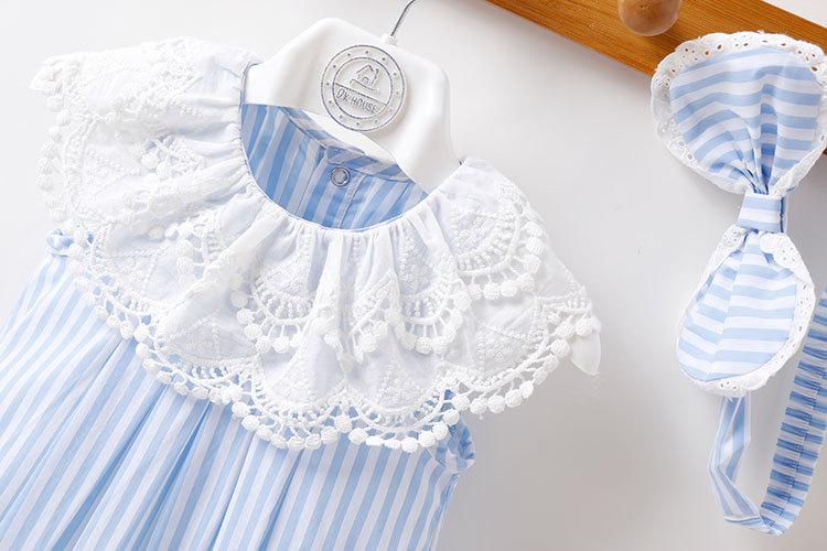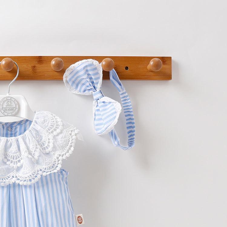 Versión coreana de traje de gateo para bebé 2022 verano nuevo mameluco para bebé bolsa para bebé pedo rayas encaje manga corta chaqueta