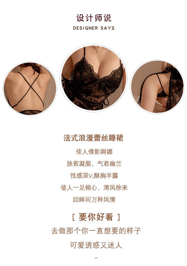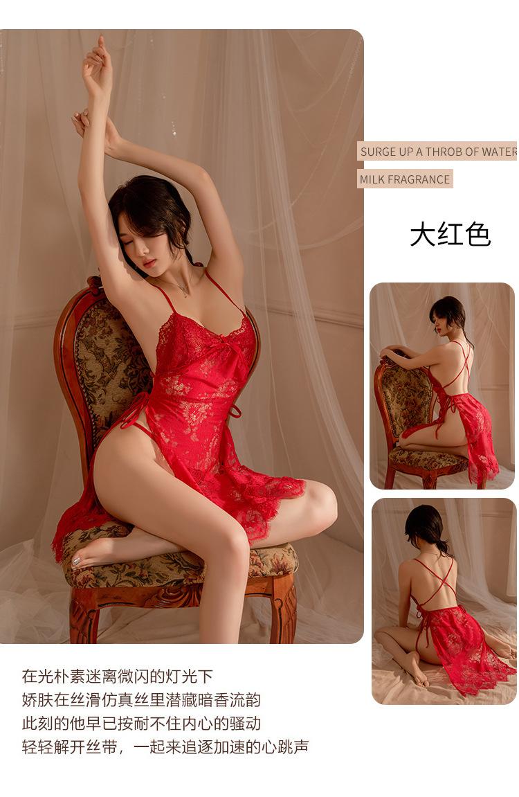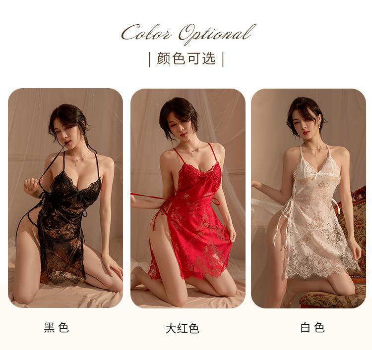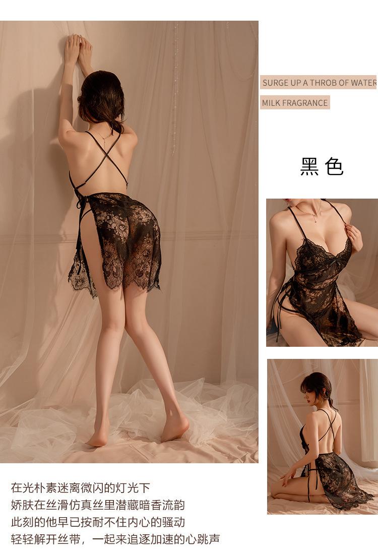Lencería Sexy Tentación Femenina Sexy Encaje Transparente Halter Colgante Espalda Descubierta Pijama Tentación Encaje Transparente Halter Colgante Moldeador de Cuerpo