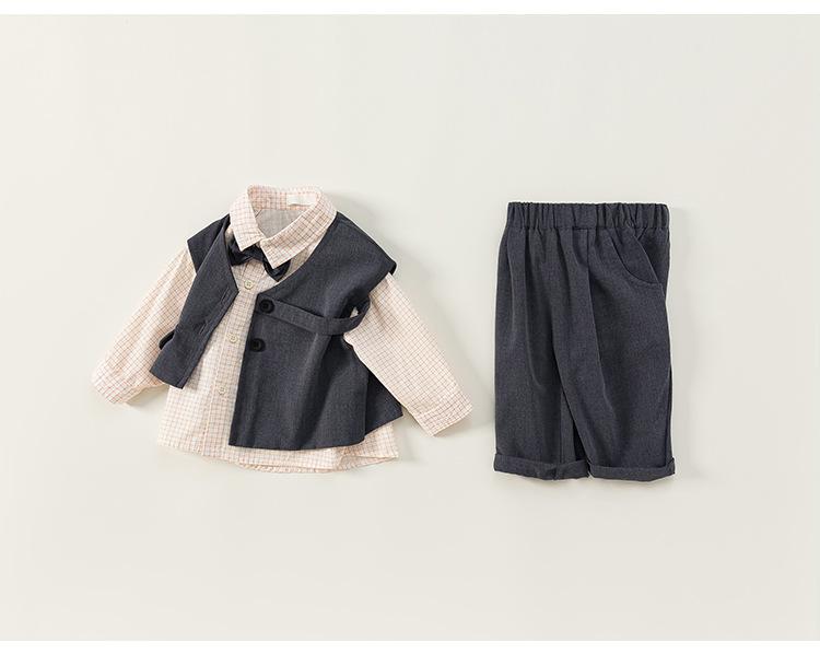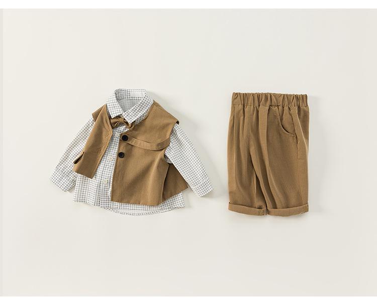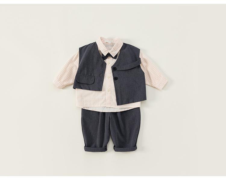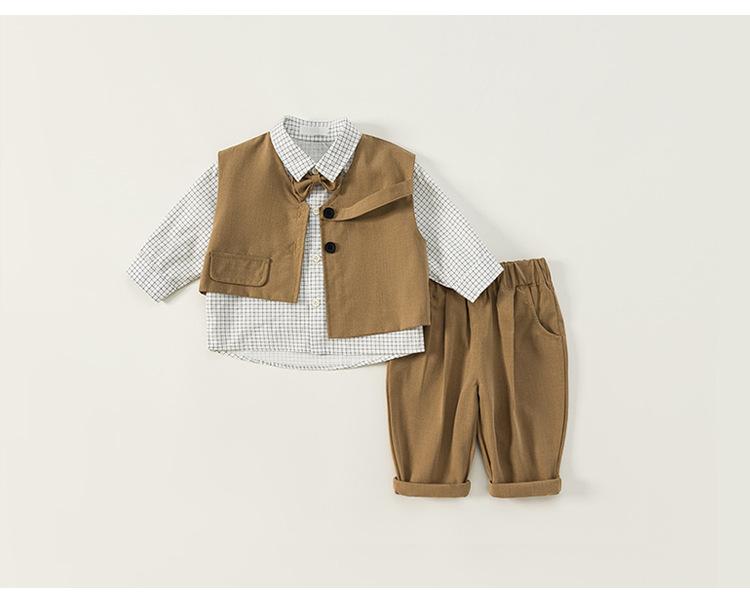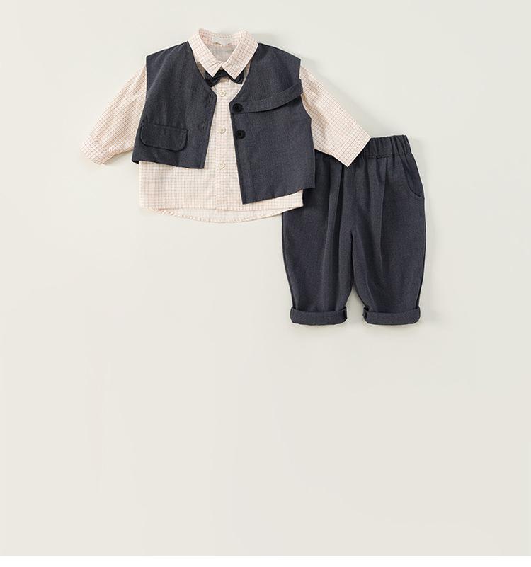 Ropa para Niños Bangxuan Traje para Niños Chaleco Pantalón Conjunto de Tres Piezas Estilo Británico Traje para Niños Estilo Caballero Ropa para Niños Pequeños