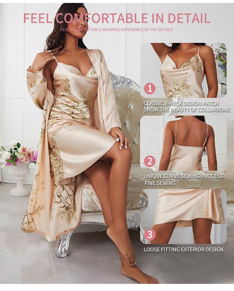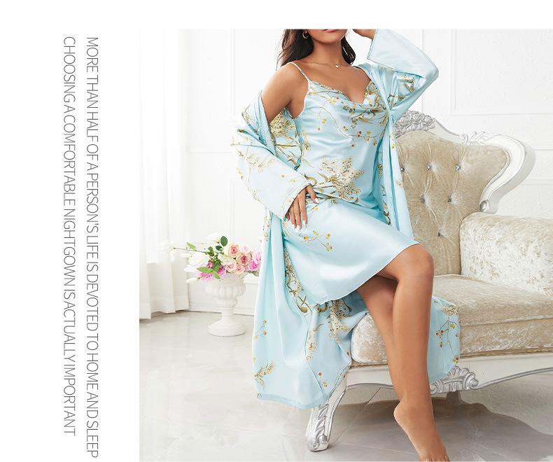 Pijamas transfronterizos de verano para mujer, de seda helada, de alta calidad, con tirantes finos y cuello de falda, ropa de casa para mujer, traje exterior.