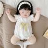 Mameluco Exquisito Bordado para Bebé Otoño 2024 Ropa Coreana para Niños Pequeños Arnés Triangular de Manga Larga para Bebé Niña