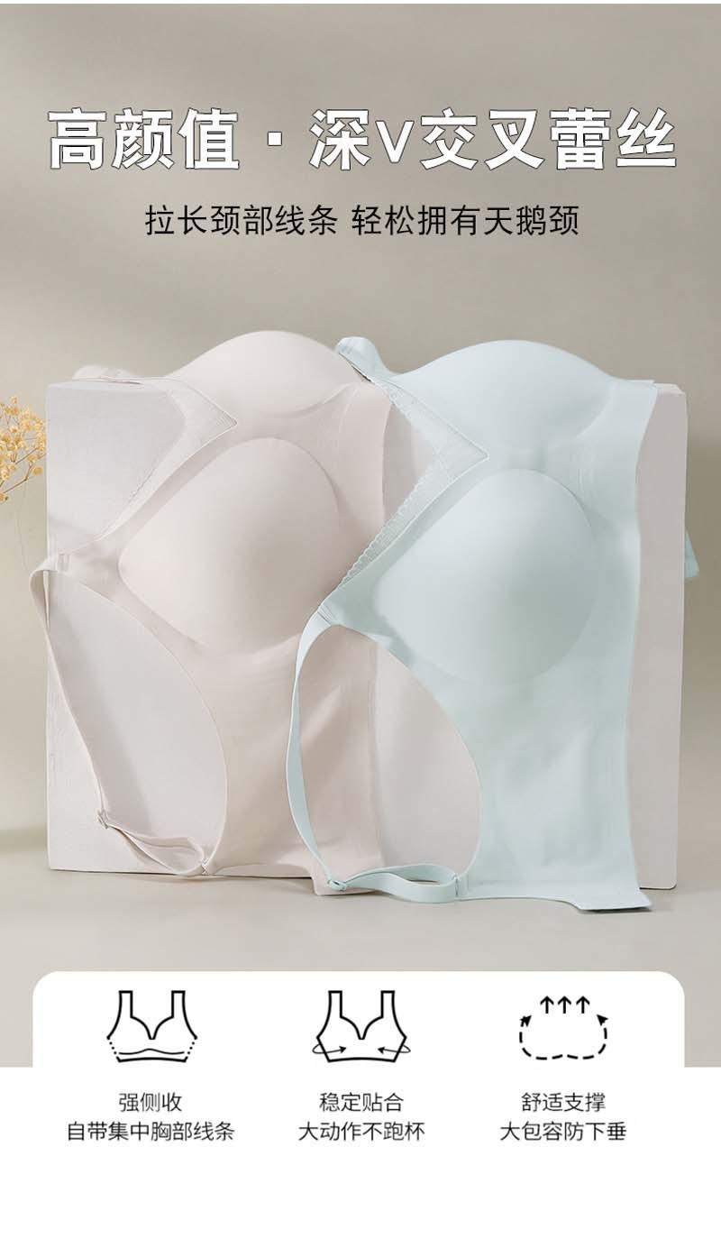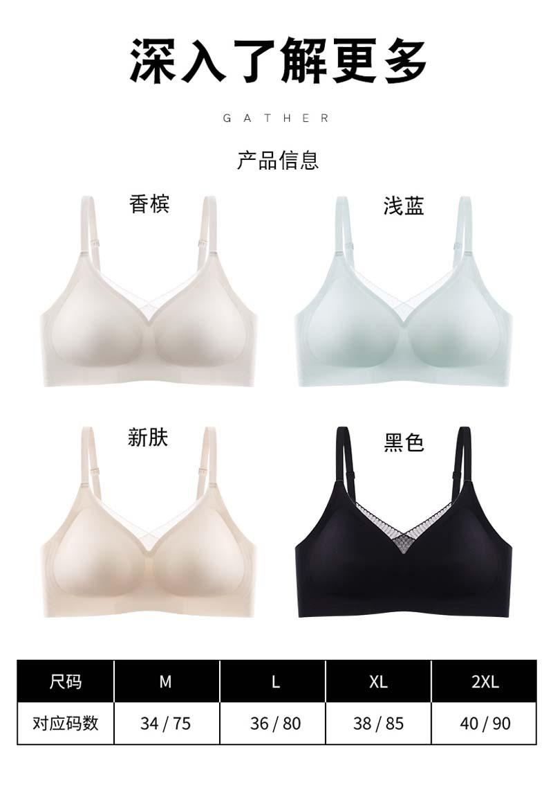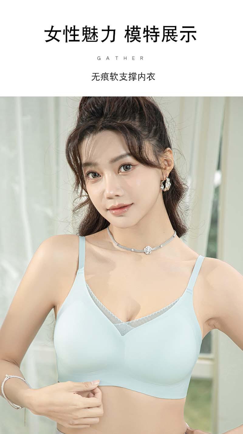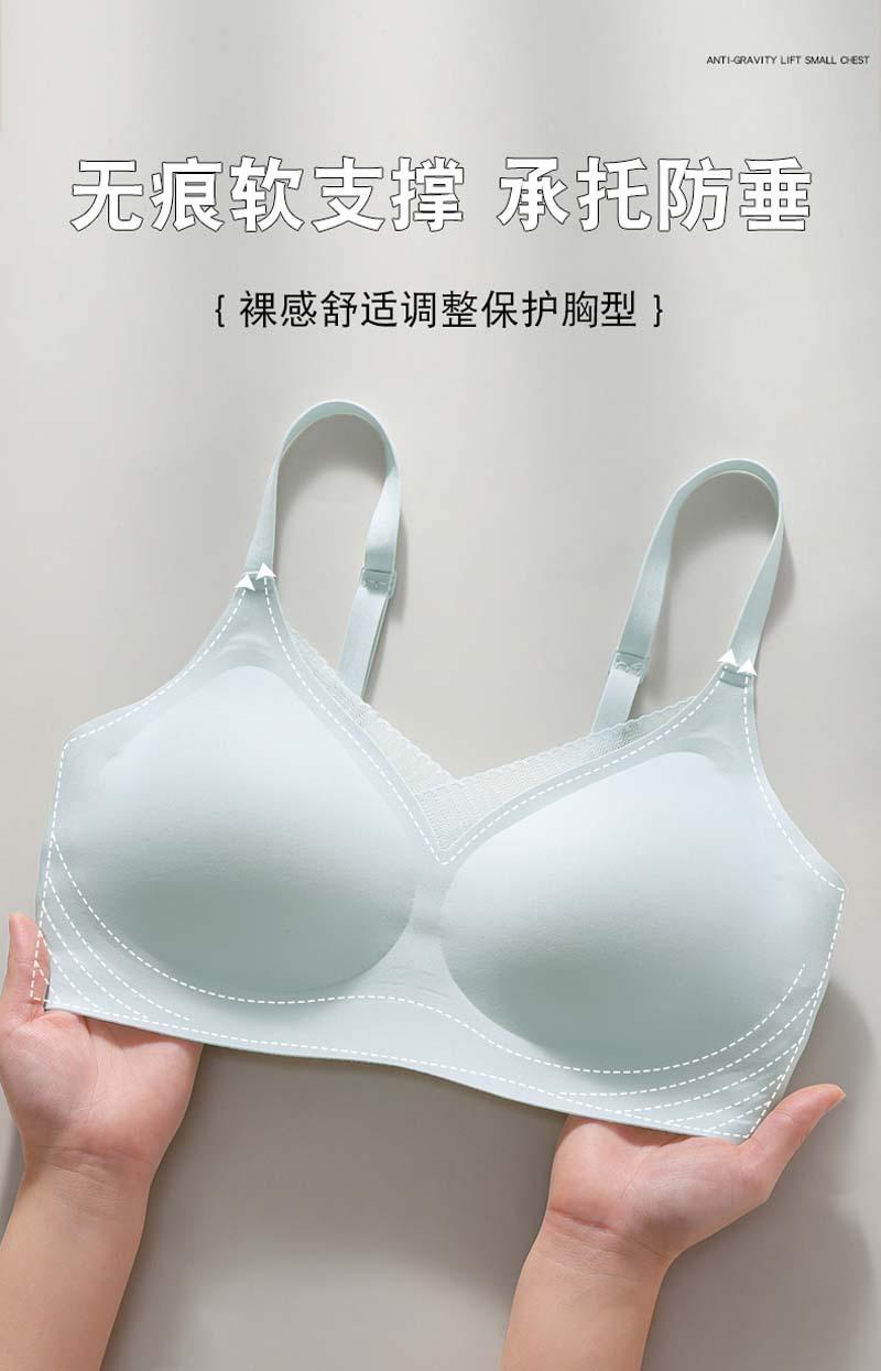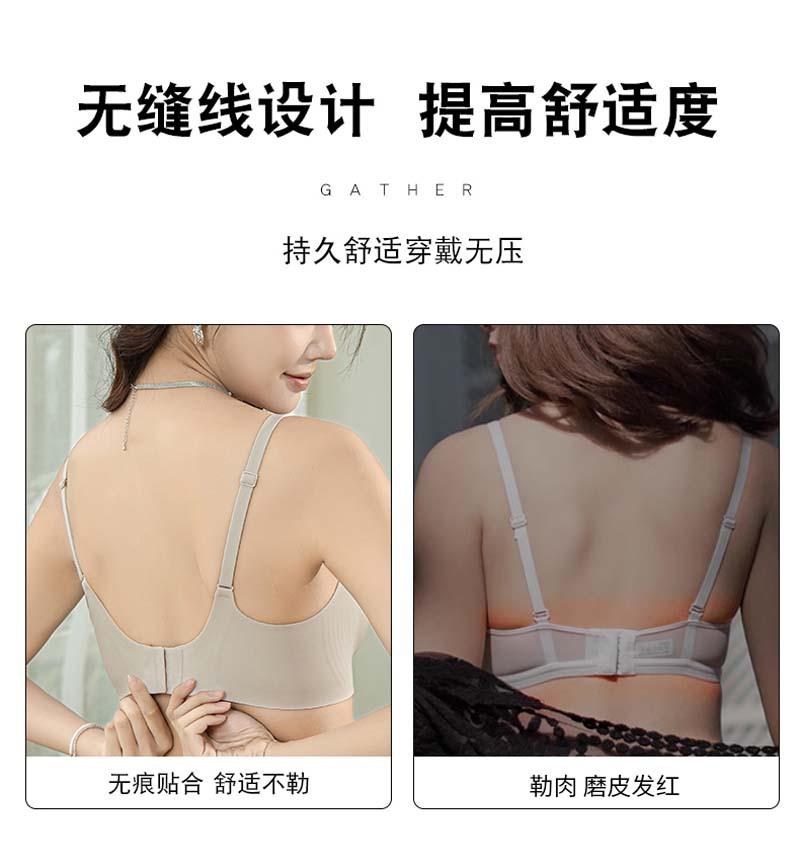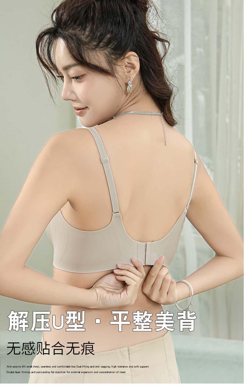 Sujetador de seda de hielo sin costuras para mujer con hebilla de fila sin anillo de acero, soporte suave, elevación de copa semifija 825, hermosa espalda