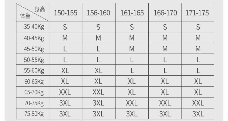 M 70-95, L 95-110, XL 110-130, XXL 130-150