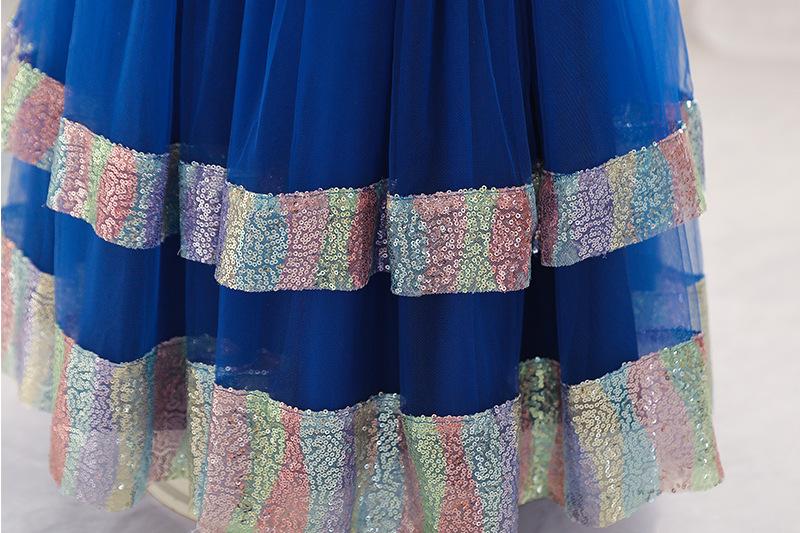 Vestido Infantil Vestido de Princesa Vestido Largo Malla Abullonado Europeo y Americano Transfronterizo Vestido de Anfitriona de Espectáculo para Niñas para Ver el Piano