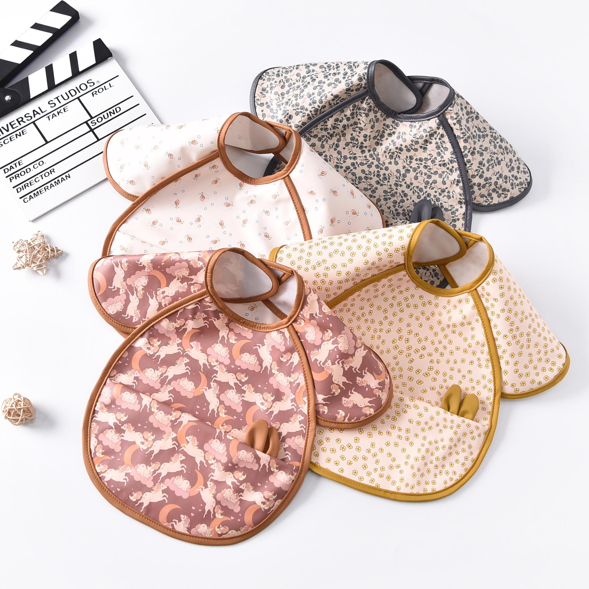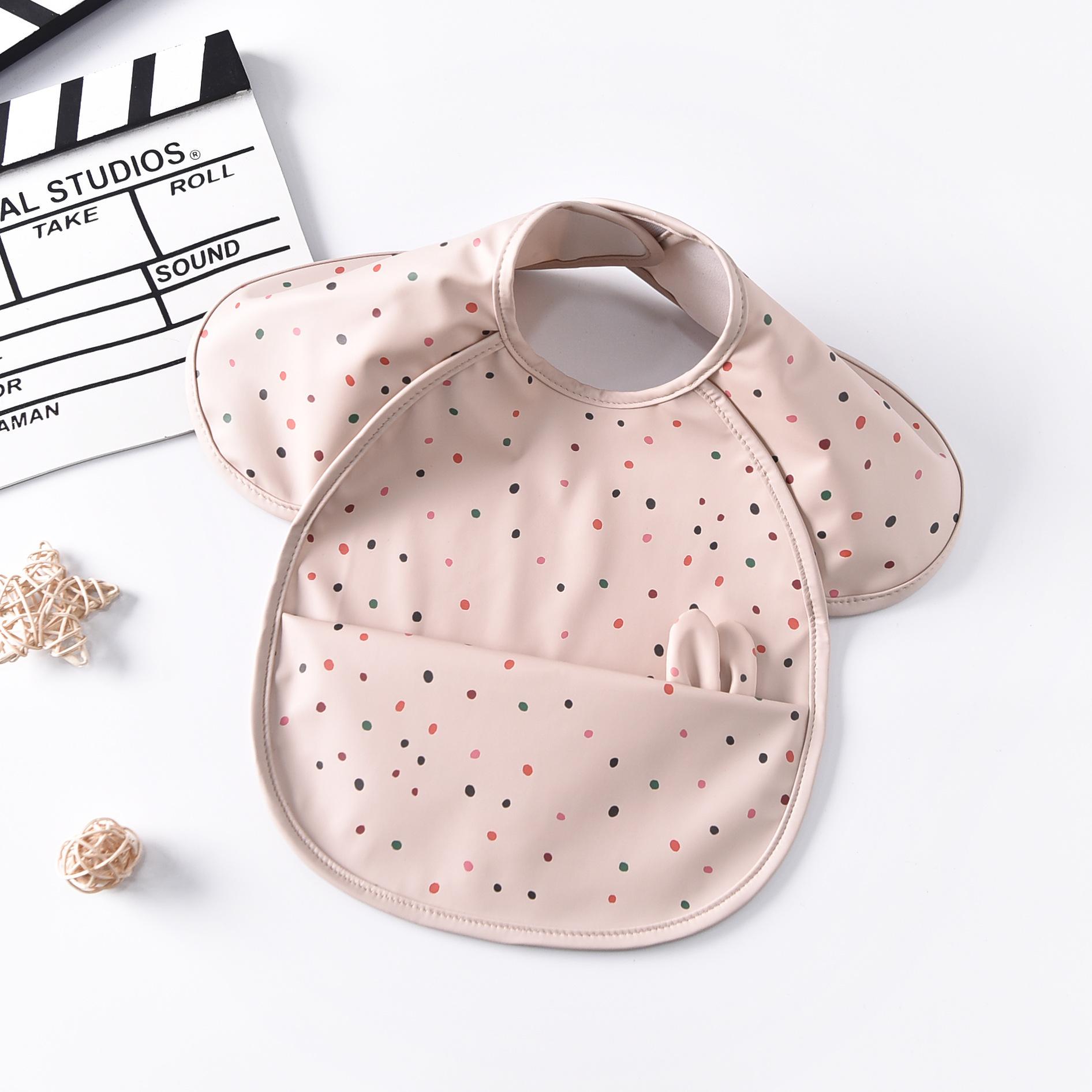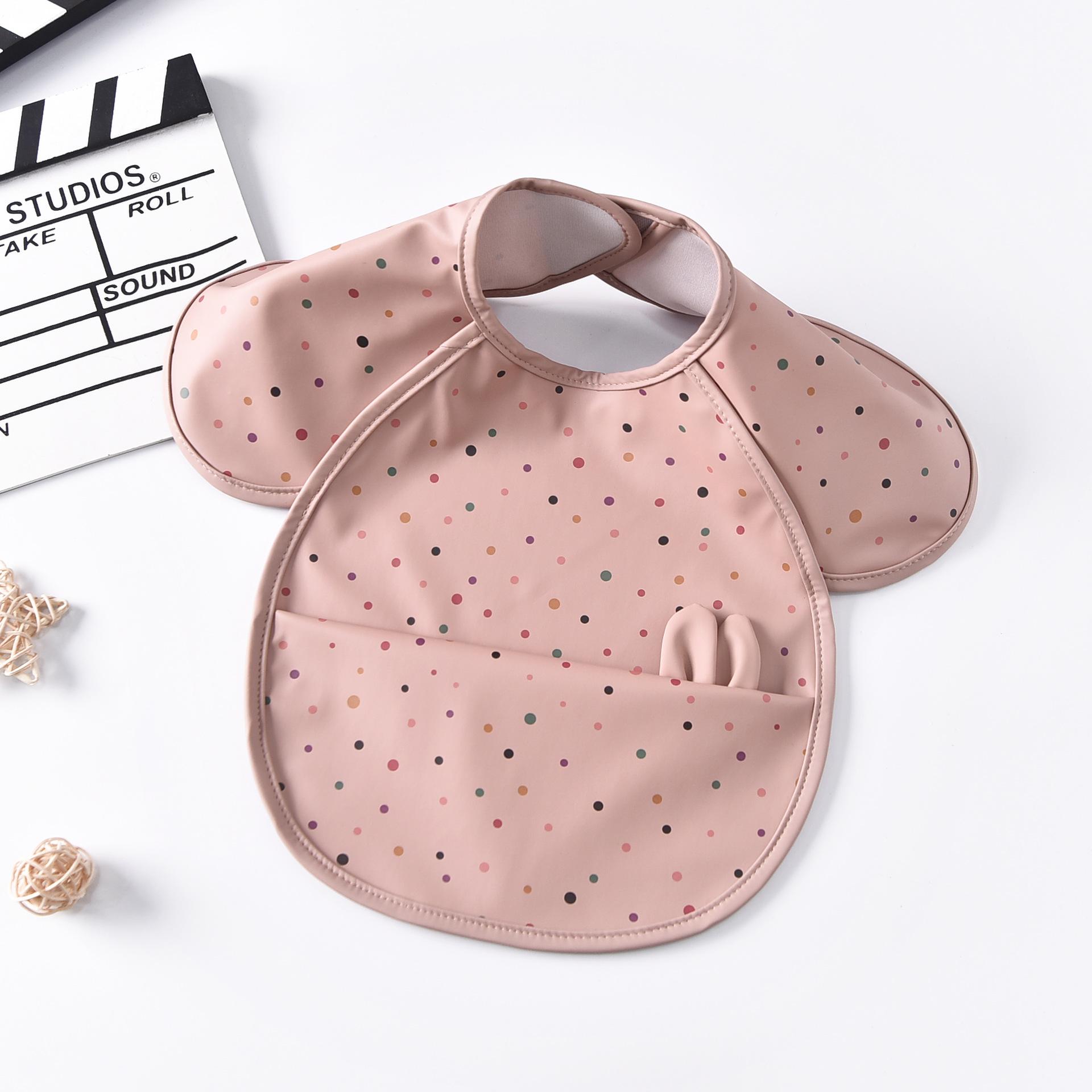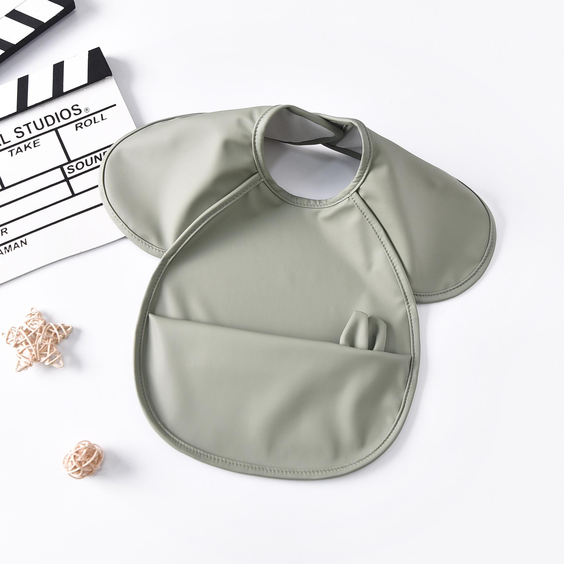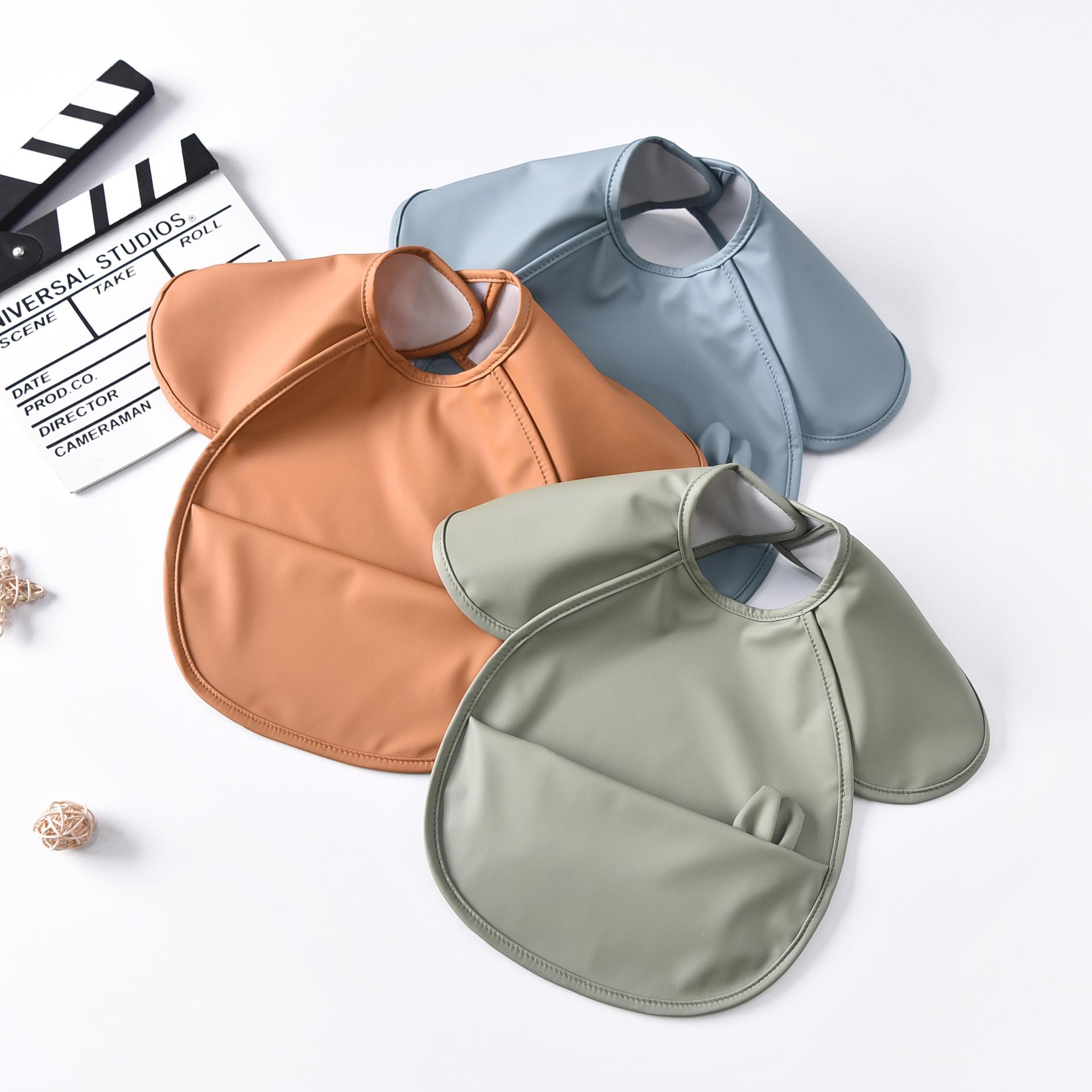 Babero para bebé, nuevo babero para niños, impermeable, antiadherente, para guardería, para niños y niñas, con funda de PU y bolsillo grande.