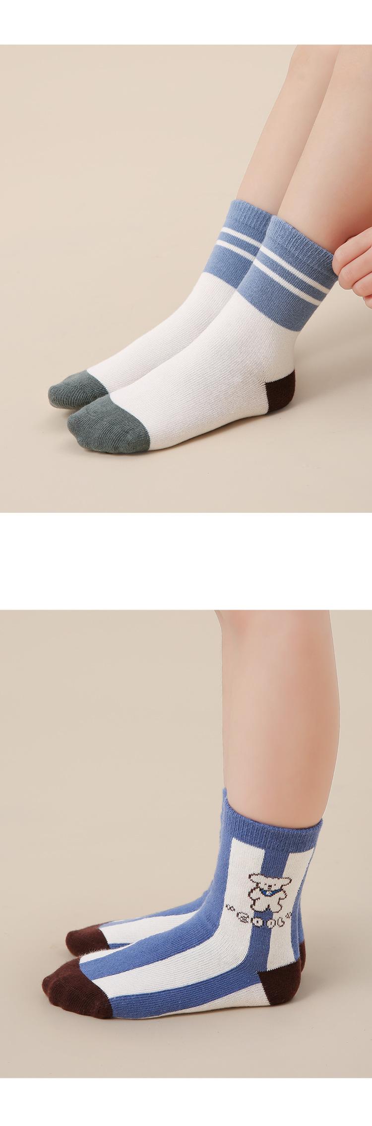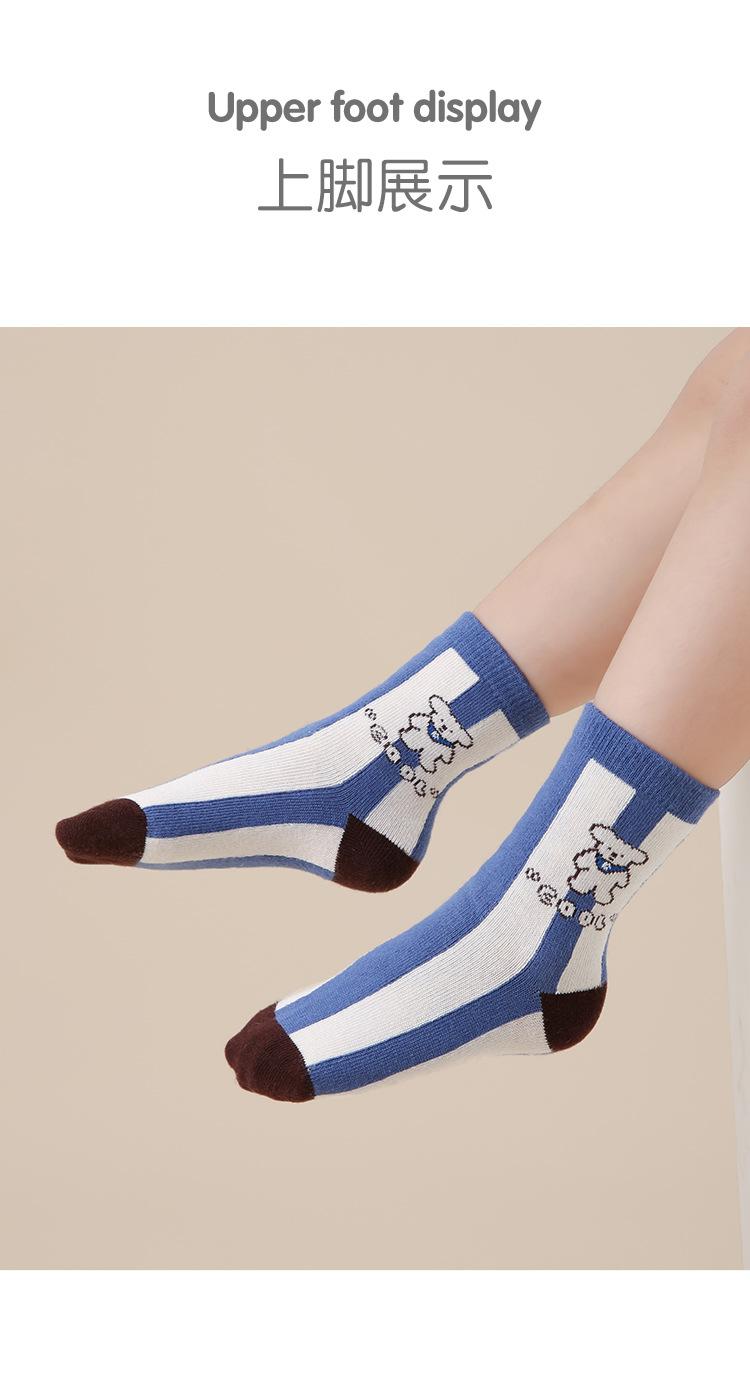 Calcetines para Niños Otoño Una Pieza Dibujos Animados Oso Calcetines de Bebé Algodón Sin Costuras Bloque de Color Letra Calcetines para Niños