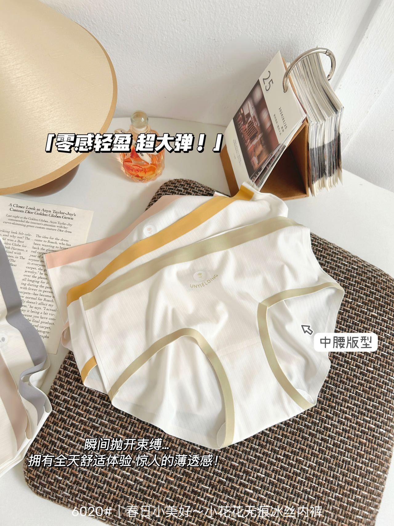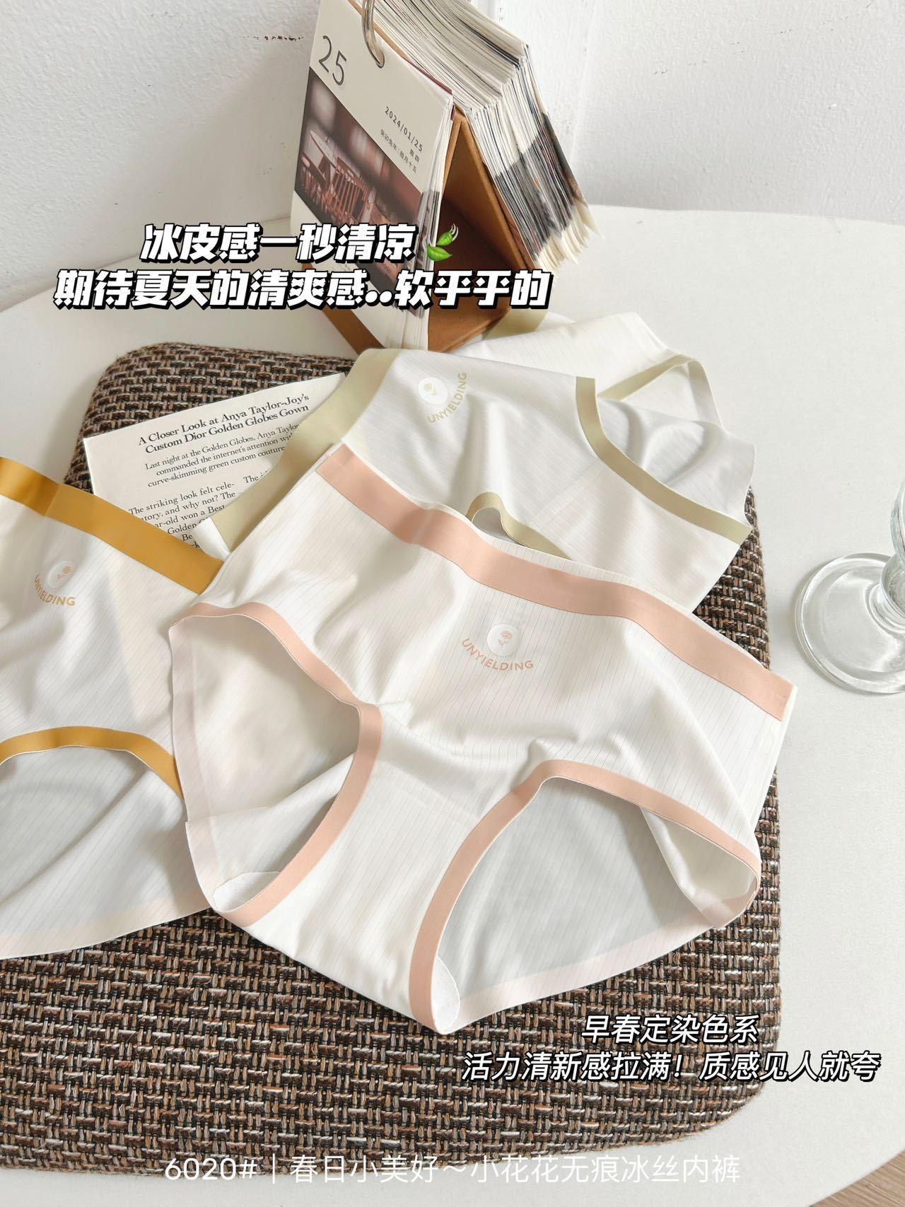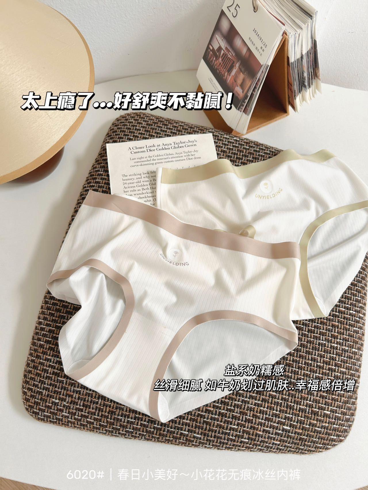Alta Calidad ~ Ropa Interior Simple sin Costuras de Seda de Hielo Estilo Japonés para Mujer, Cintura Media, Cómoda, Suave, Calzoncillos Nude y Ultradelgados