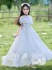 Vestido Dulce de Encaje Floral para Niñas Vestido de Princesa 25 Primavera y Verano Nuevo Comercio Exterior Ropa Infantil al Por Mayor