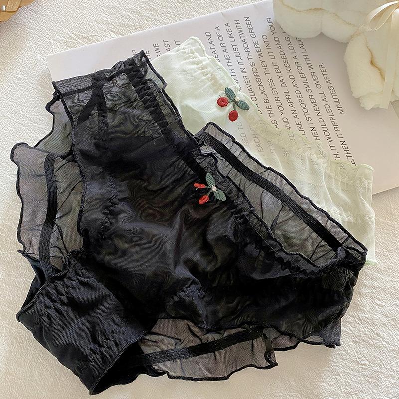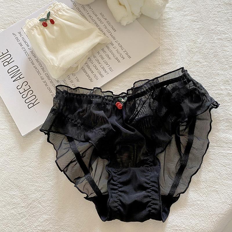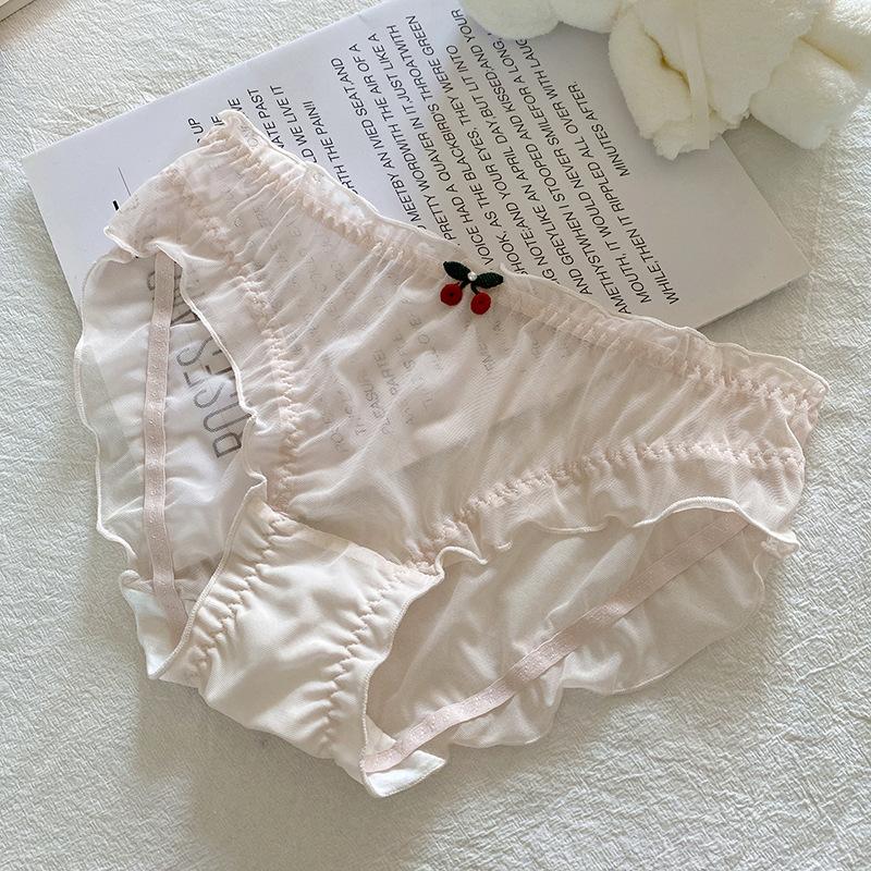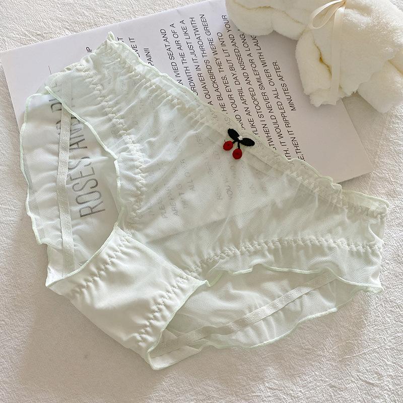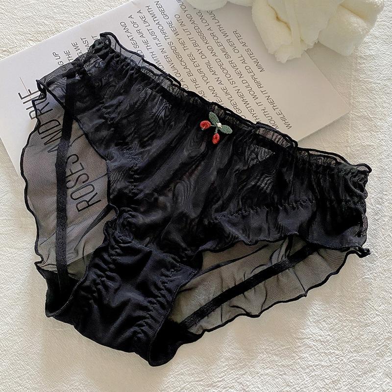 Ropa interior de encaje para mujer, sexy, de color sólido, transpirable, ligera, de malla de algodón, entrepierna, bragas, ropa interior sin costuras para mujer, estilo japonés