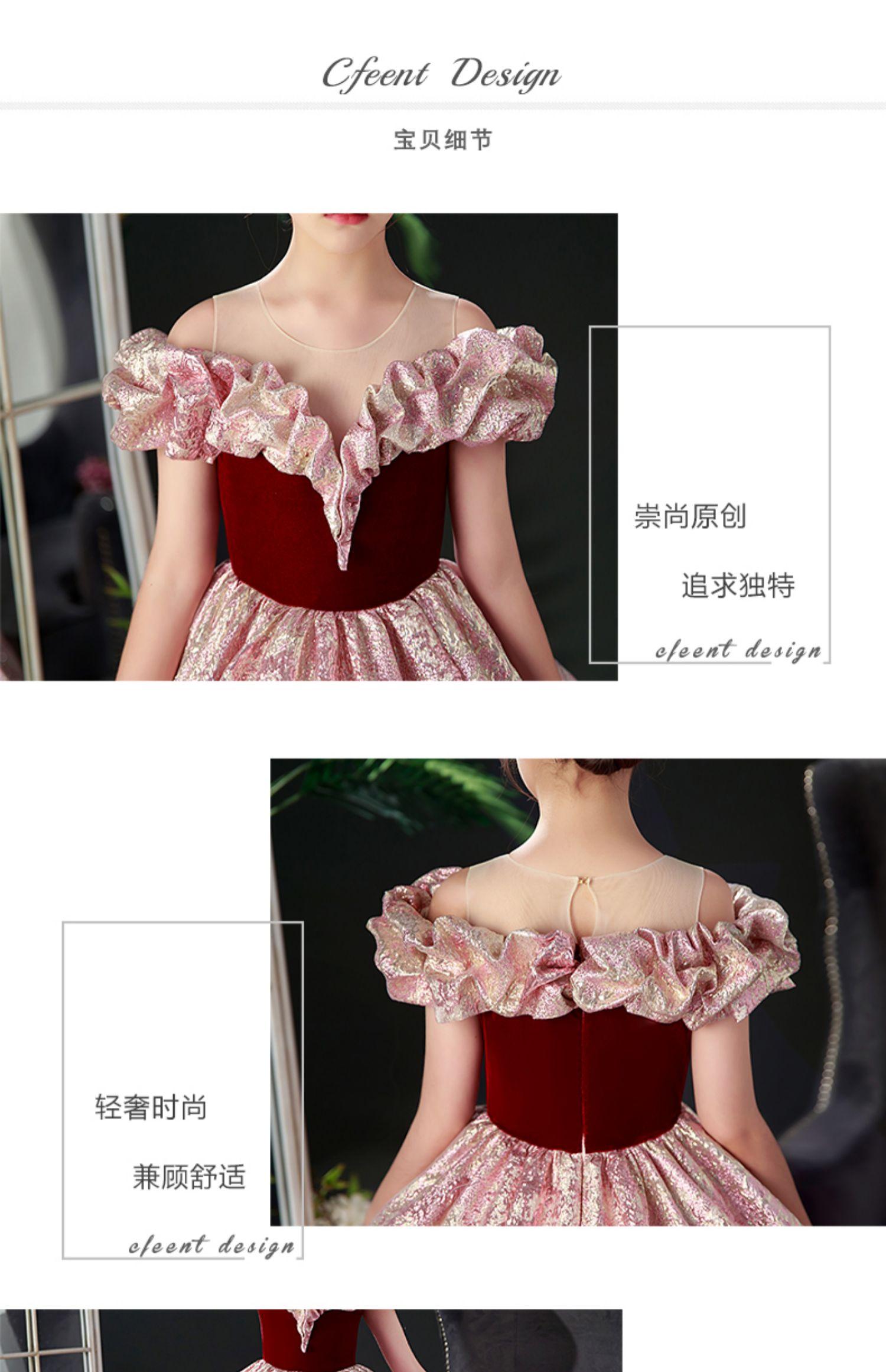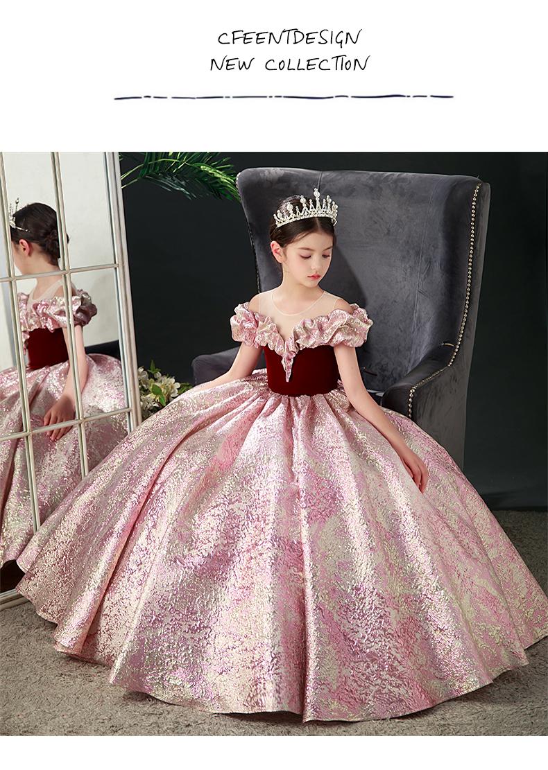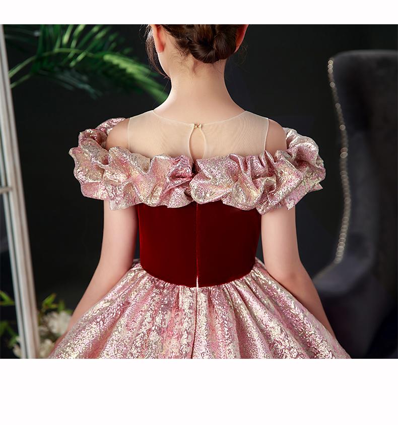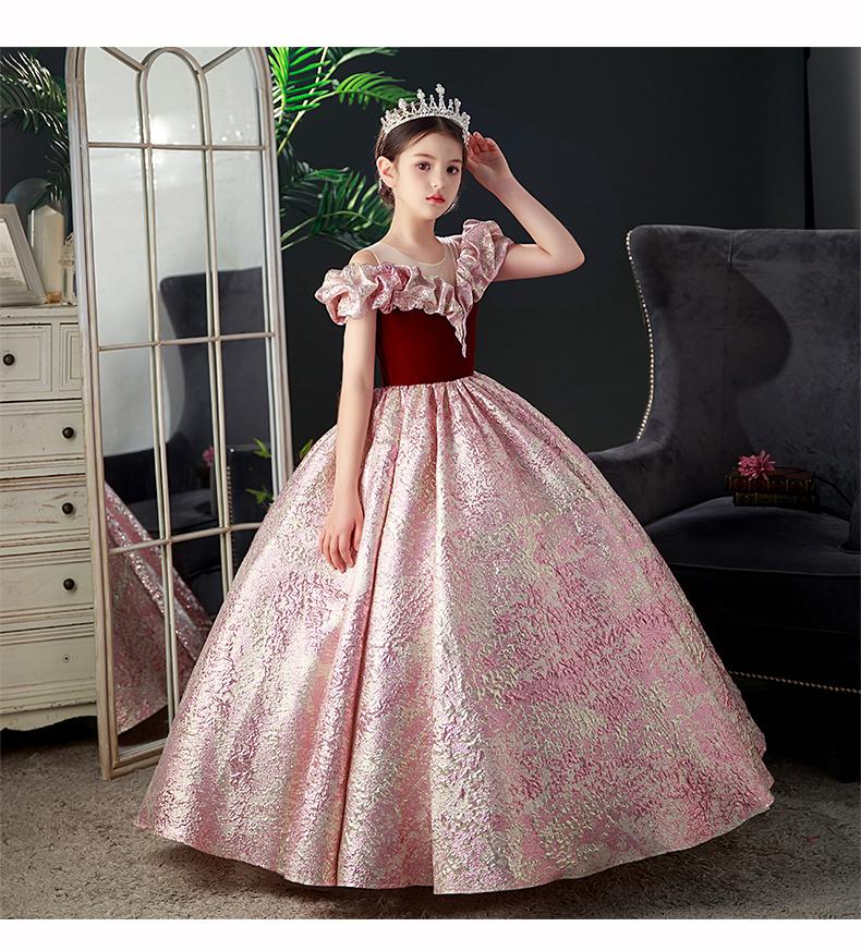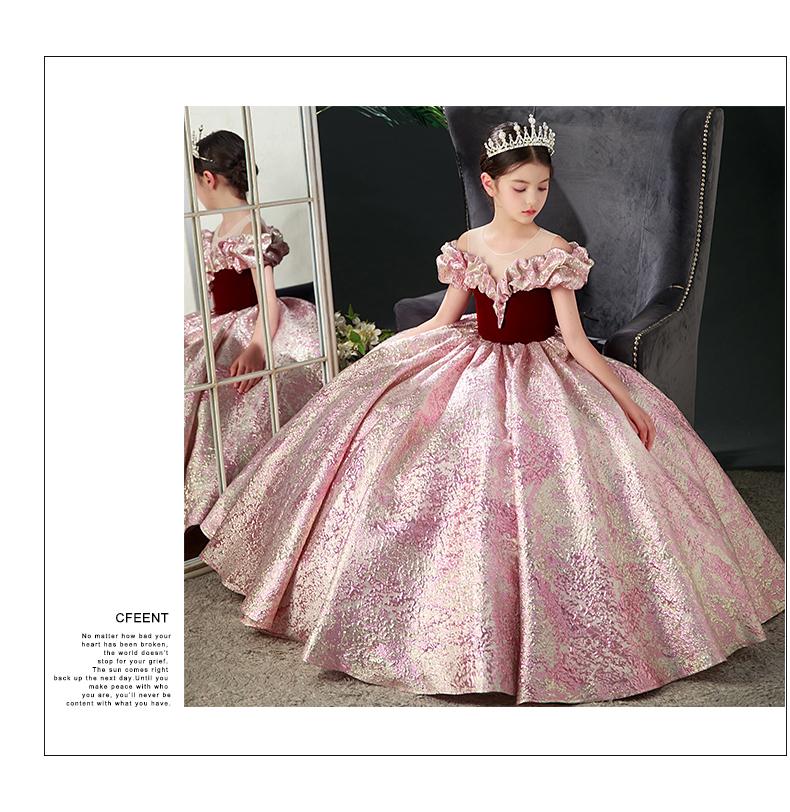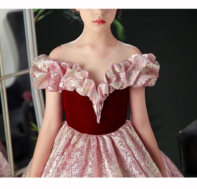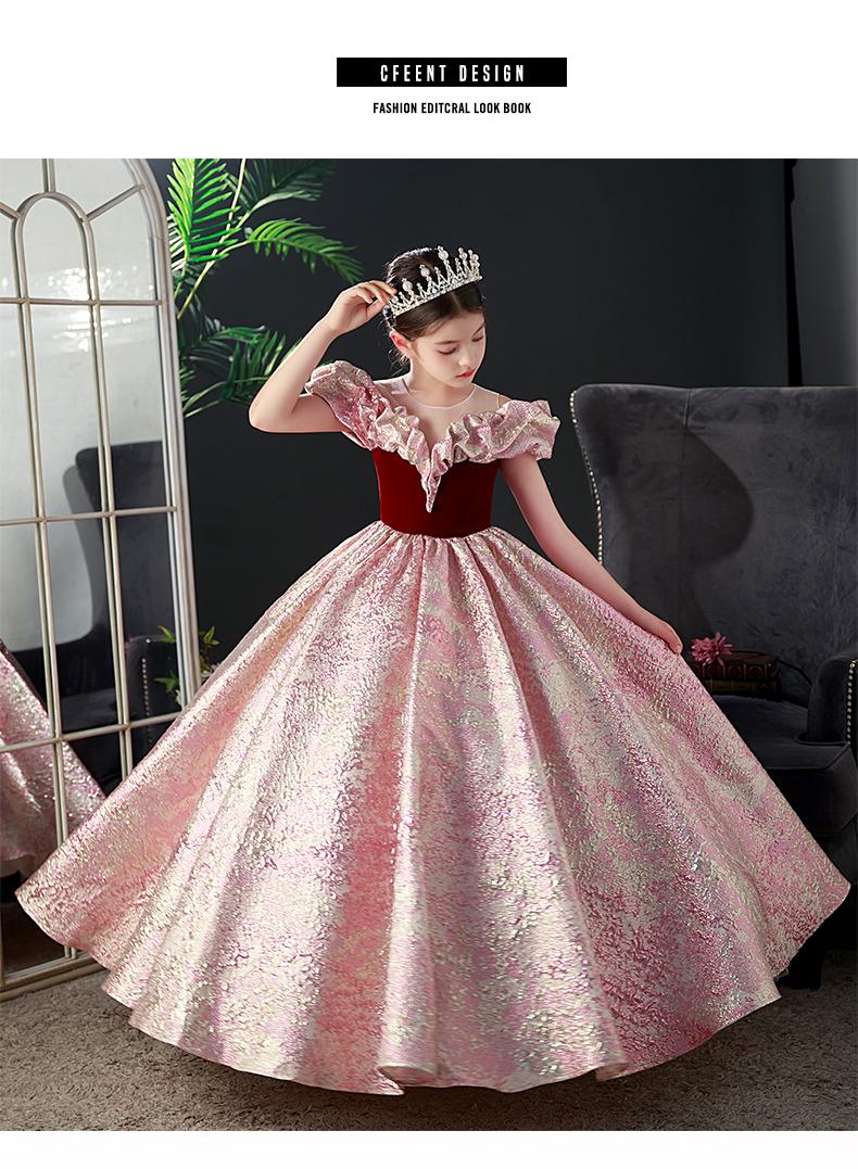 Nuevo vestido rojo de presentadora infantil, vestido de princesa para pasarela, cumpleaños, actuación de piano, vestido para niñas, modelo pequeño