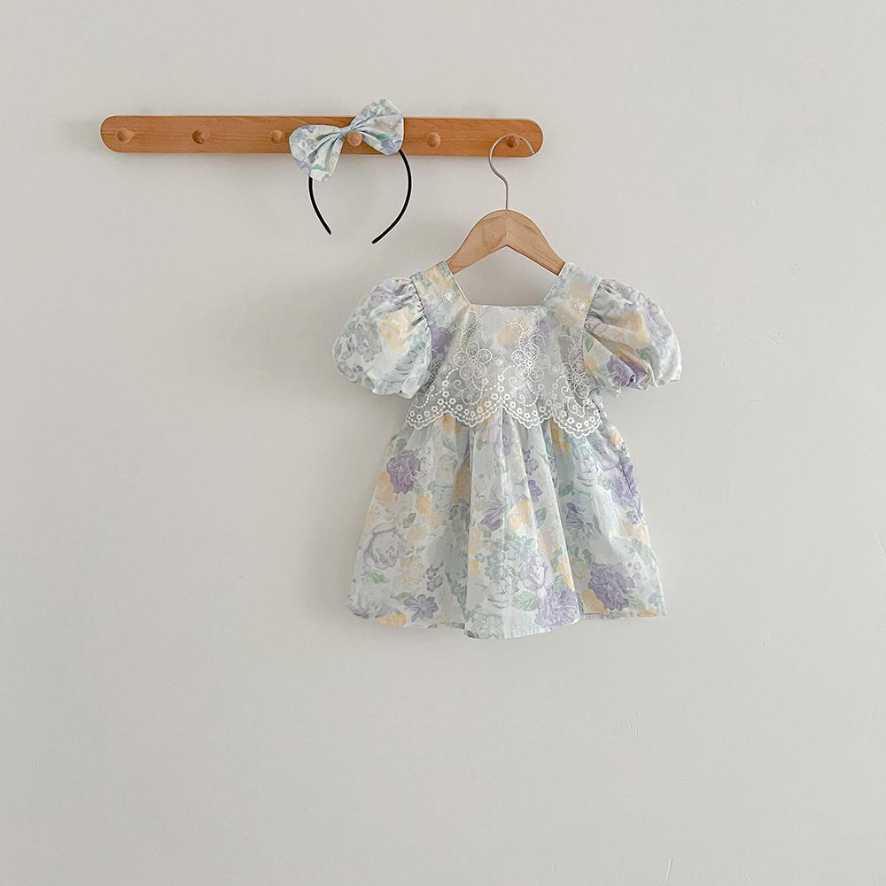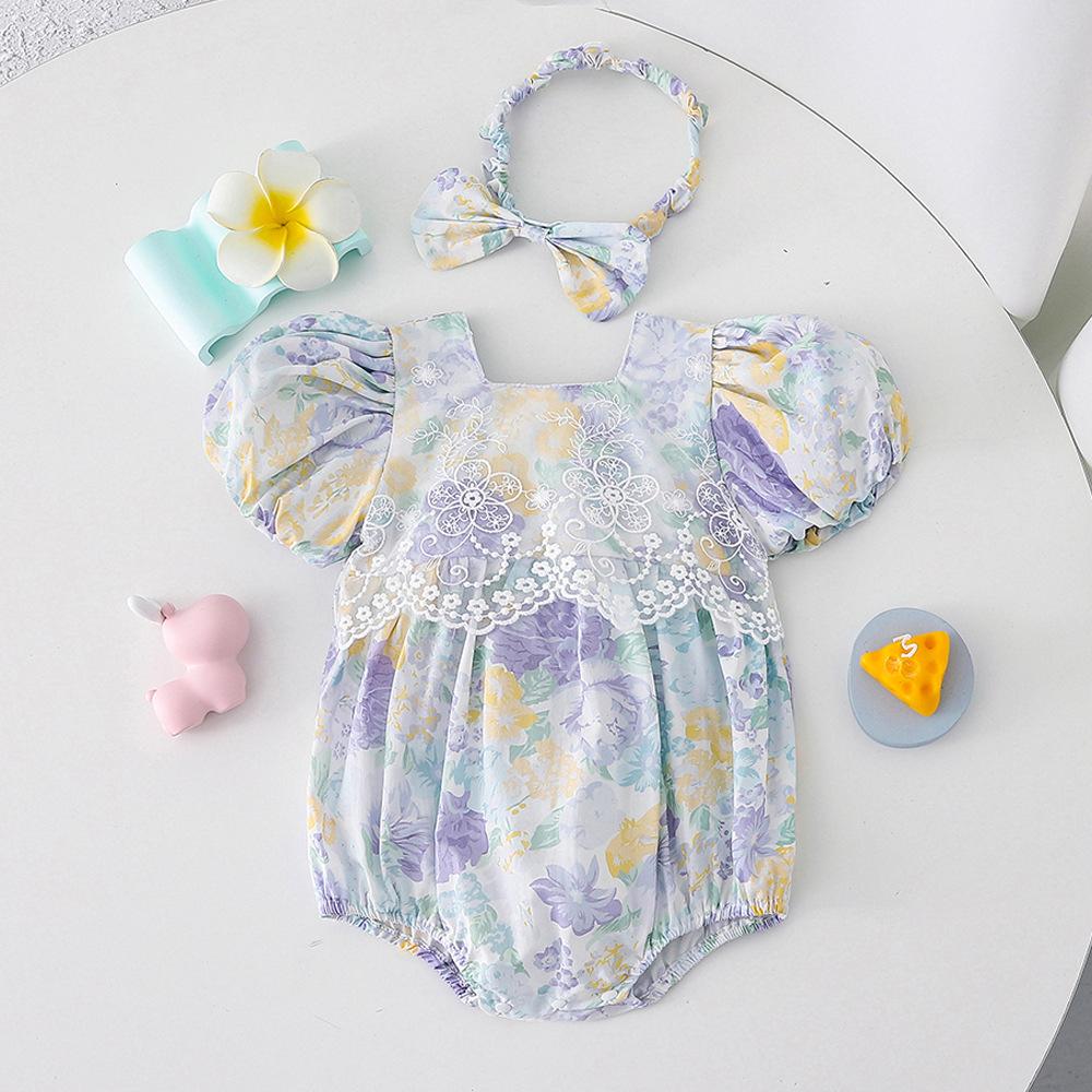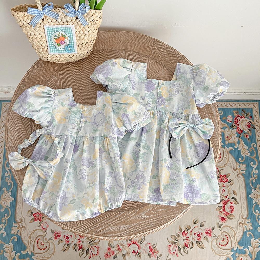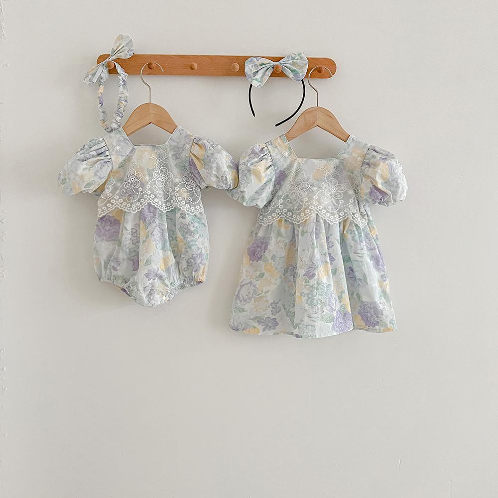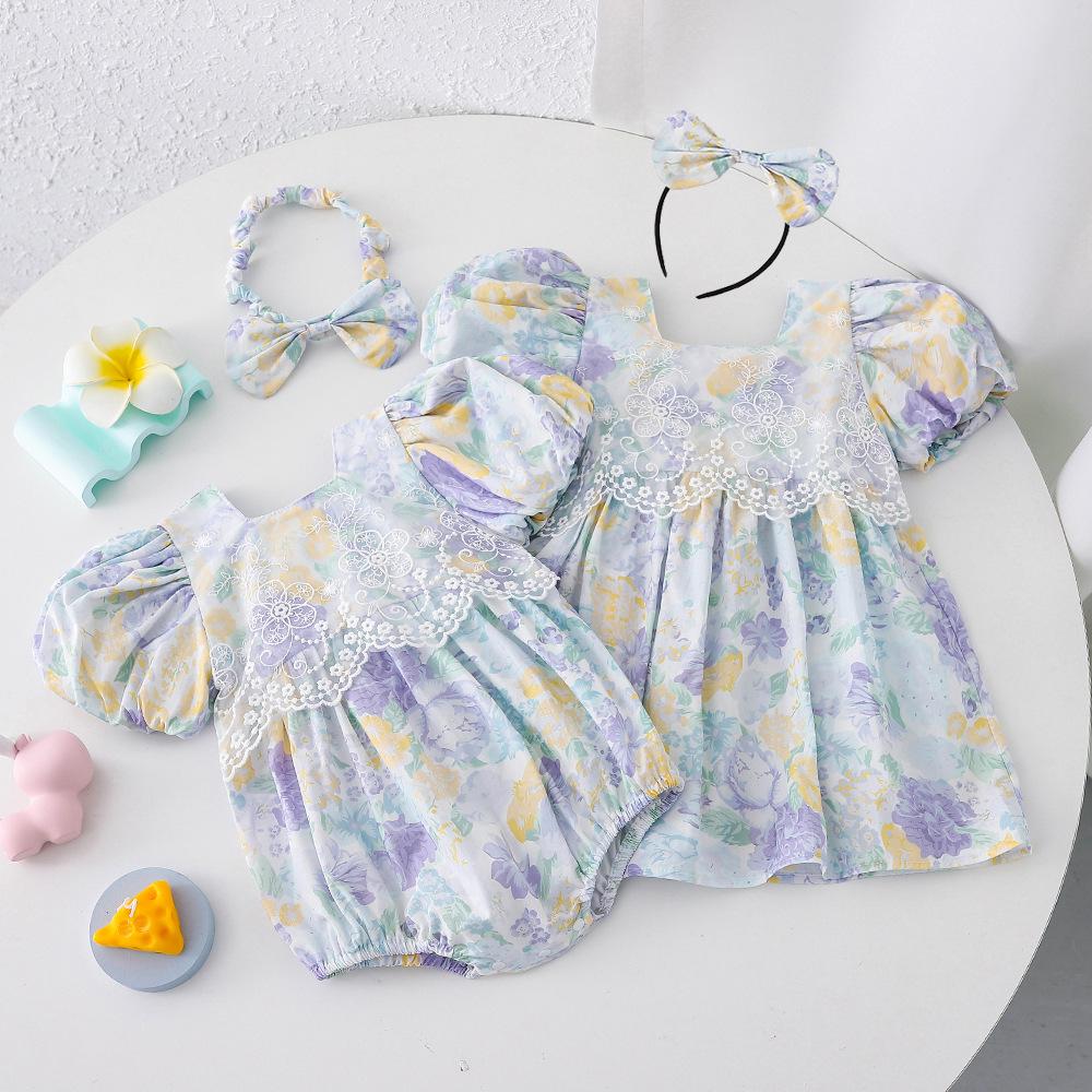 Mameluco de Manga Corta de Nuevo Estilo para Niñas, Talla 25, Vestido de Encaje de Verano para Bebés, Mameluco Triangular para Bebé, Conjunto Moderno para Hermanas