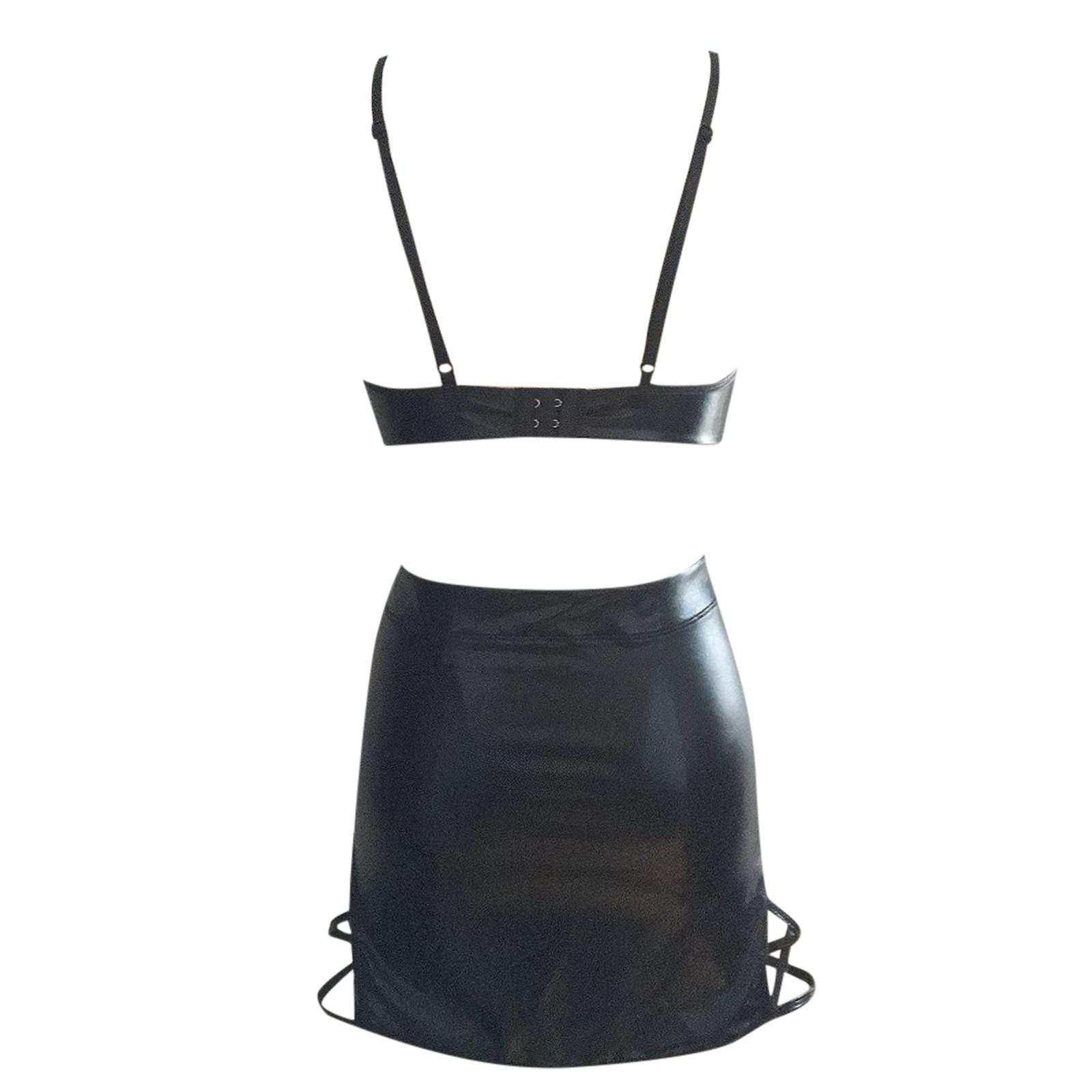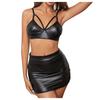 Productos Transfronterizos Nuevo Estilo Europeo y Americano Lencería Sexy Dividida Hueca Camisola de Cuero Sintético Lencería Conjunto de Dos Piezas Venta al por Mayor