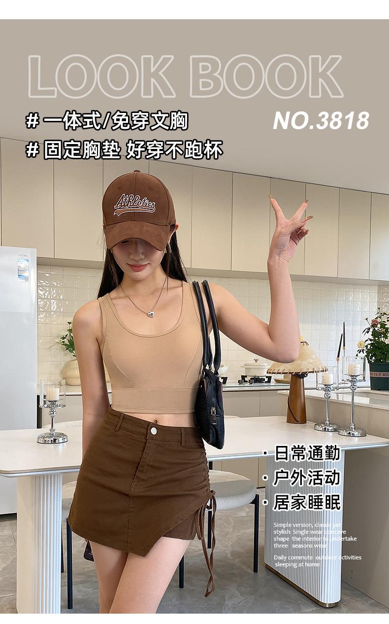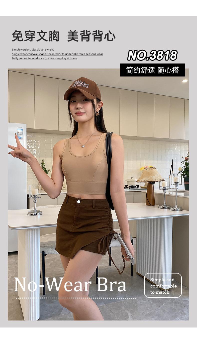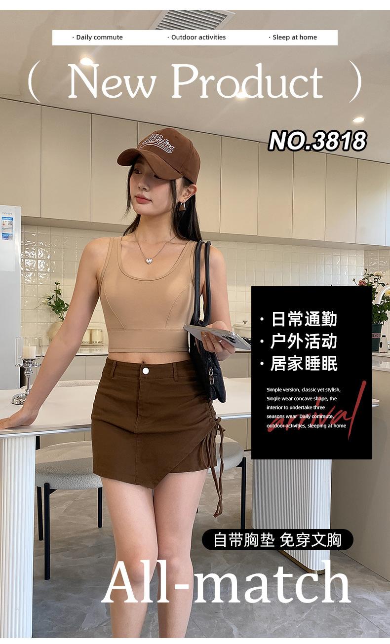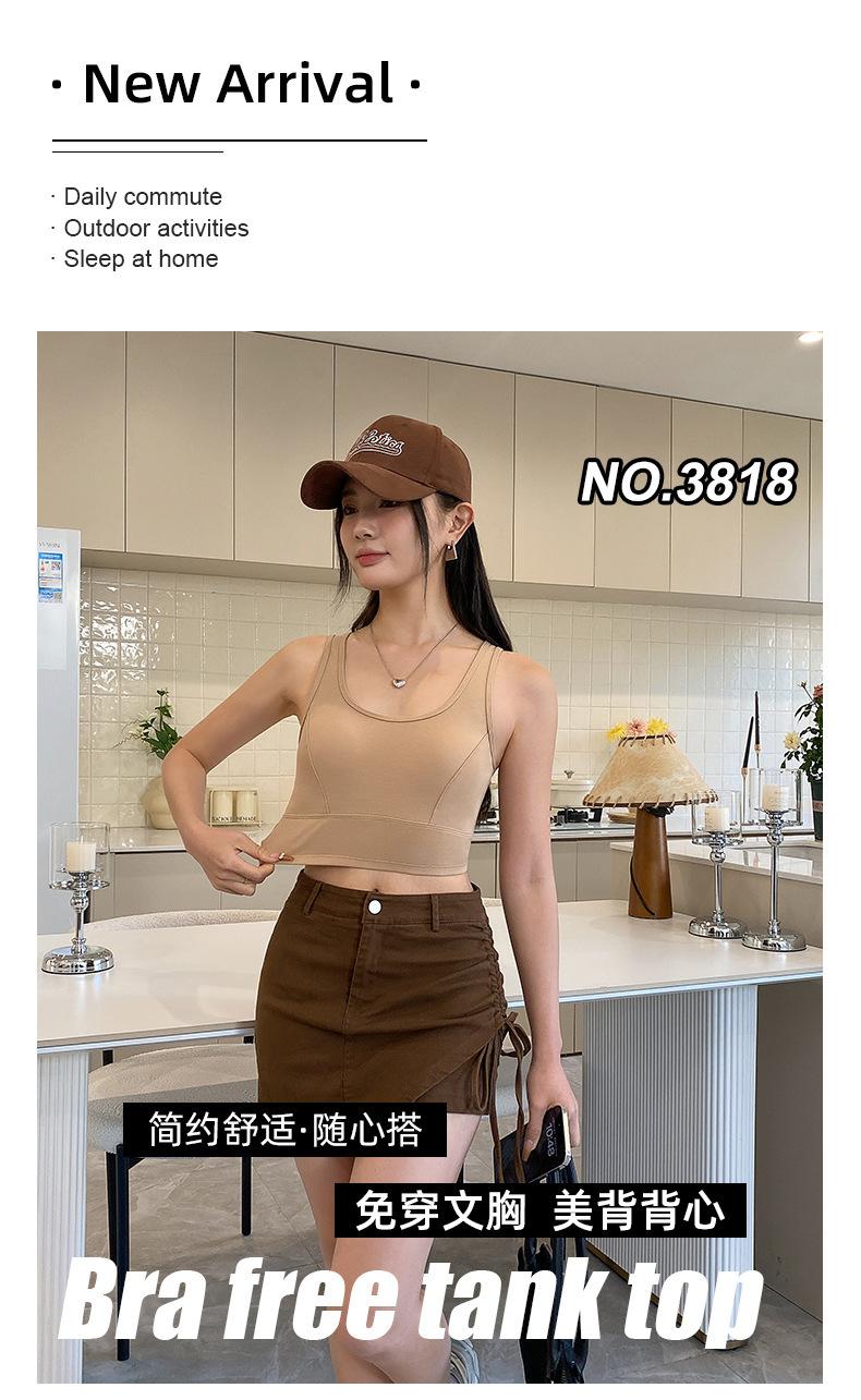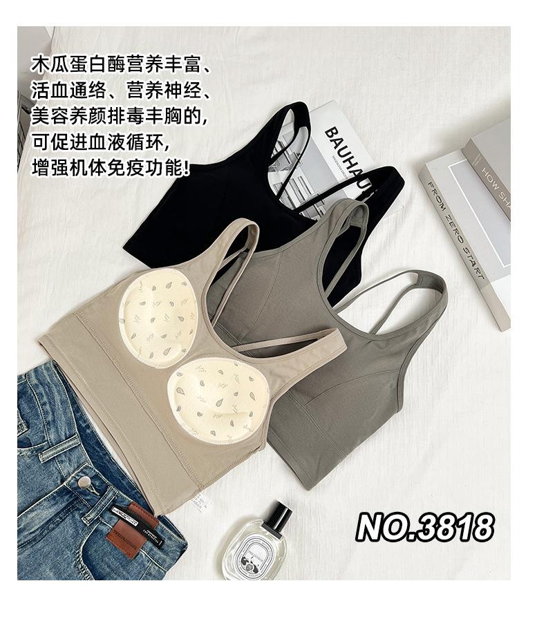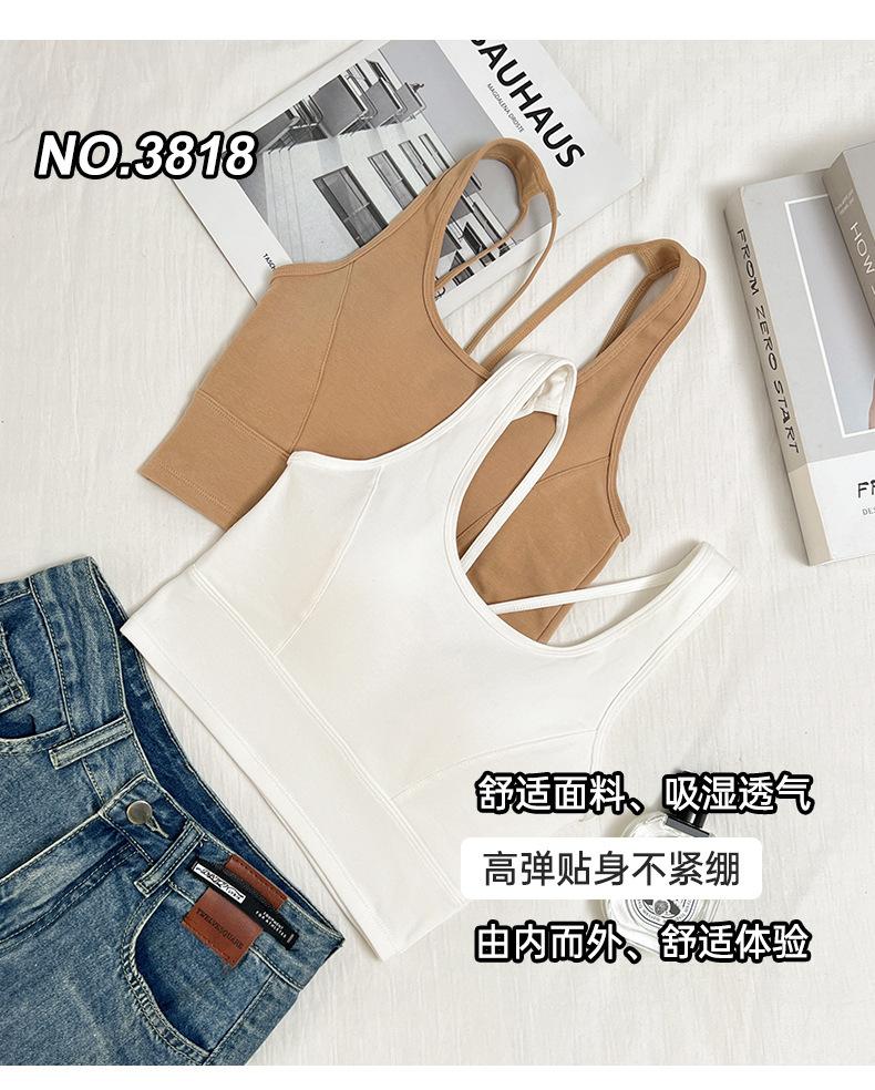 Chaleco de algodón para mujer ropa interior con almohadilla en el pecho top corto sin mangas para mujer verano ombligo descubierto fondo se puede usar afuera deportes pecho envuelto