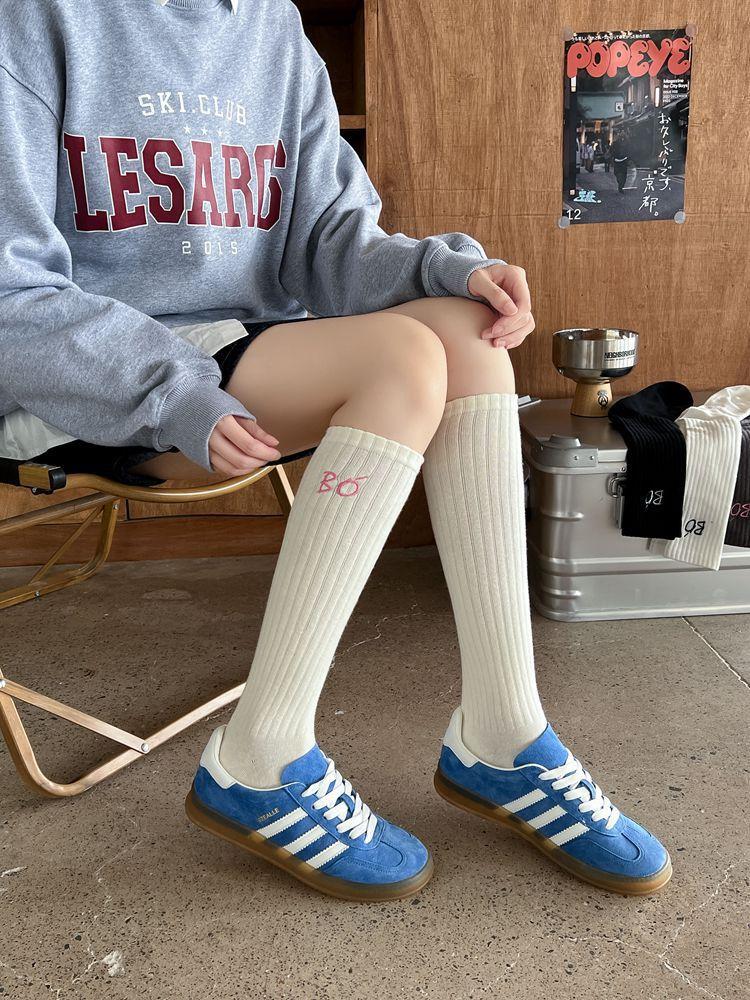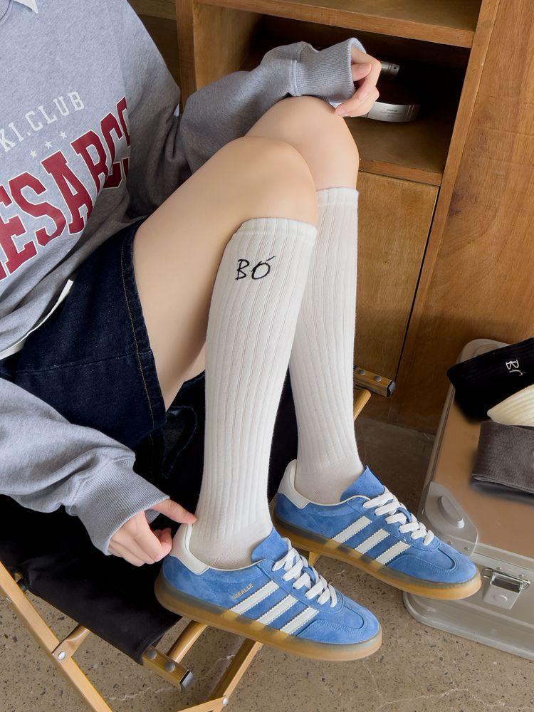 Otoño e invierno 2023 Nuevos calcetines deportivos casuales de alta elasticidad estilo universitario hasta la rodilla para mujer
