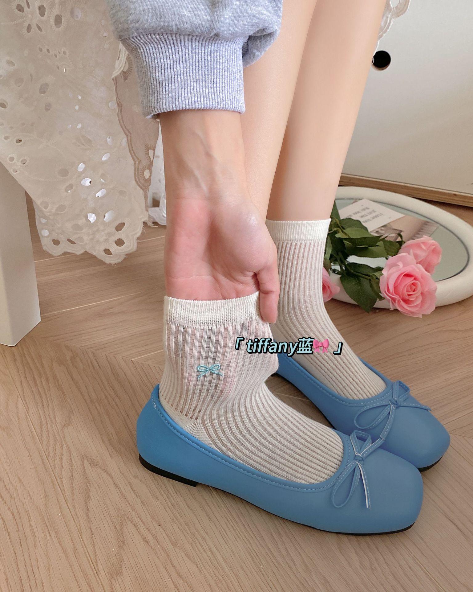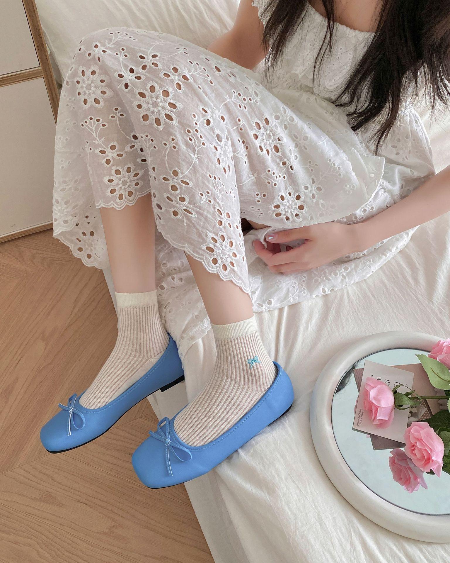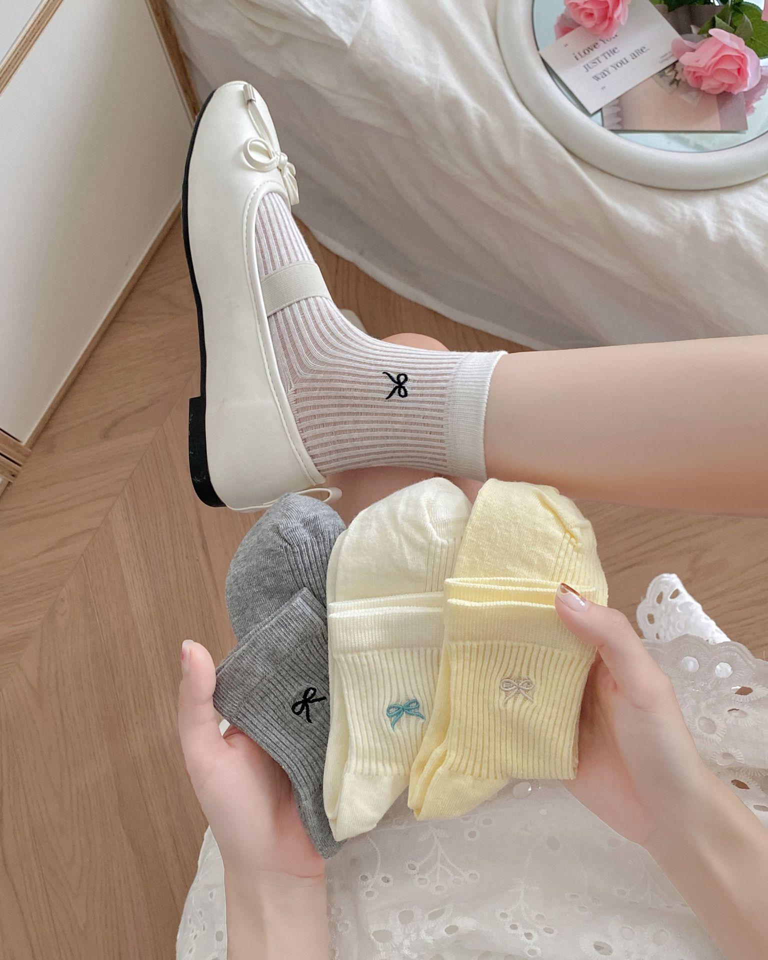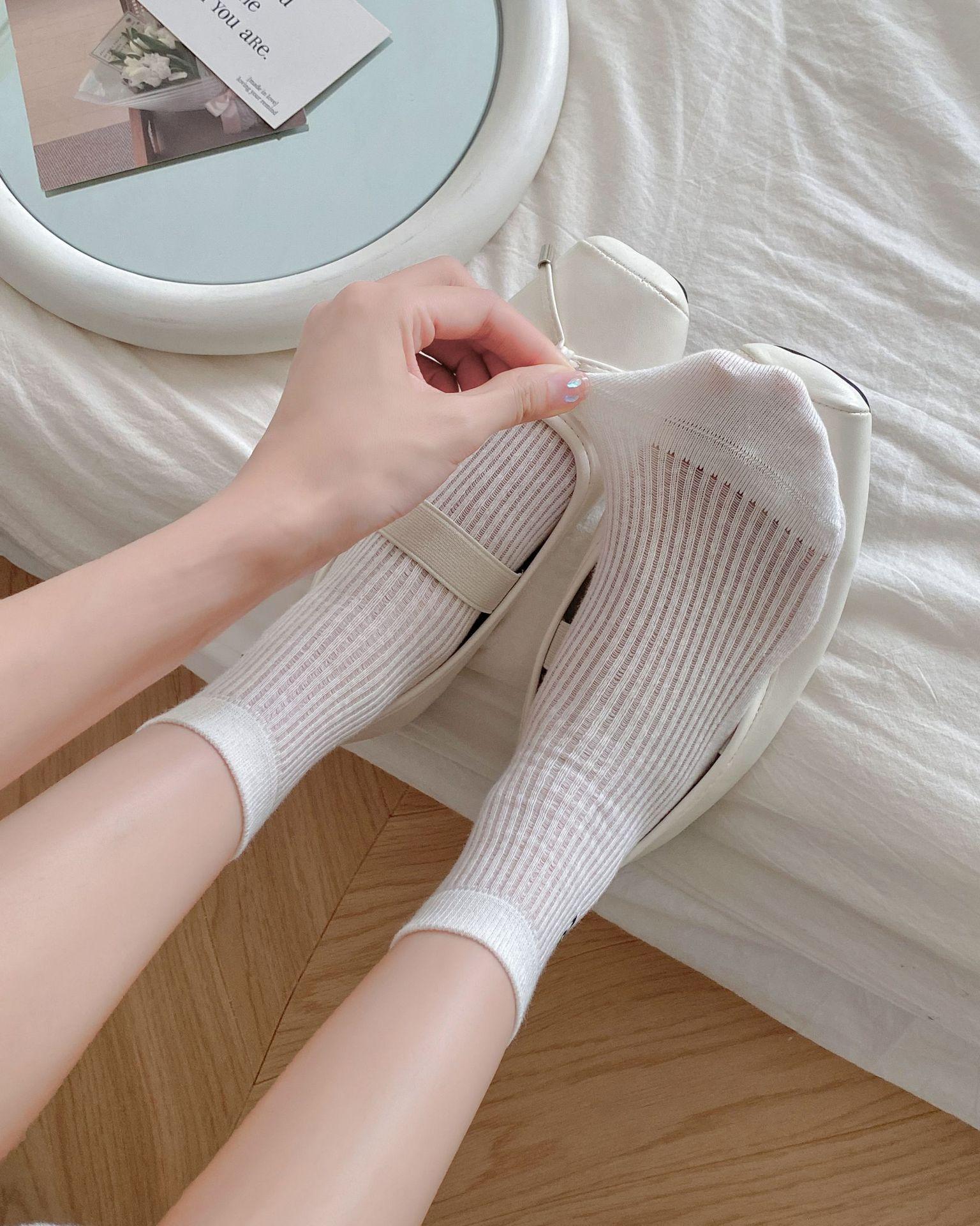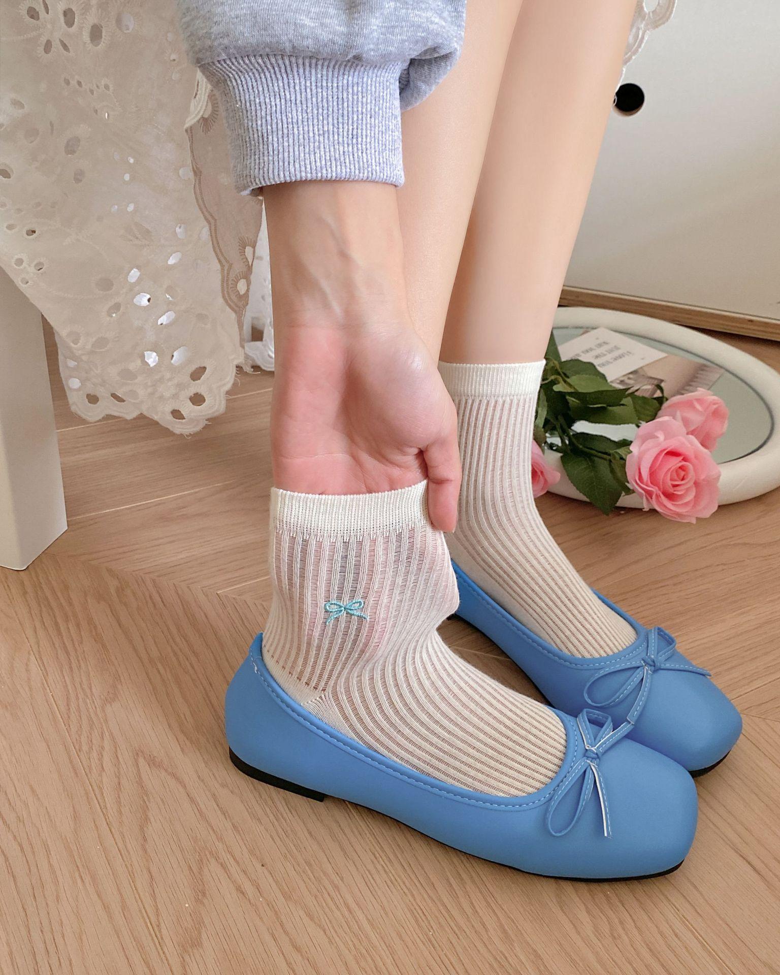 Calcetines de verano para mujer, finos, bordados, con lazo, cortos, de malla, transpirables, estilo coreano, sin hueso, de color liso, hasta la rodilla.