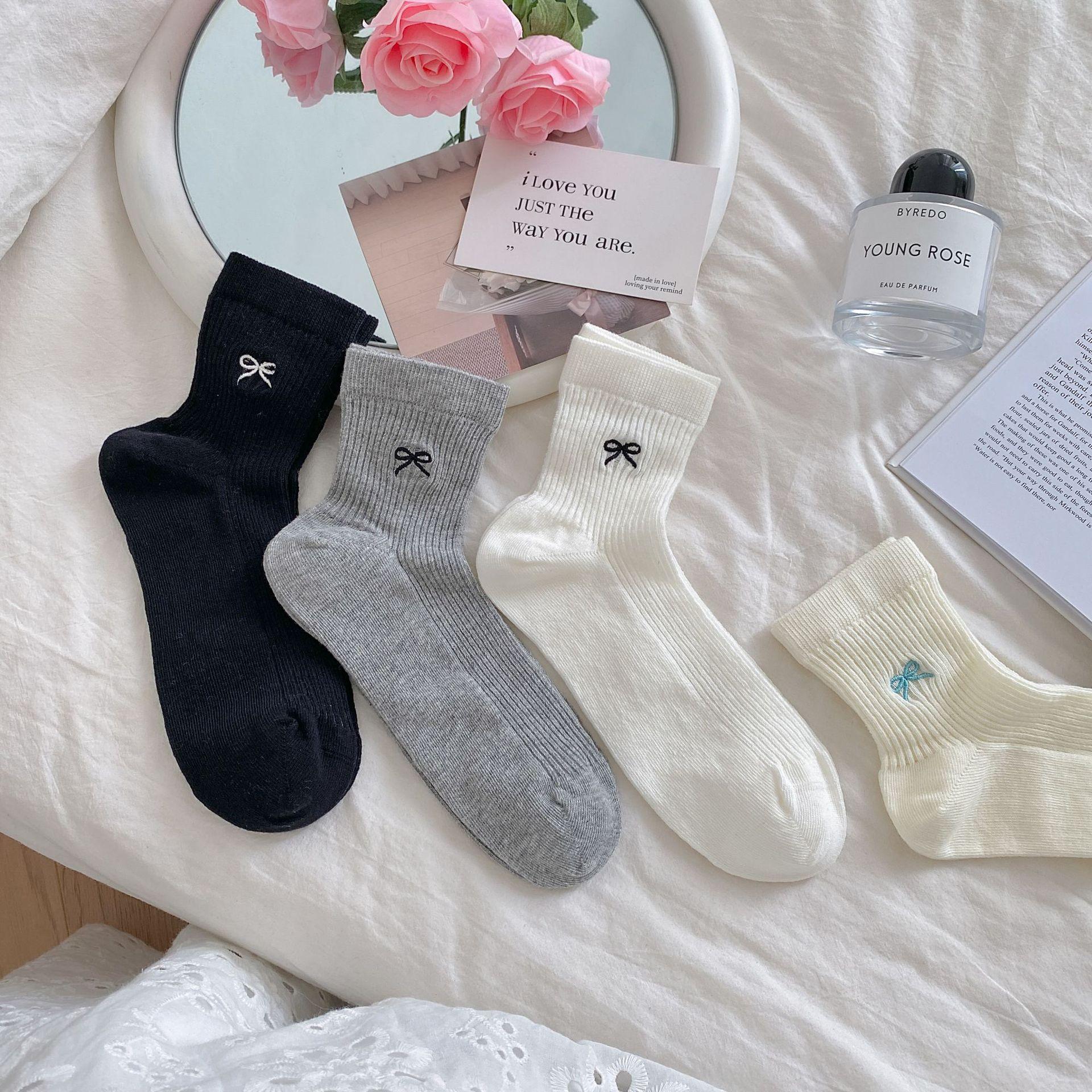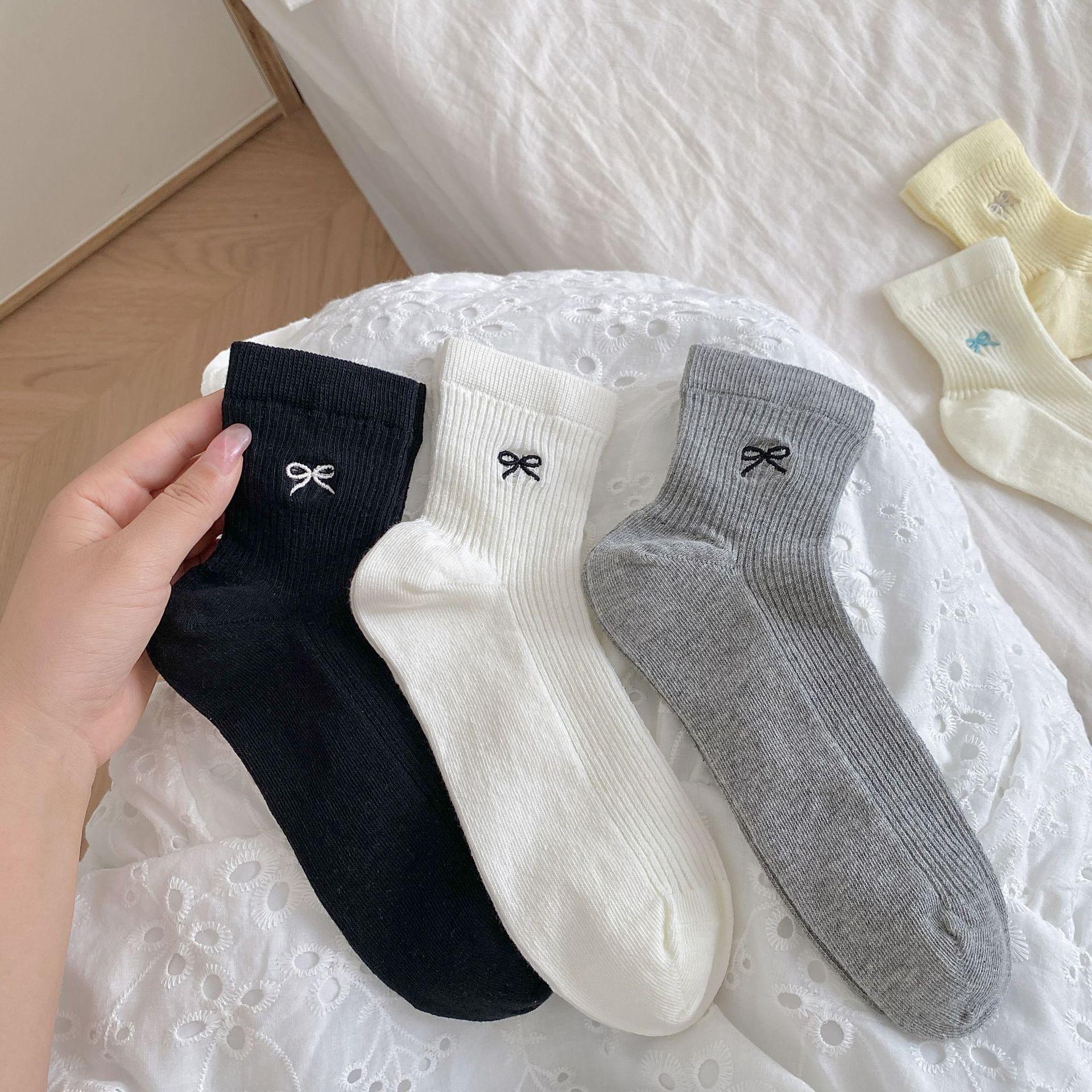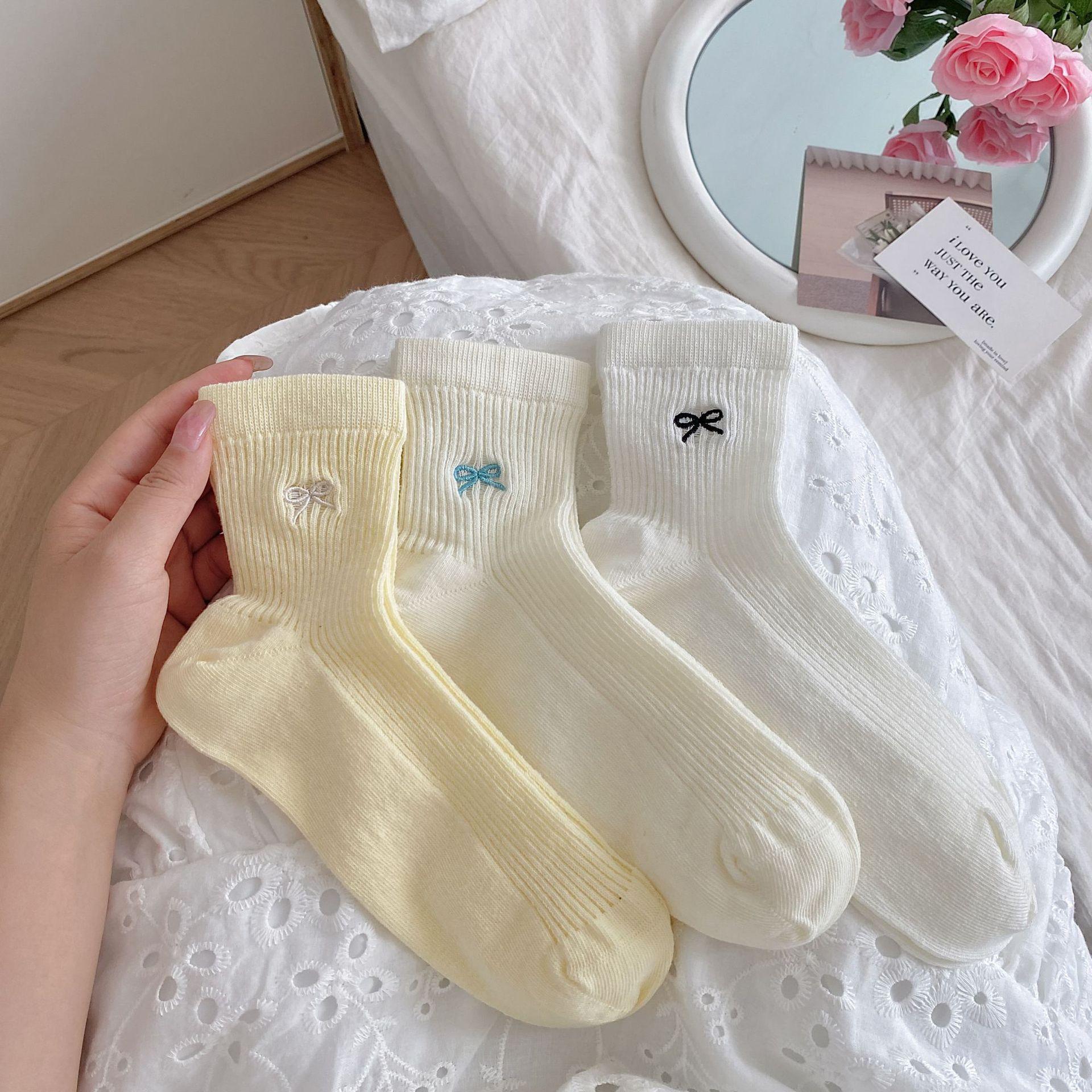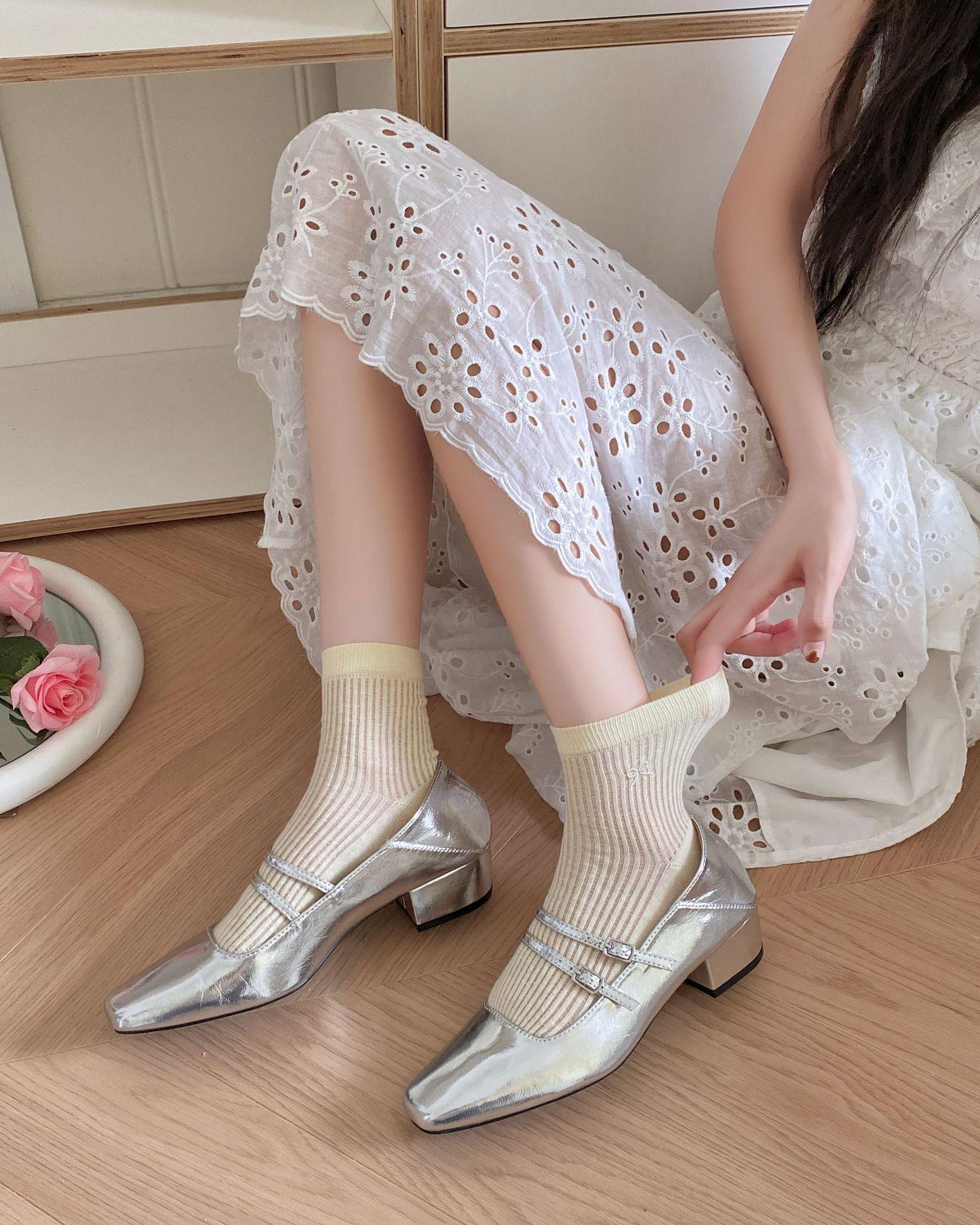 Calcetines de verano para mujer, finos, bordados, con lazo, cortos, de malla, transpirables, estilo coreano, sin hueso, de color liso, hasta la rodilla.