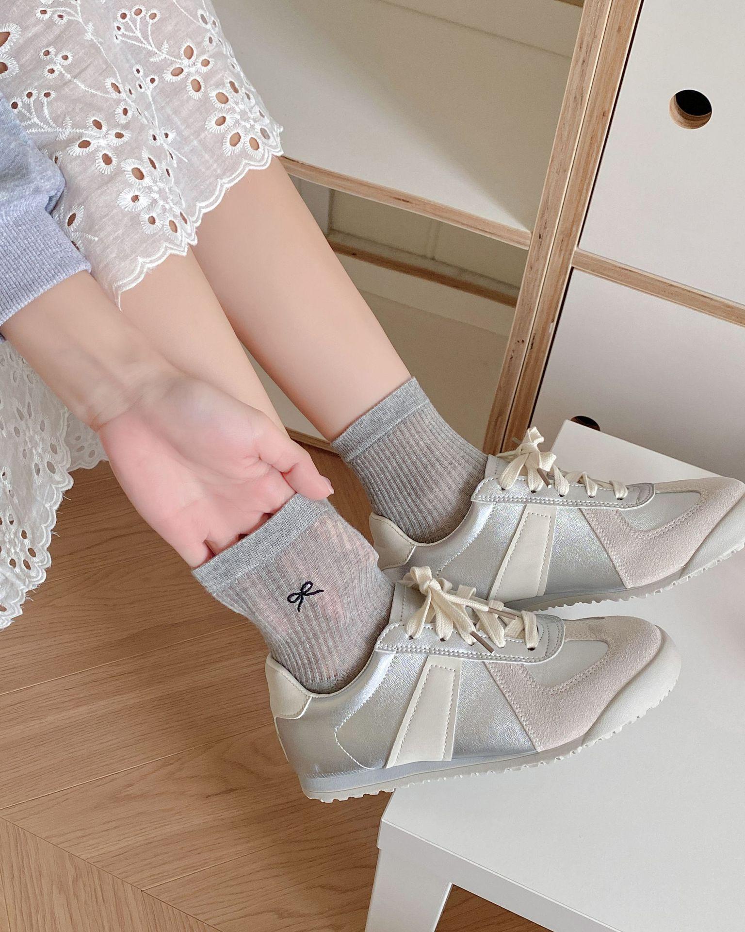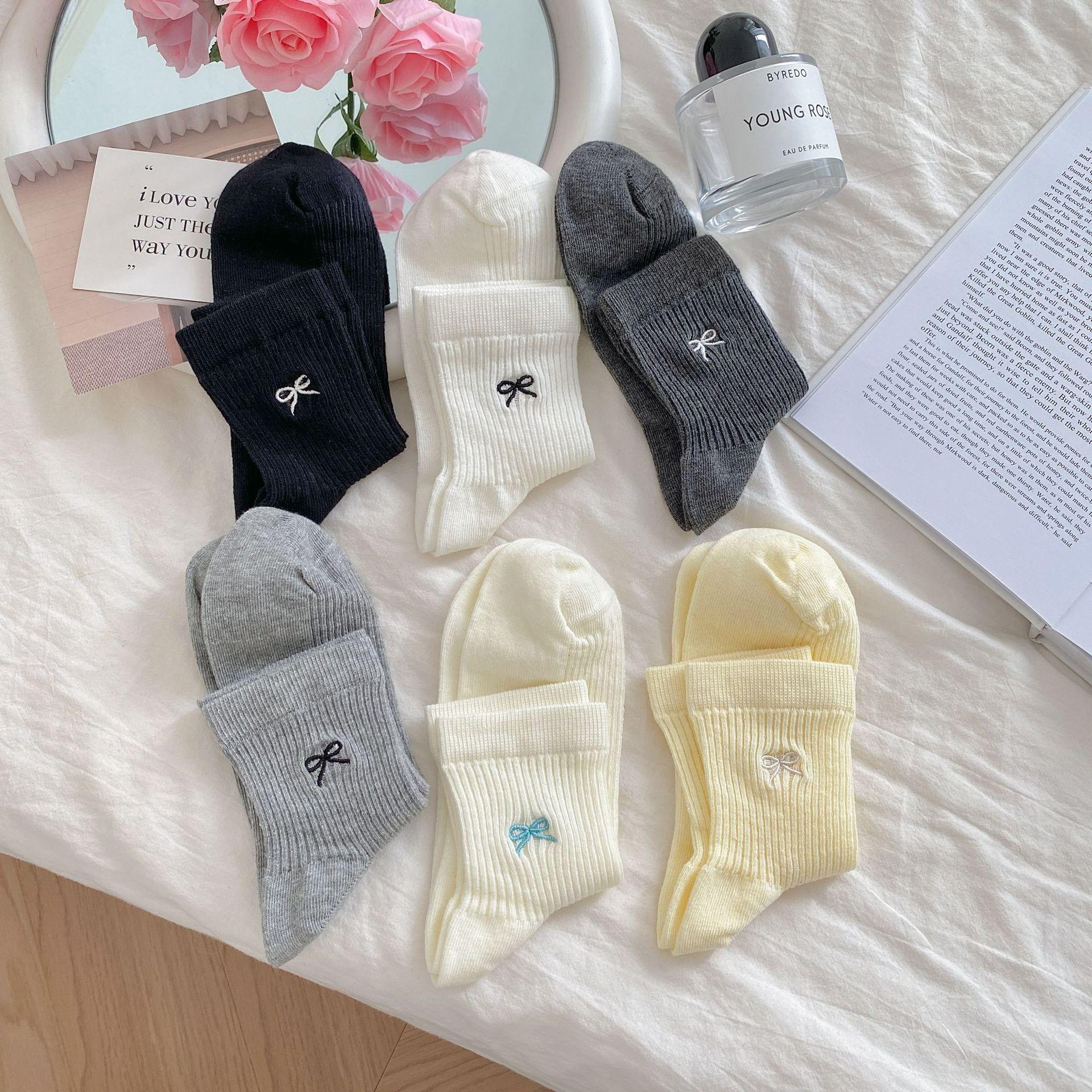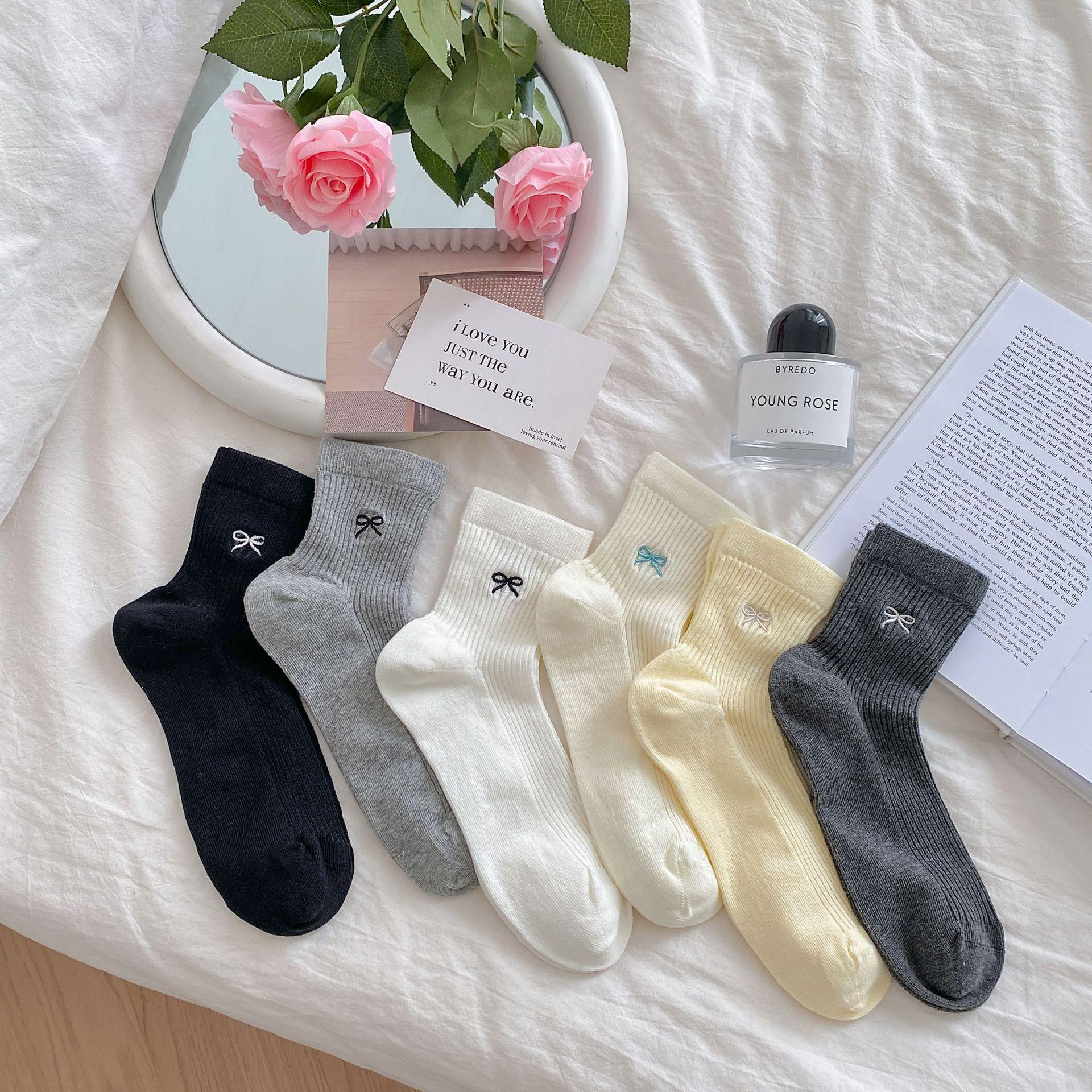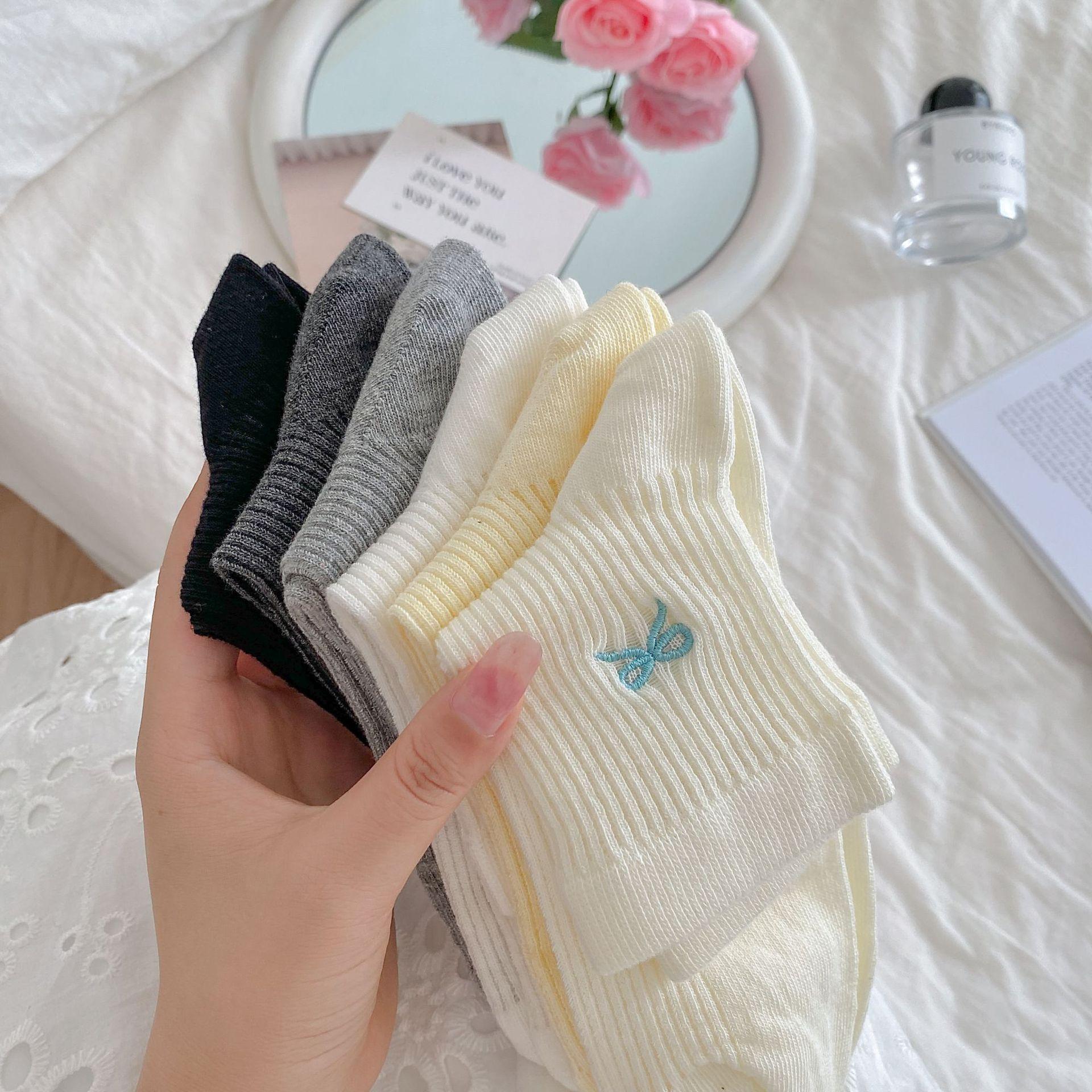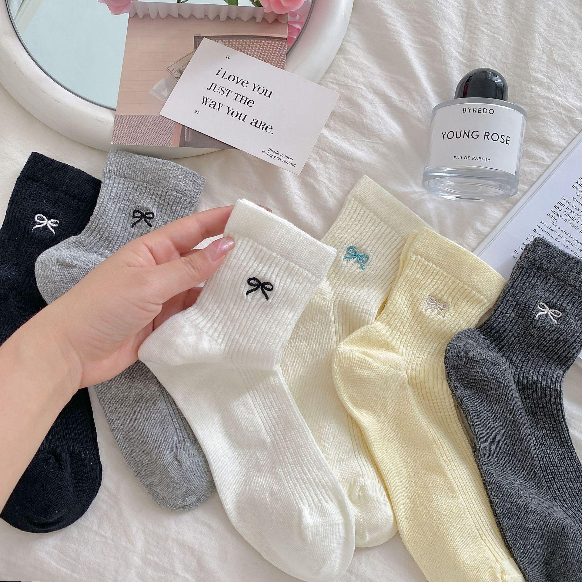 Calcetines de verano para mujer, finos, bordados, con lazo, cortos, de malla, transpirables, estilo coreano, sin hueso, de color liso, hasta la rodilla.