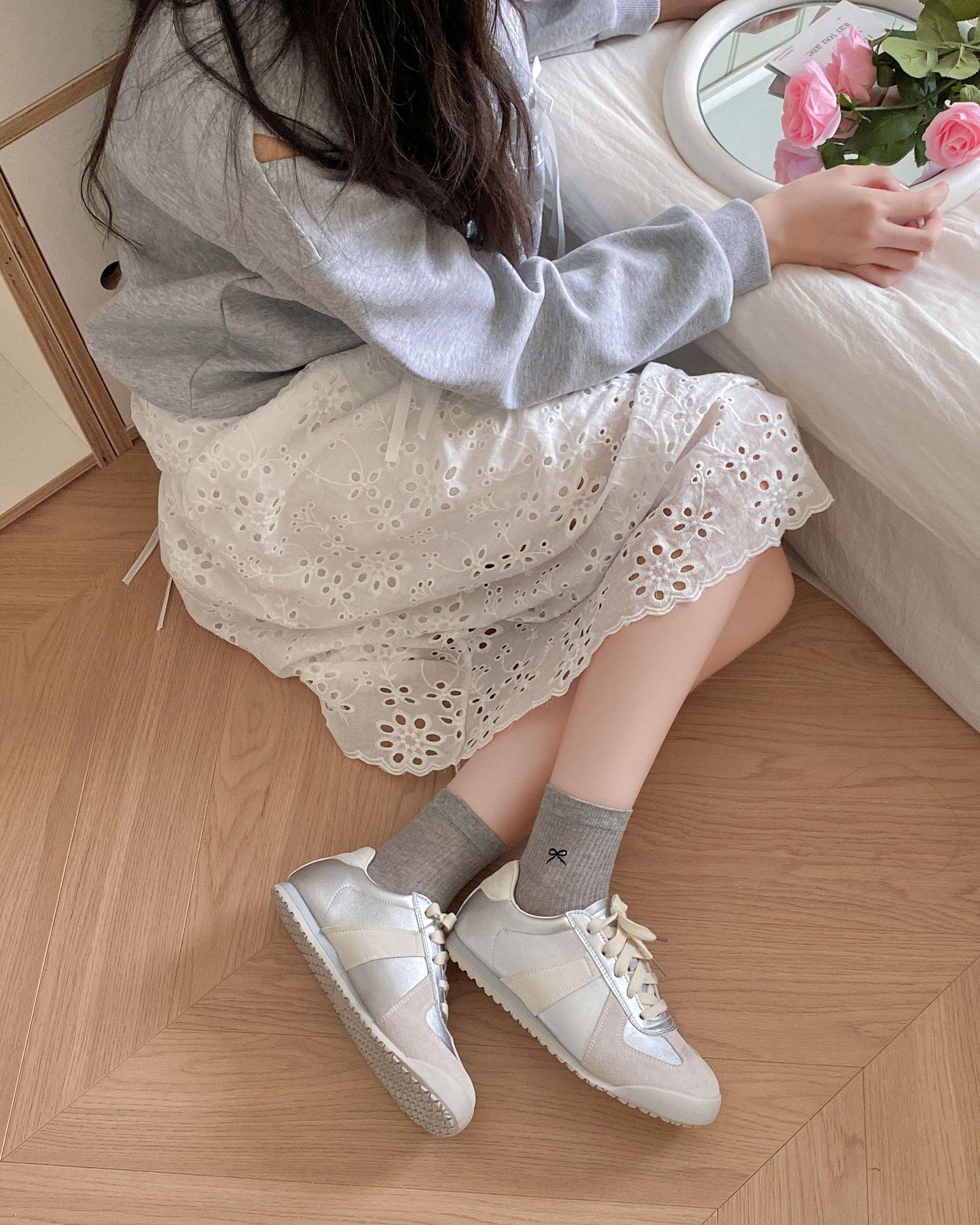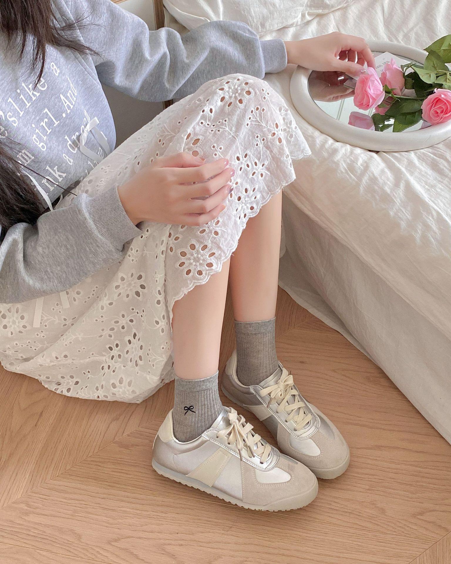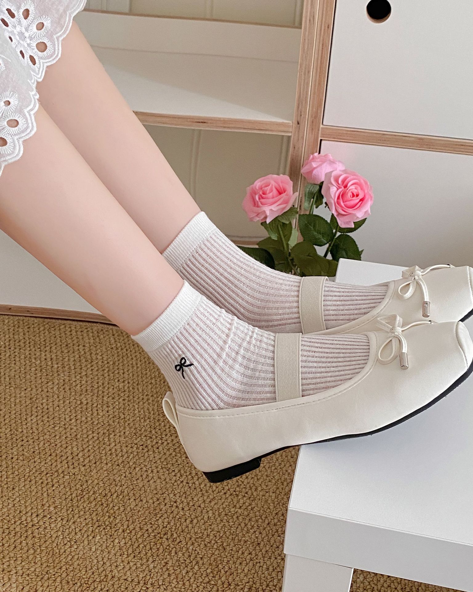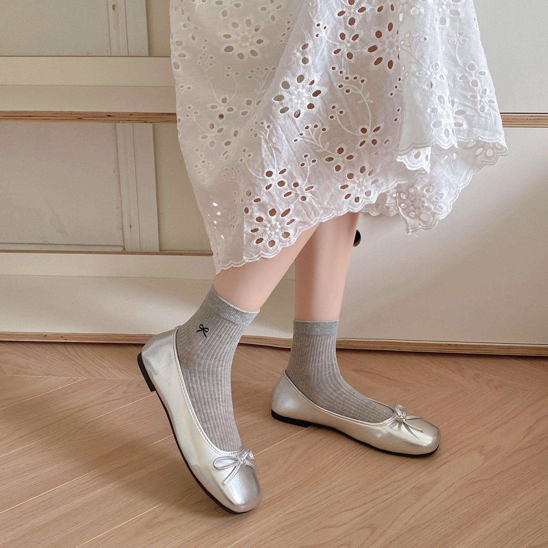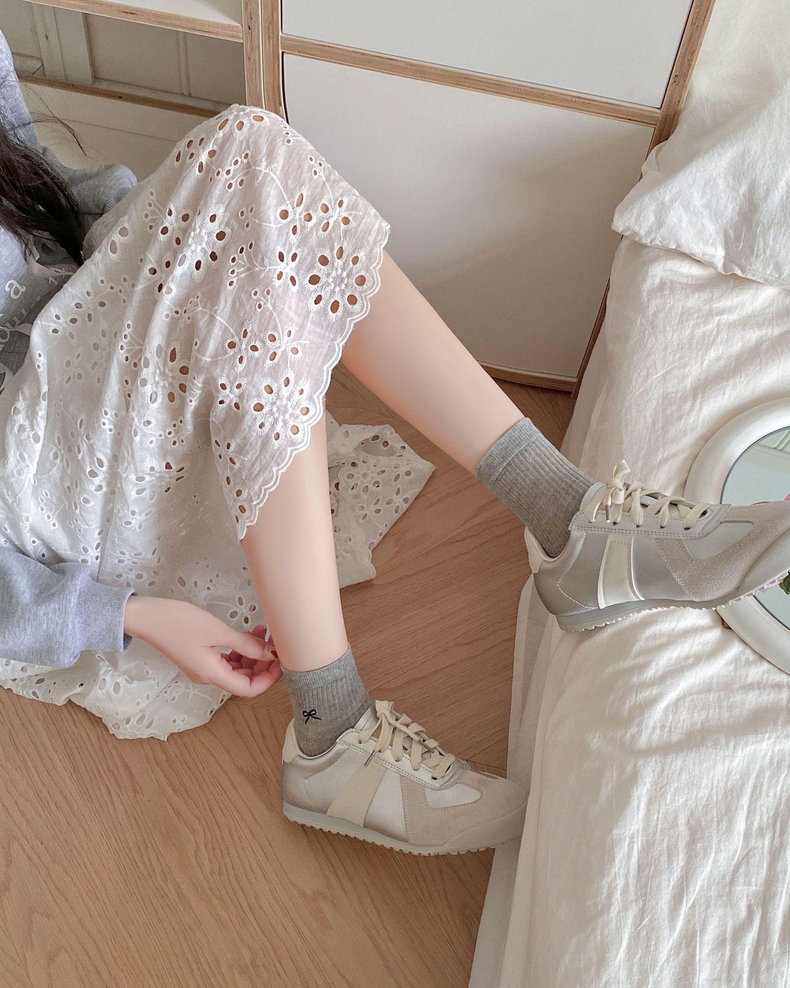 Calcetines de verano para mujer, finos, bordados, con lazo, cortos, de malla, transpirables, estilo coreano, sin hueso, de color liso, hasta la rodilla.