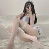 Ropa interior sexy de malla transparente con encaje, medias sexys de talla grande por encima de la rodilla, medias hasta el muslo para chica Lolita