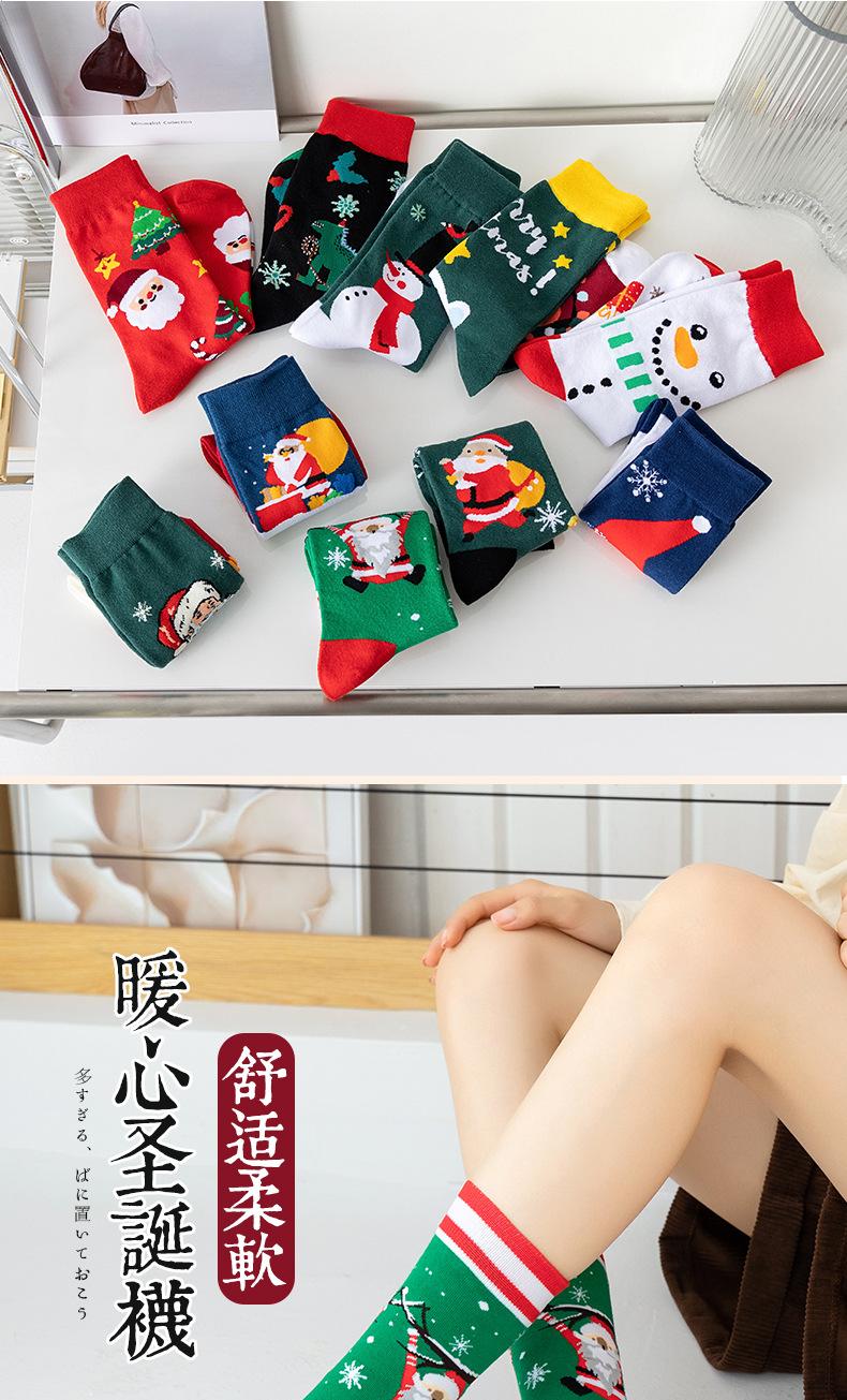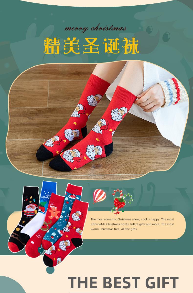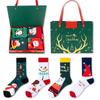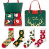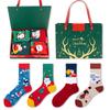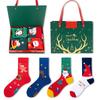 Set de Caja de Regalo de 4 Pares de Calcetines Navideños Transfronterizos Europeos y Americanos Calcetines de Algodón de Dibujos Animados de Papá Noel y Muñeco de Nieve Venta al por Mayor de Calcetines Navideños