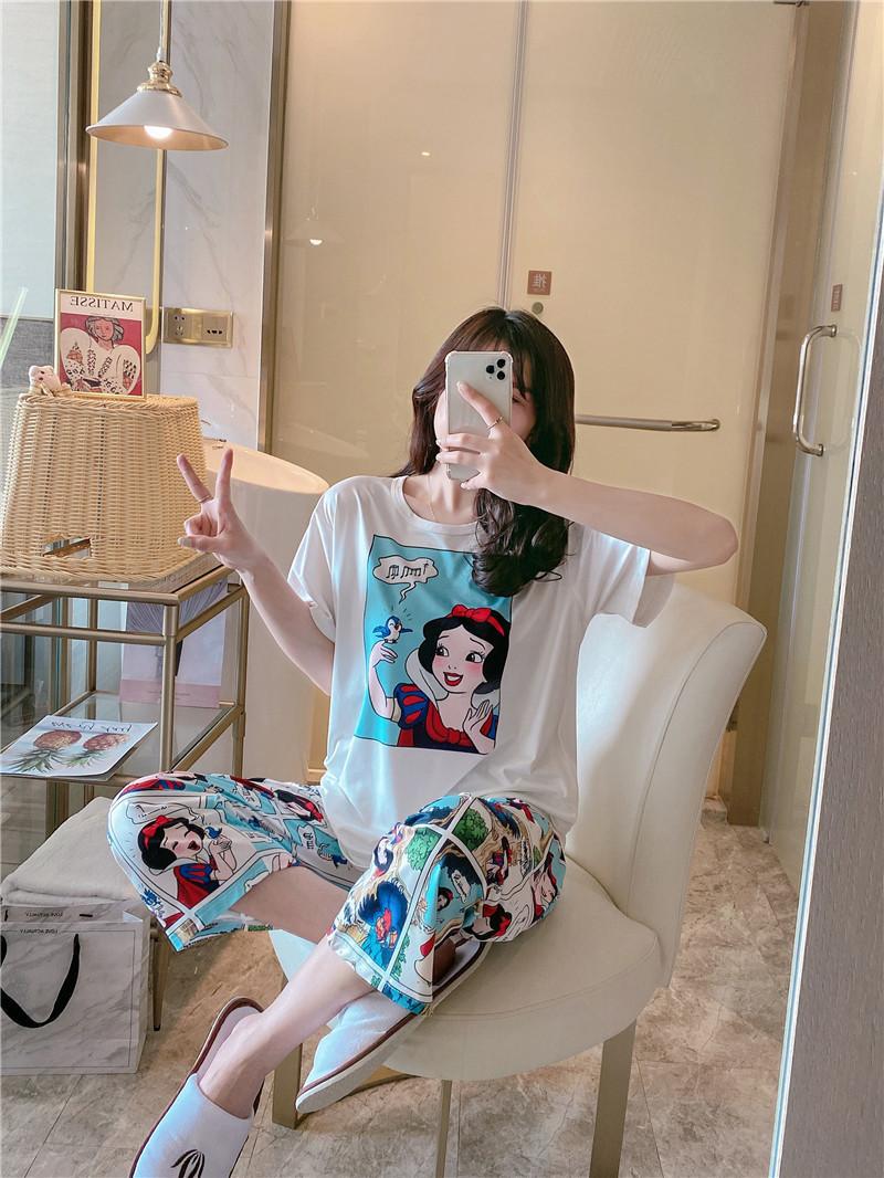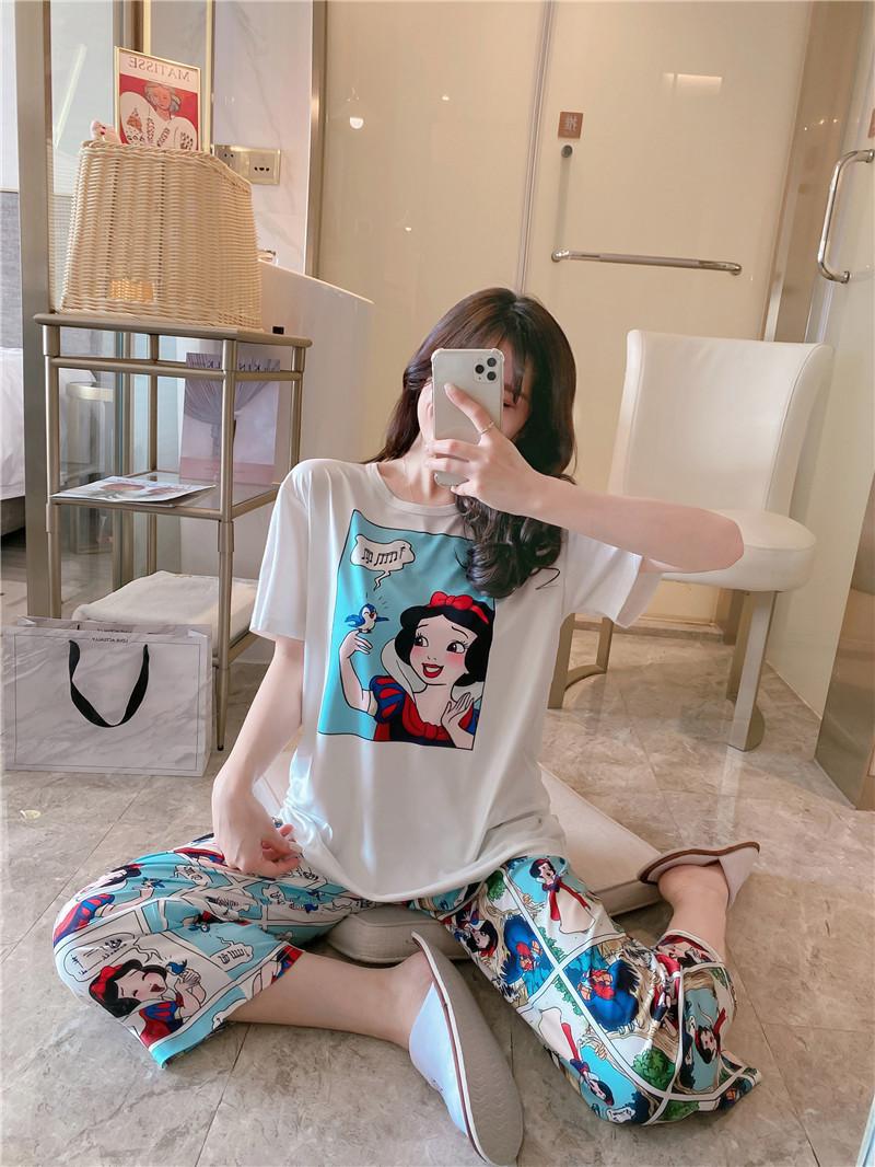 Pijamas de dibujos animados para mujer Primavera y Verano Ciber Populares Pantalones de manga corta 2025 Nuevo Traje casual de dos piezas para el hogar