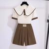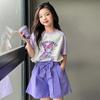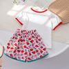 Traje floral fresco de verano para niñas, estilo coreano, elegante camiseta de manga corta, pantalones cortos de moda, traje de dos piezas para bebés.