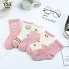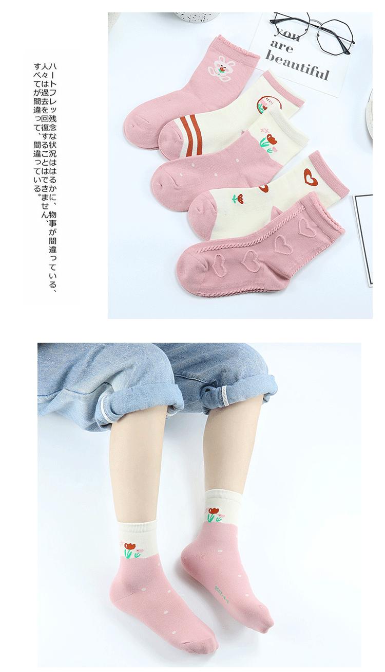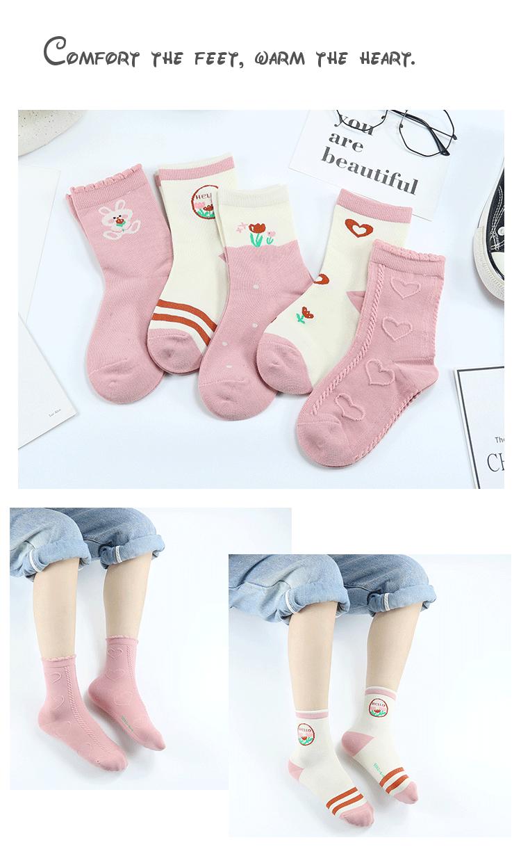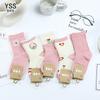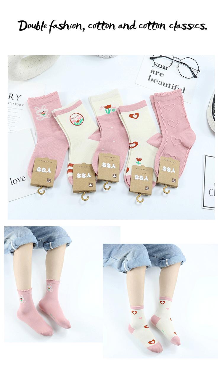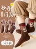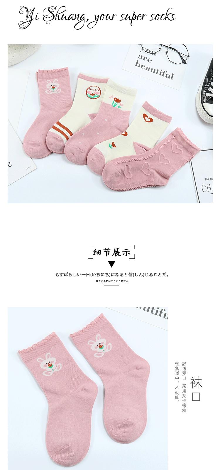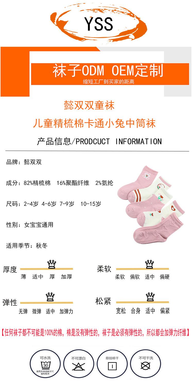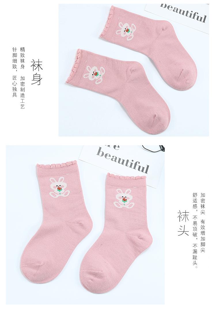 Calcetines dobles para niños, otoño e invierno, nuevos calcetines gruesos de media pantorrilla con dibujos de conejos, de algodón peinado, estilo coreano, calcetines para niñas y estudiantes.