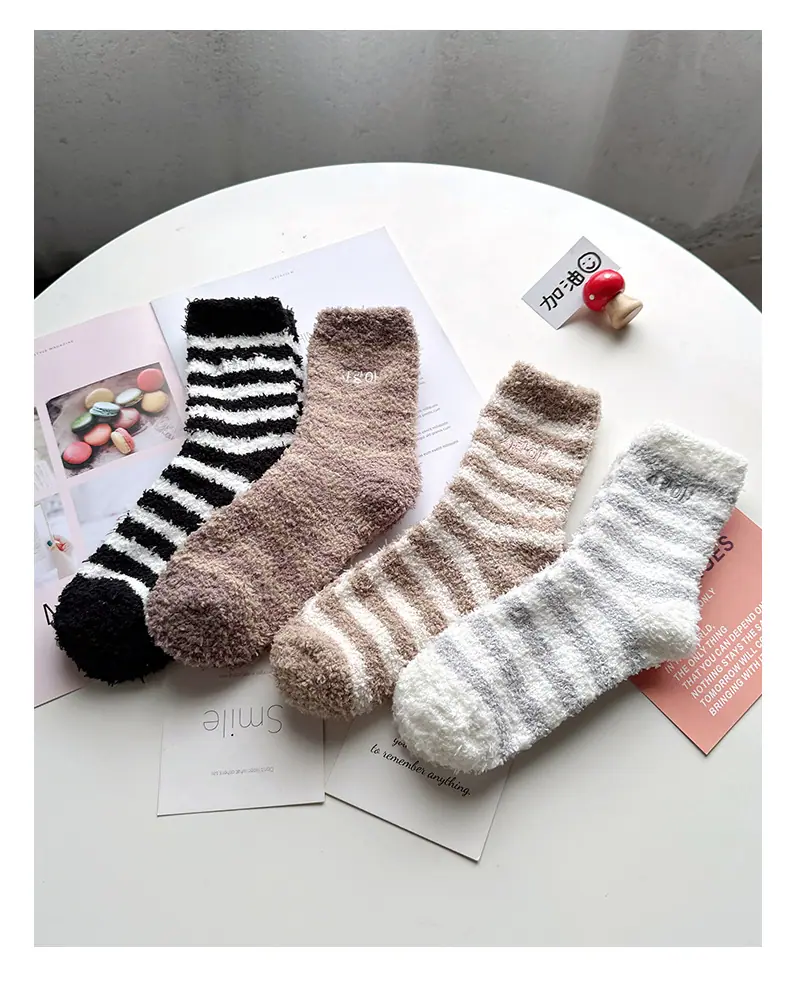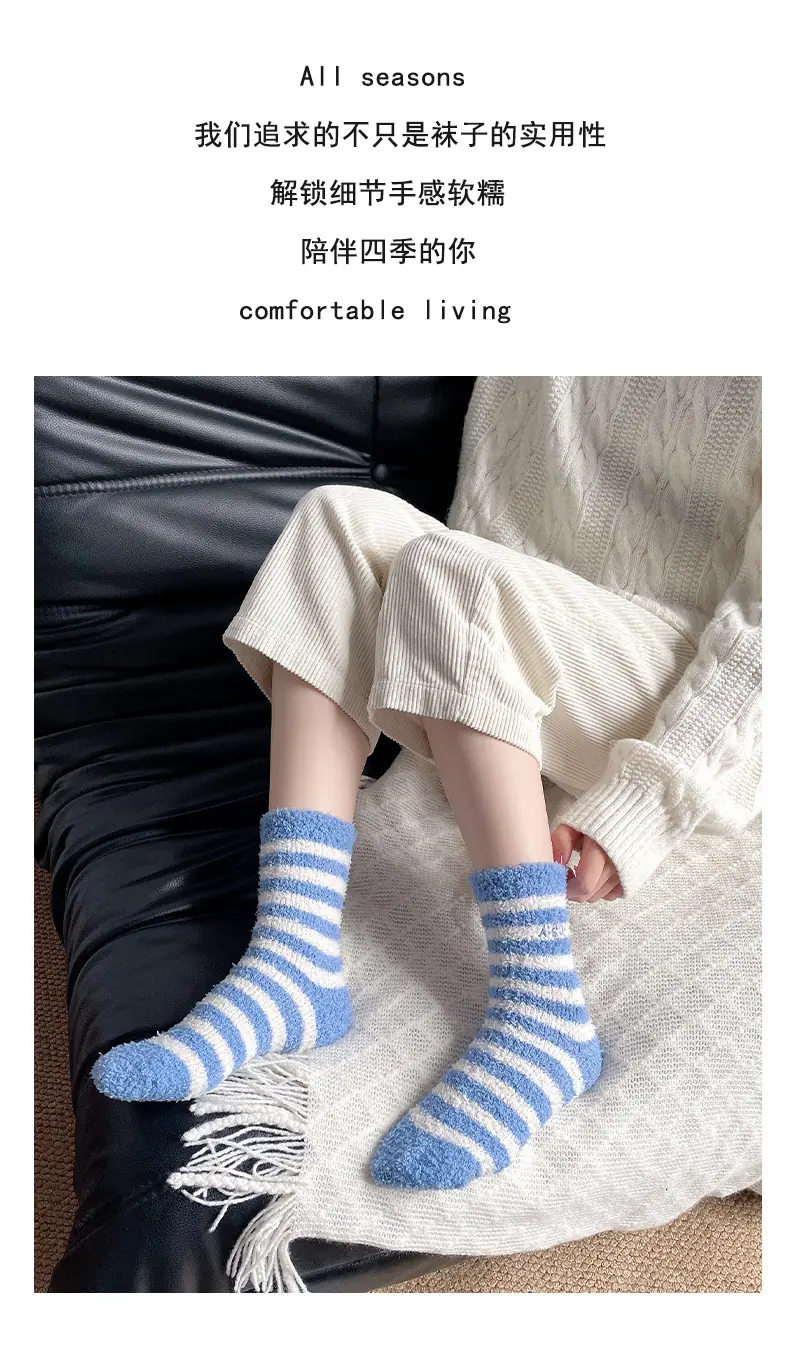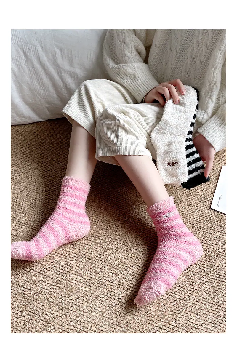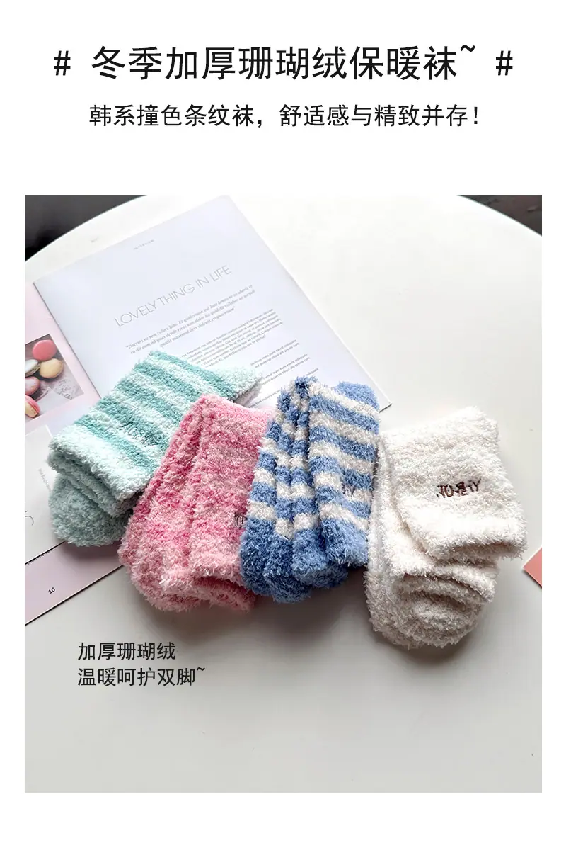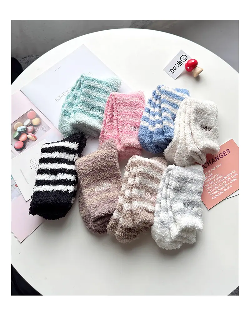 Compra Calcetines de Vellón Coral para Mujer, Calcetines Gruesos y Cálidos de Media Caña para Otoño e Invierno, Calcetines de Felpa para Dormir y para Piso de Invierno para Mujer con Rayas Estilo Coreano al por mayor en Joom.pro