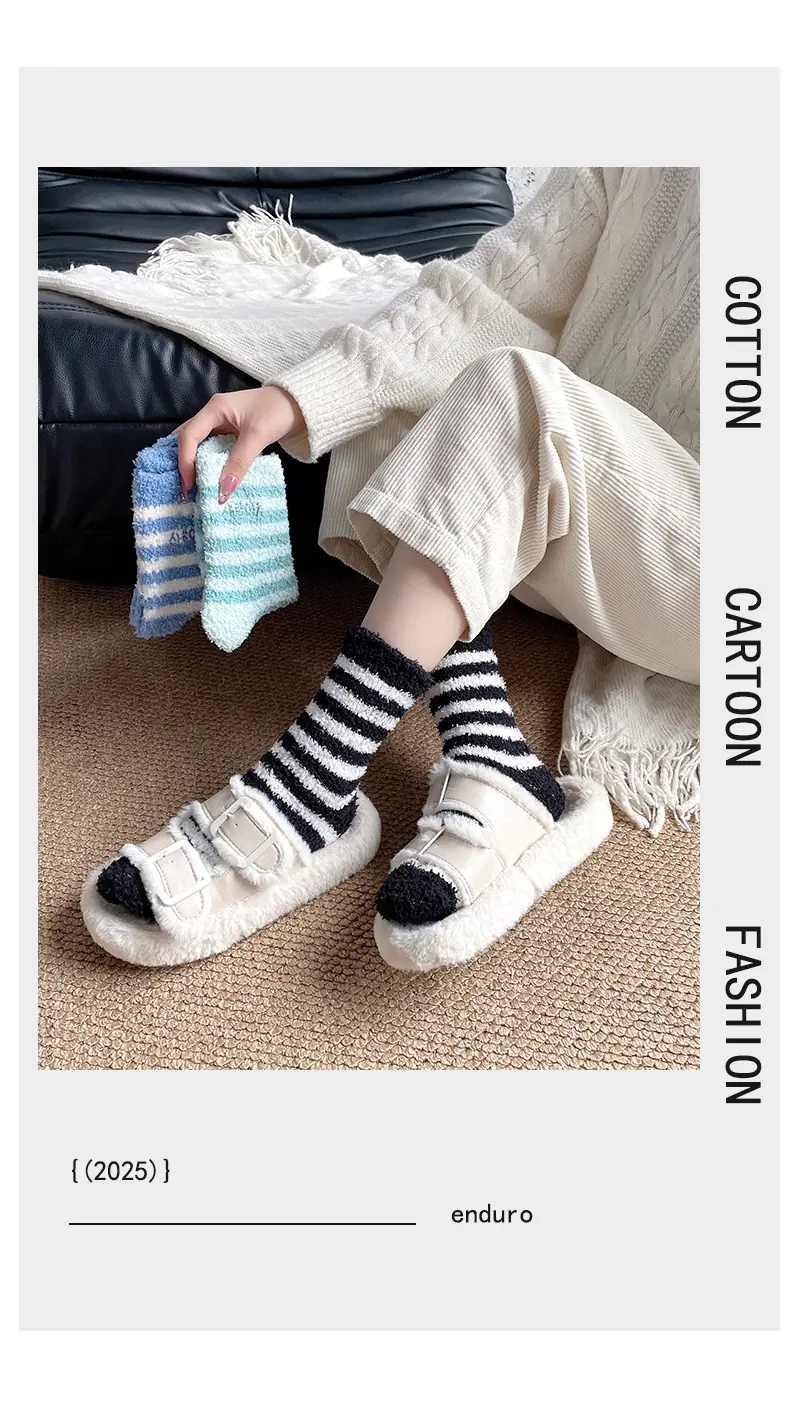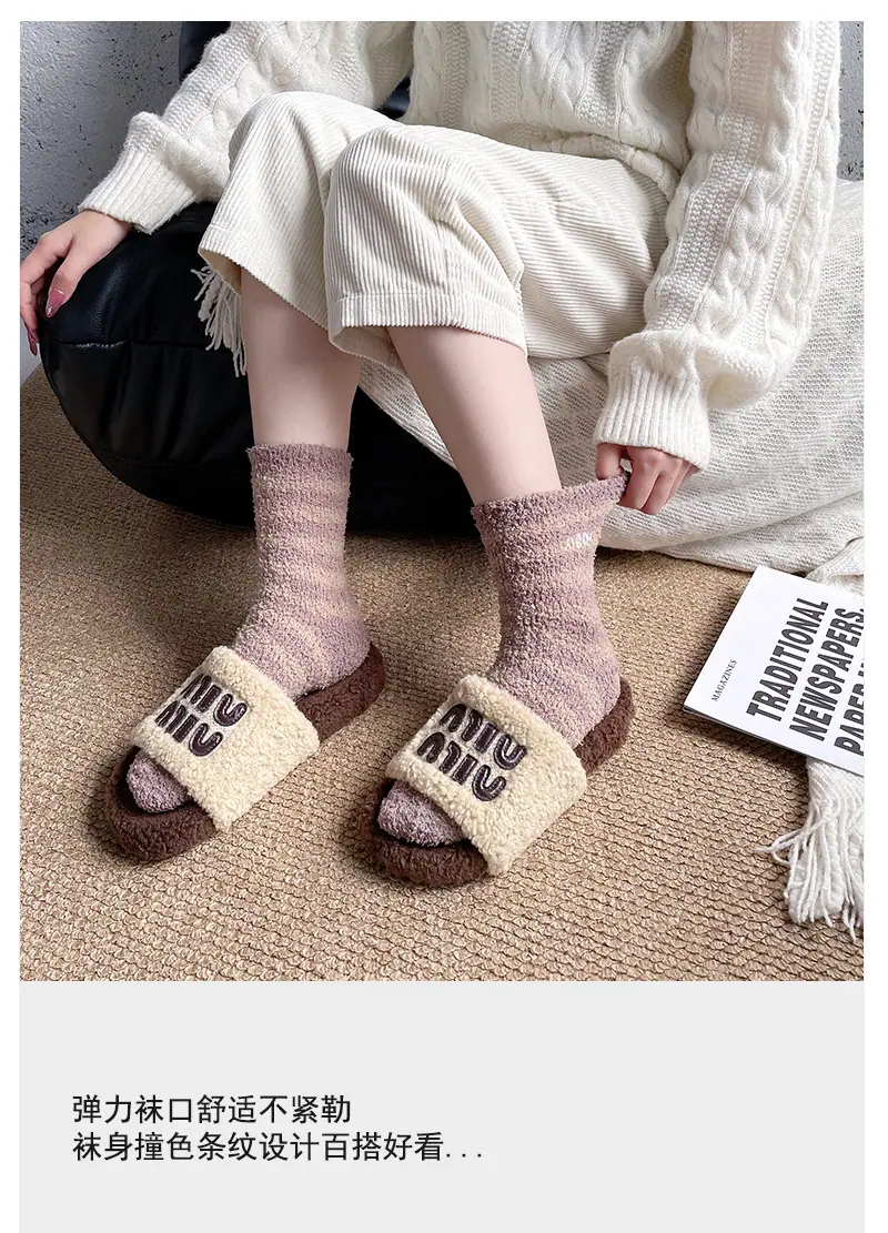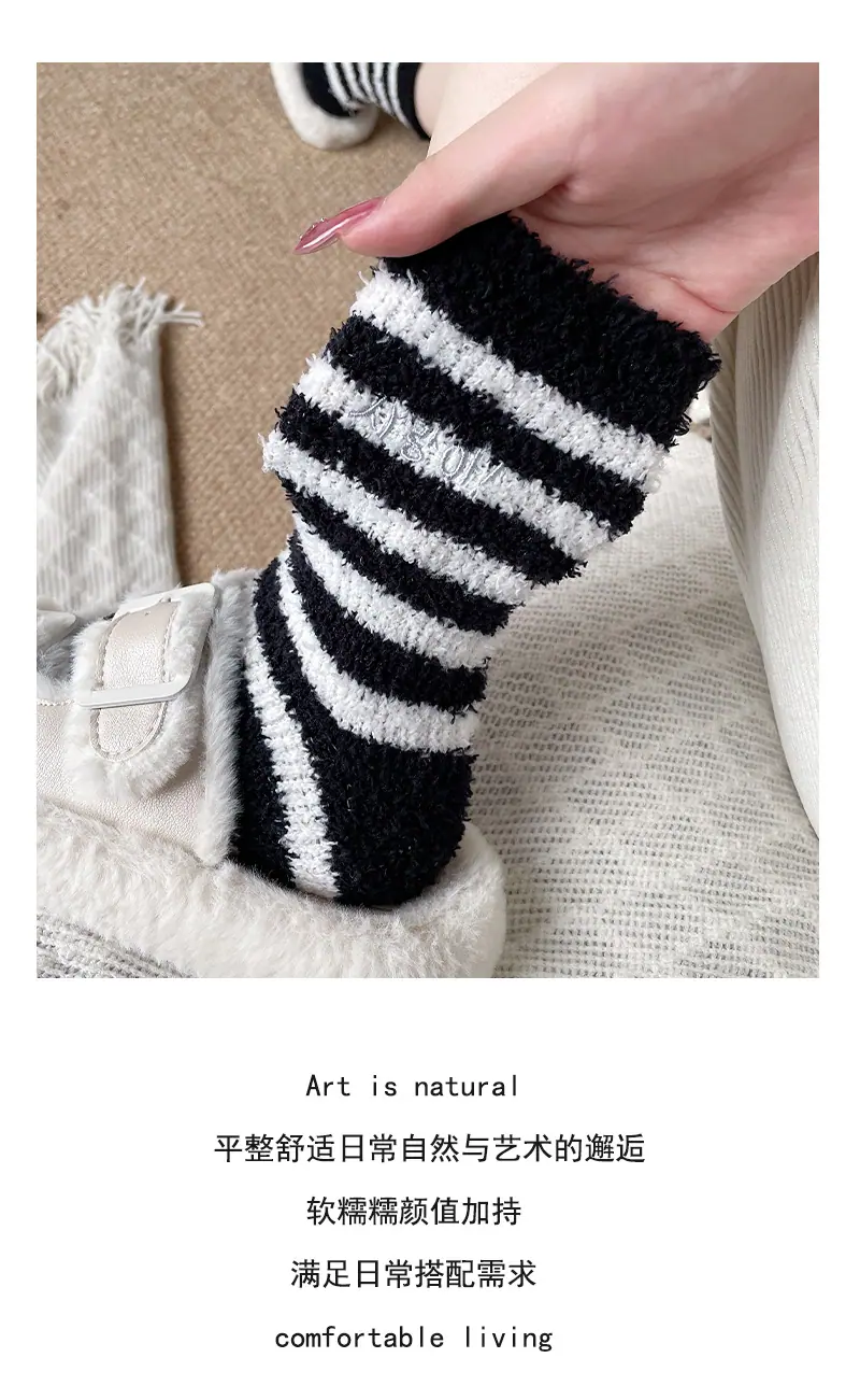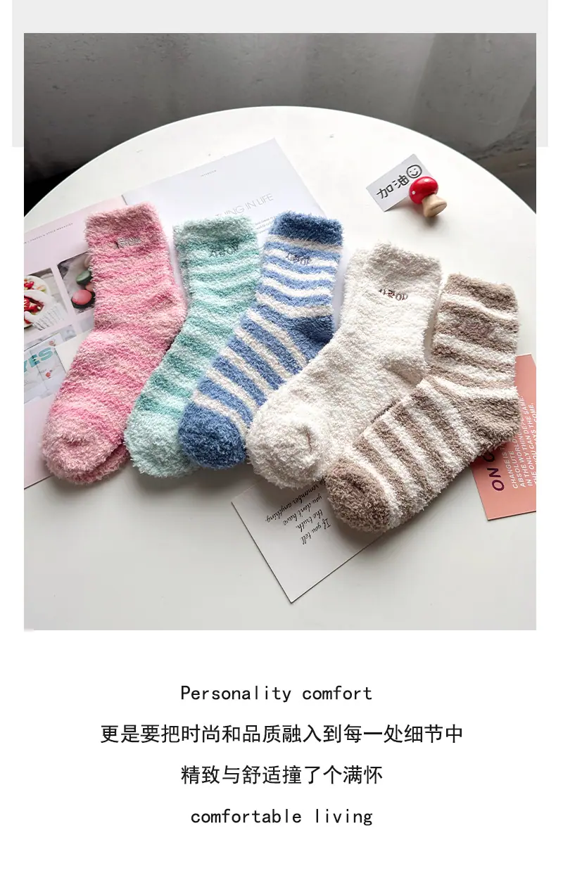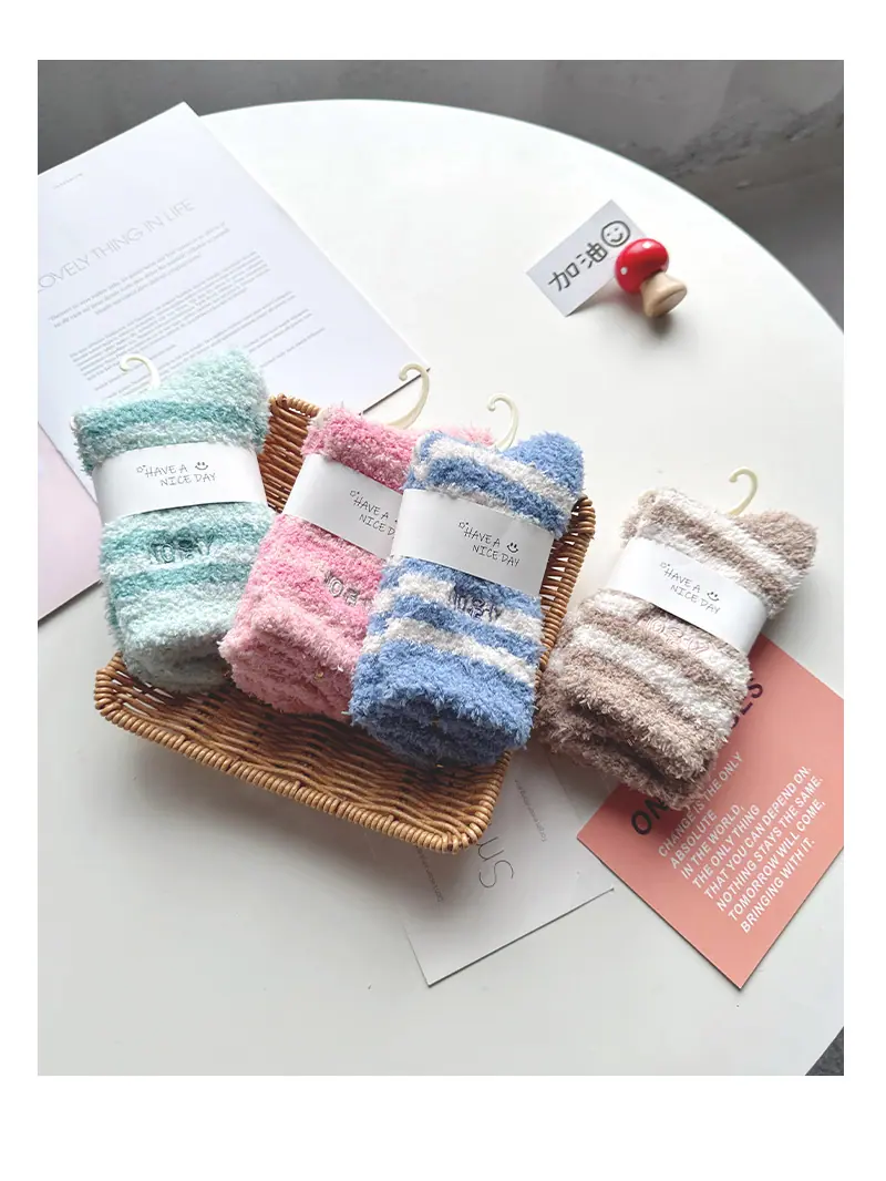 Compra Calcetines de Vellón Coral para Mujer, Calcetines Gruesos y Cálidos de Media Caña para Otoño e Invierno, Calcetines de Felpa para Dormir y para Piso de Invierno para Mujer con Rayas Estilo Coreano al por mayor en Joom.pro