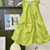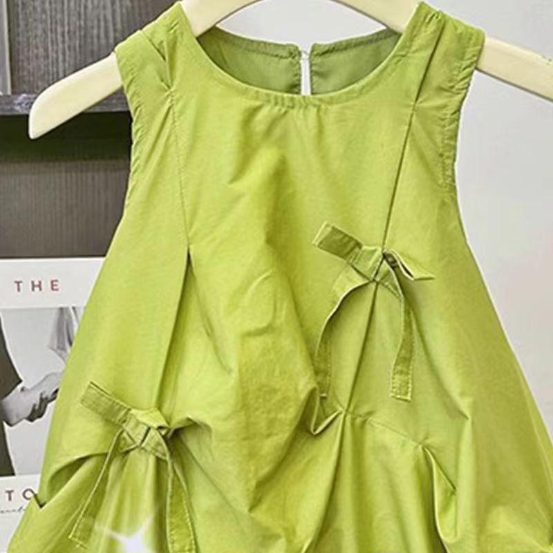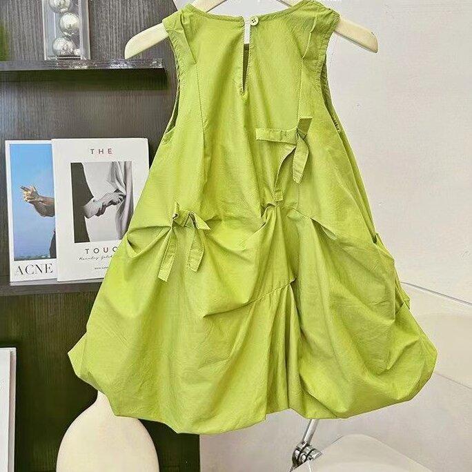 Falda de Verano para Niñas 2025 Nuevo Estilo Moda Infantil Sin Mangas Lazo Falda de Princesa Ropa Infantil Sección Delgada