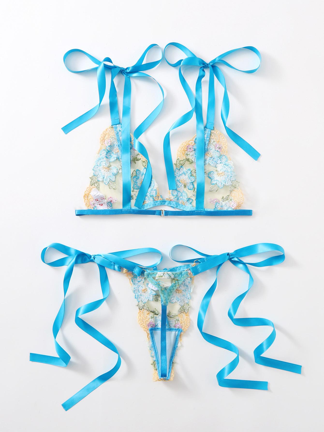 Bikini con estampado de moda europea y americana de Amazon, lazo azul, ropa interior sexy de AliExpress, 2021