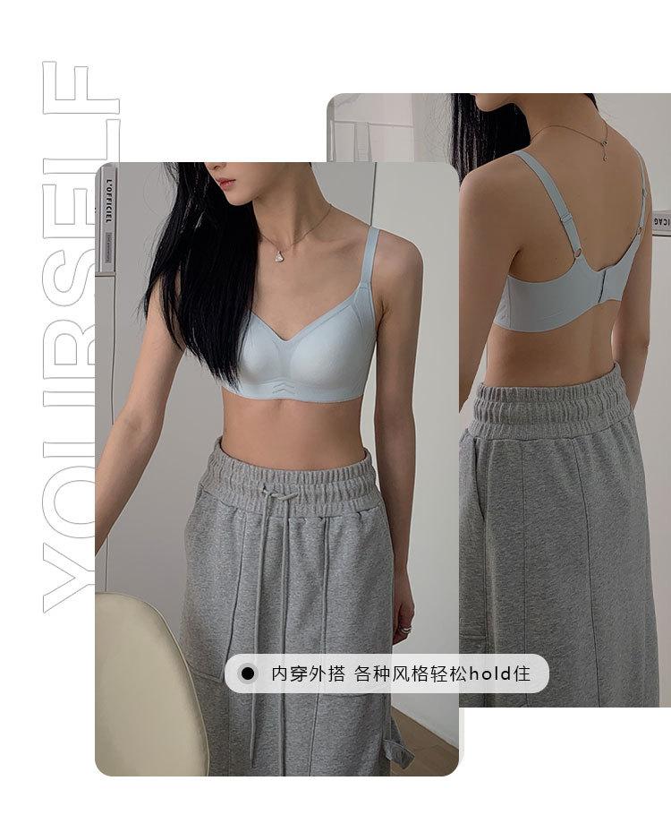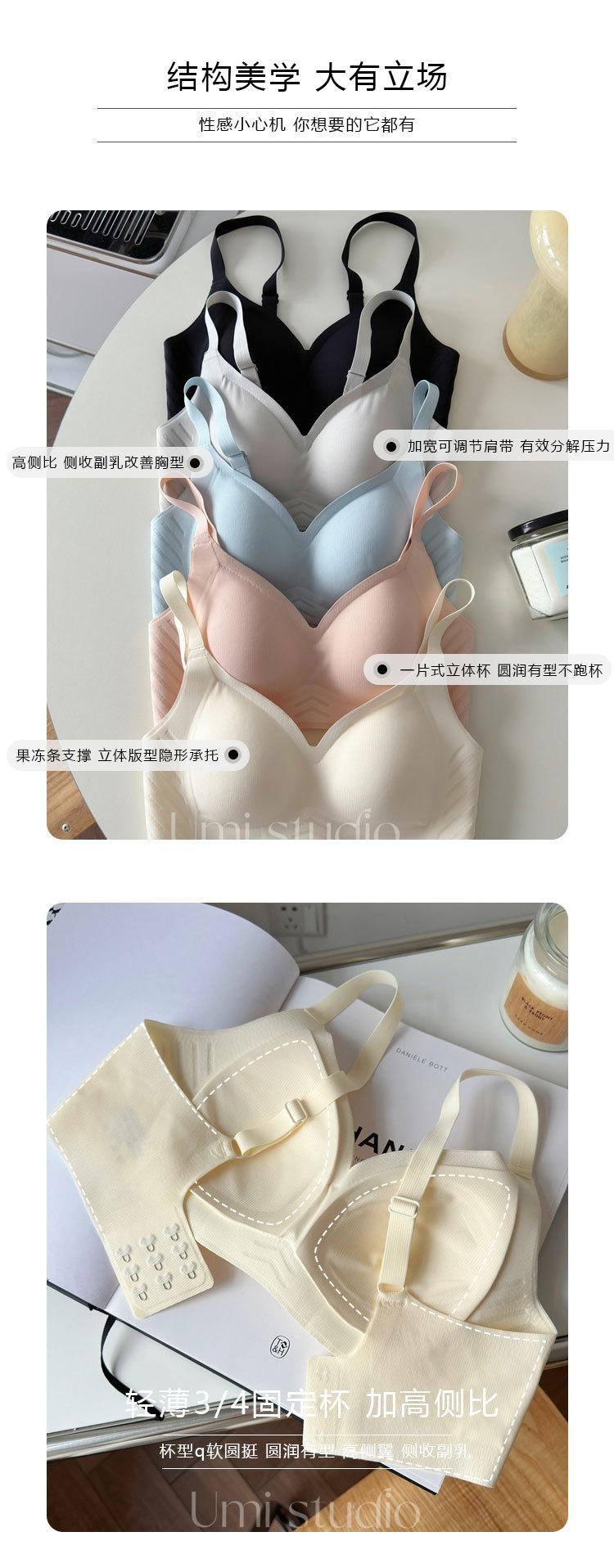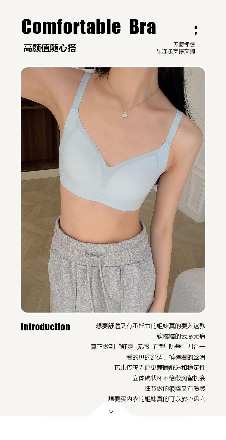 Ropa interior delgada para mujer, Verano Sin costuras Busto grande Sujetador inalámbrico de copa completa, Recolección lateral de senos, Anticaída, Sujetador cómodo
